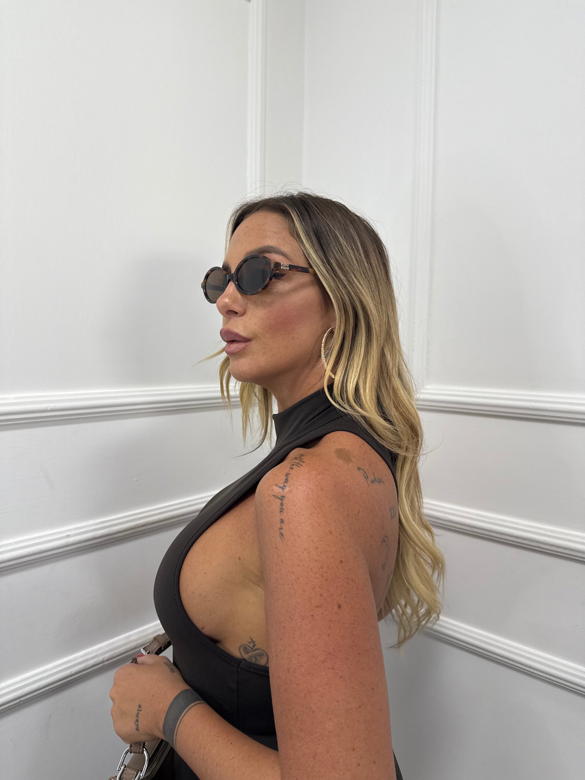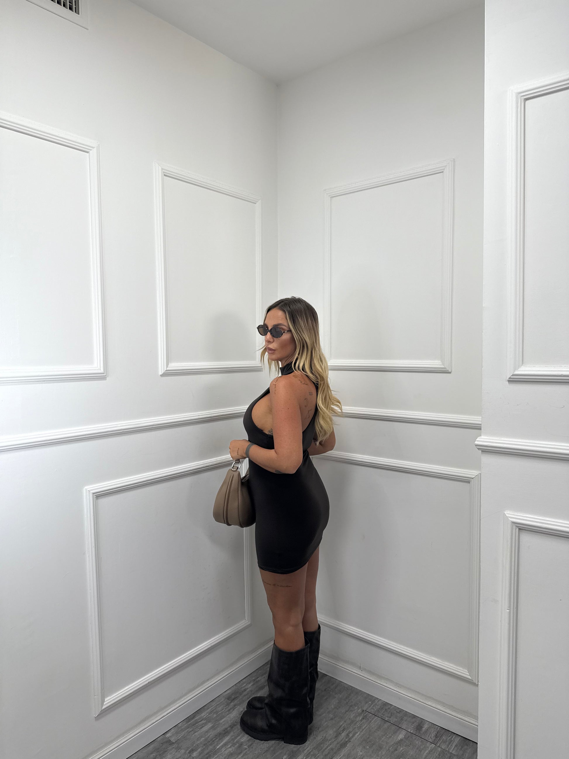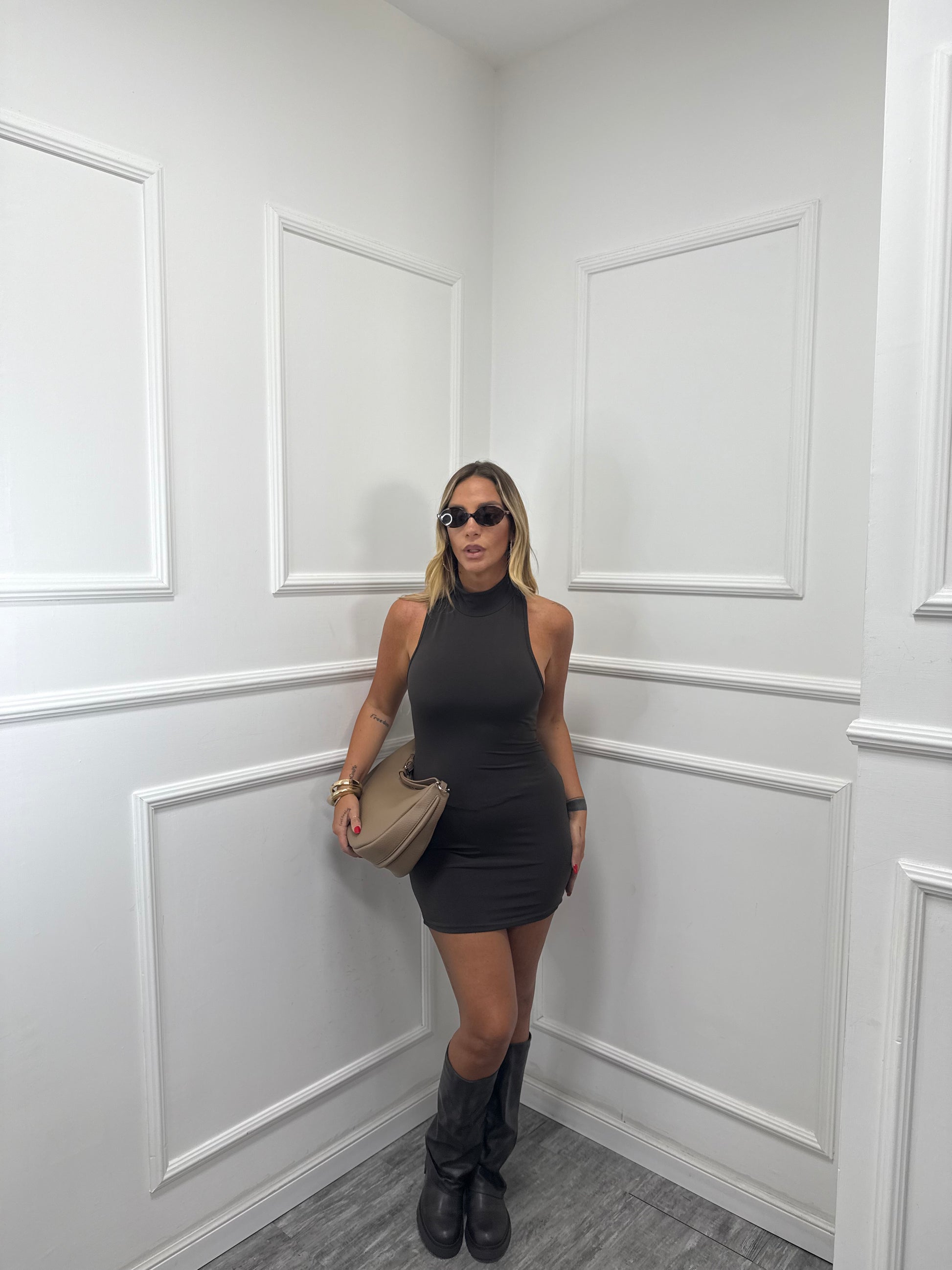 Abito in lycra collo alto scollo americano cioccolato