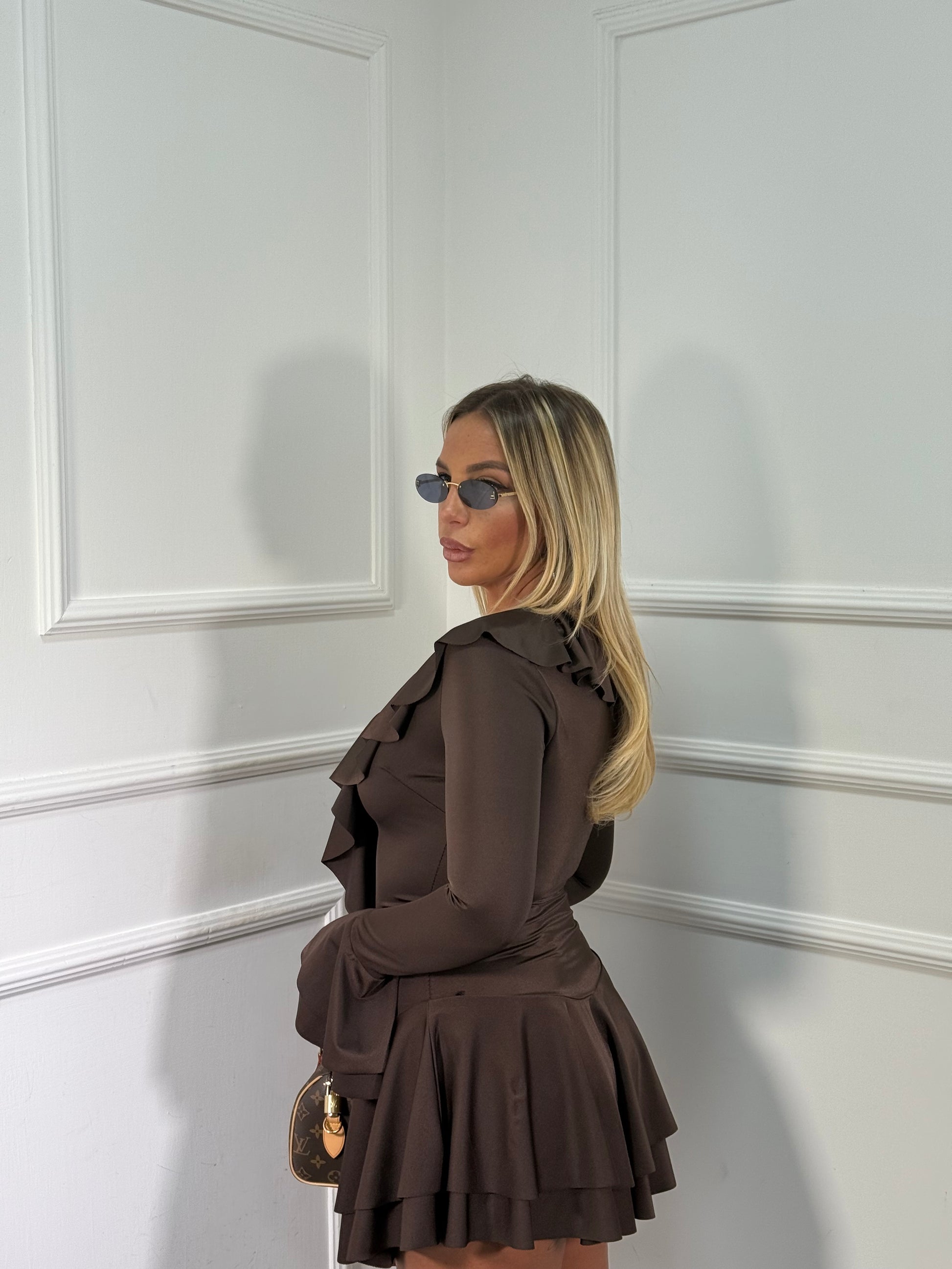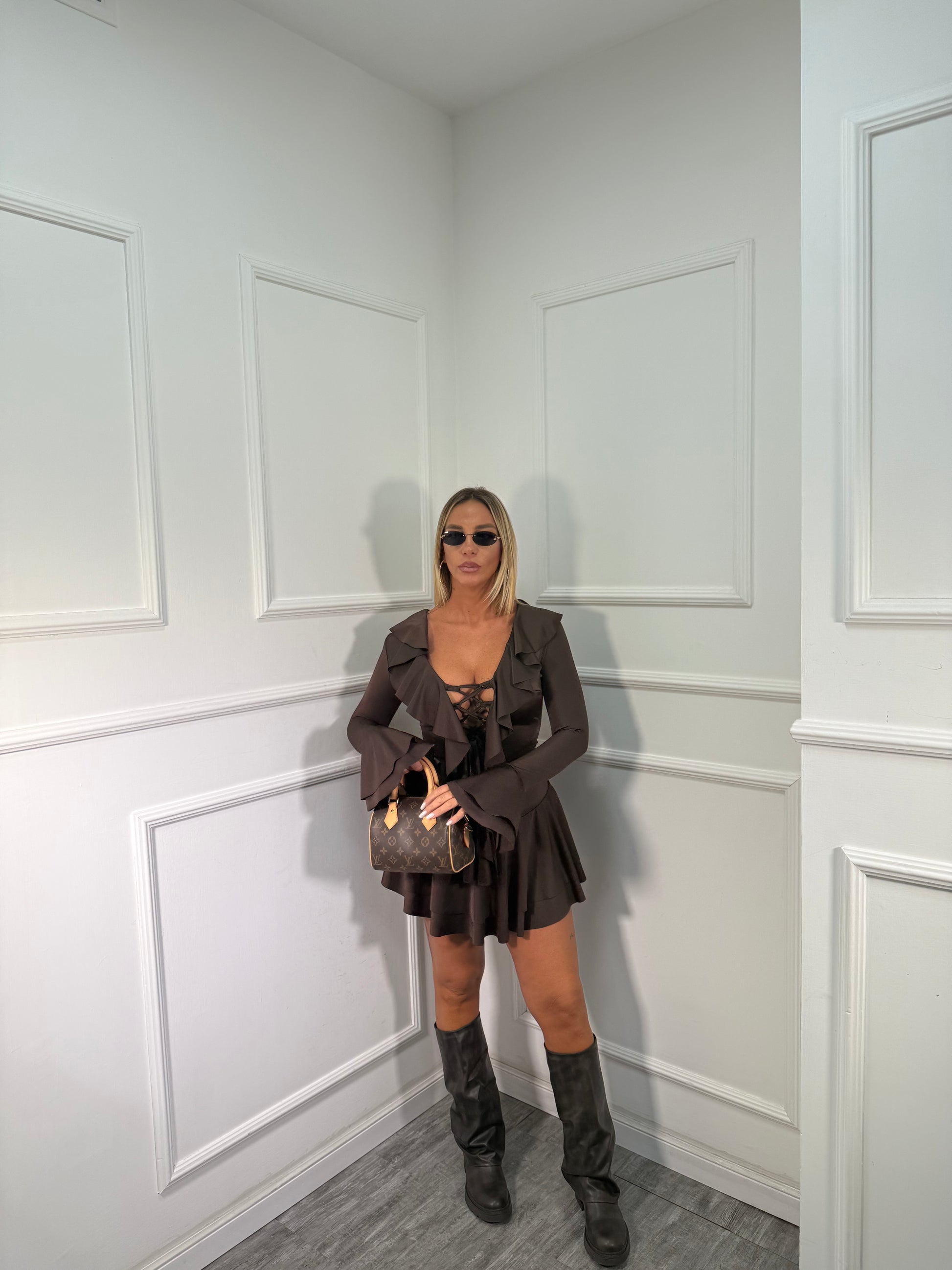 Abito in lycra stringato con rouges cioccolato 27016