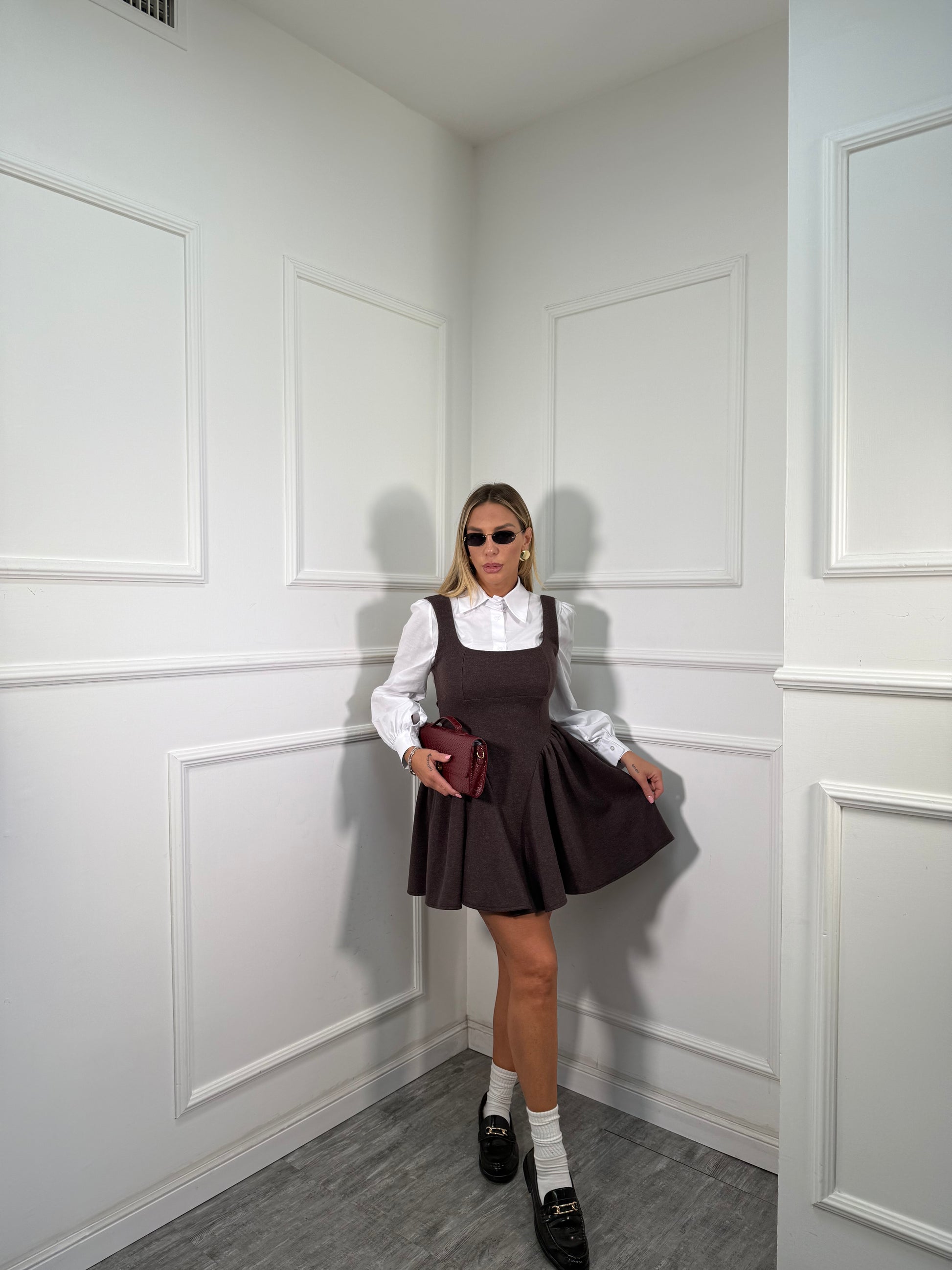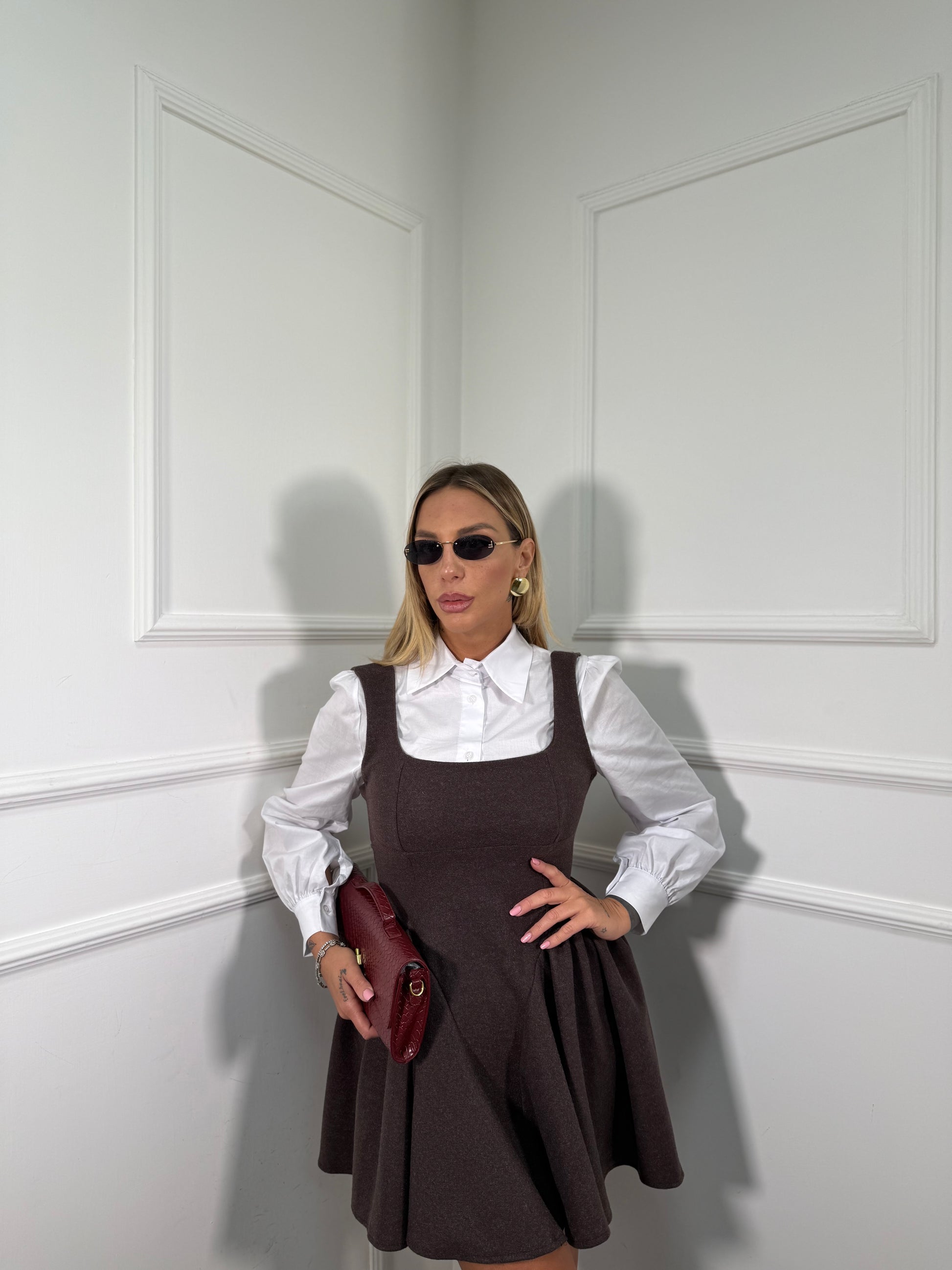 Abito in panno con camicia Flake cioccolato 6797