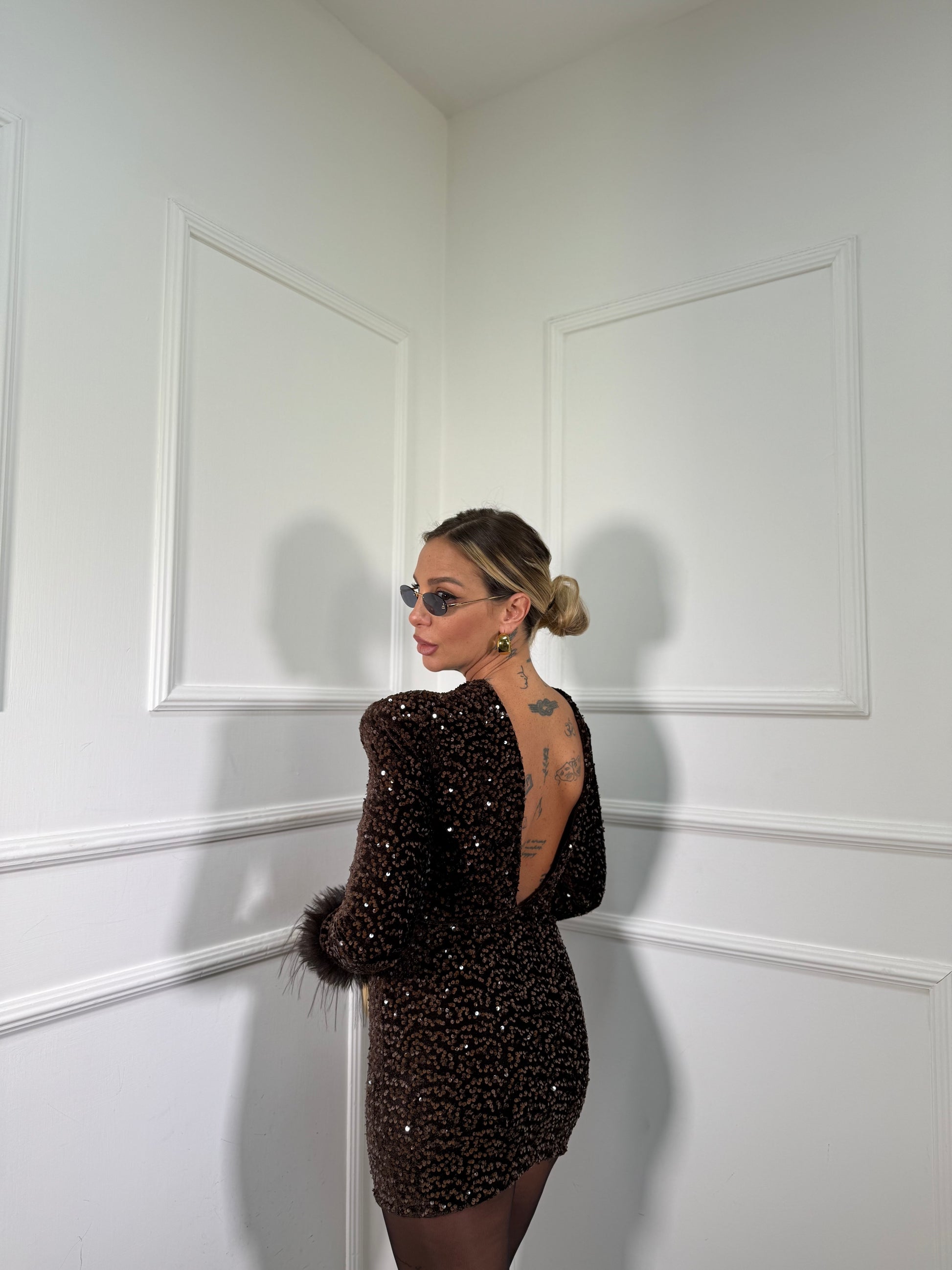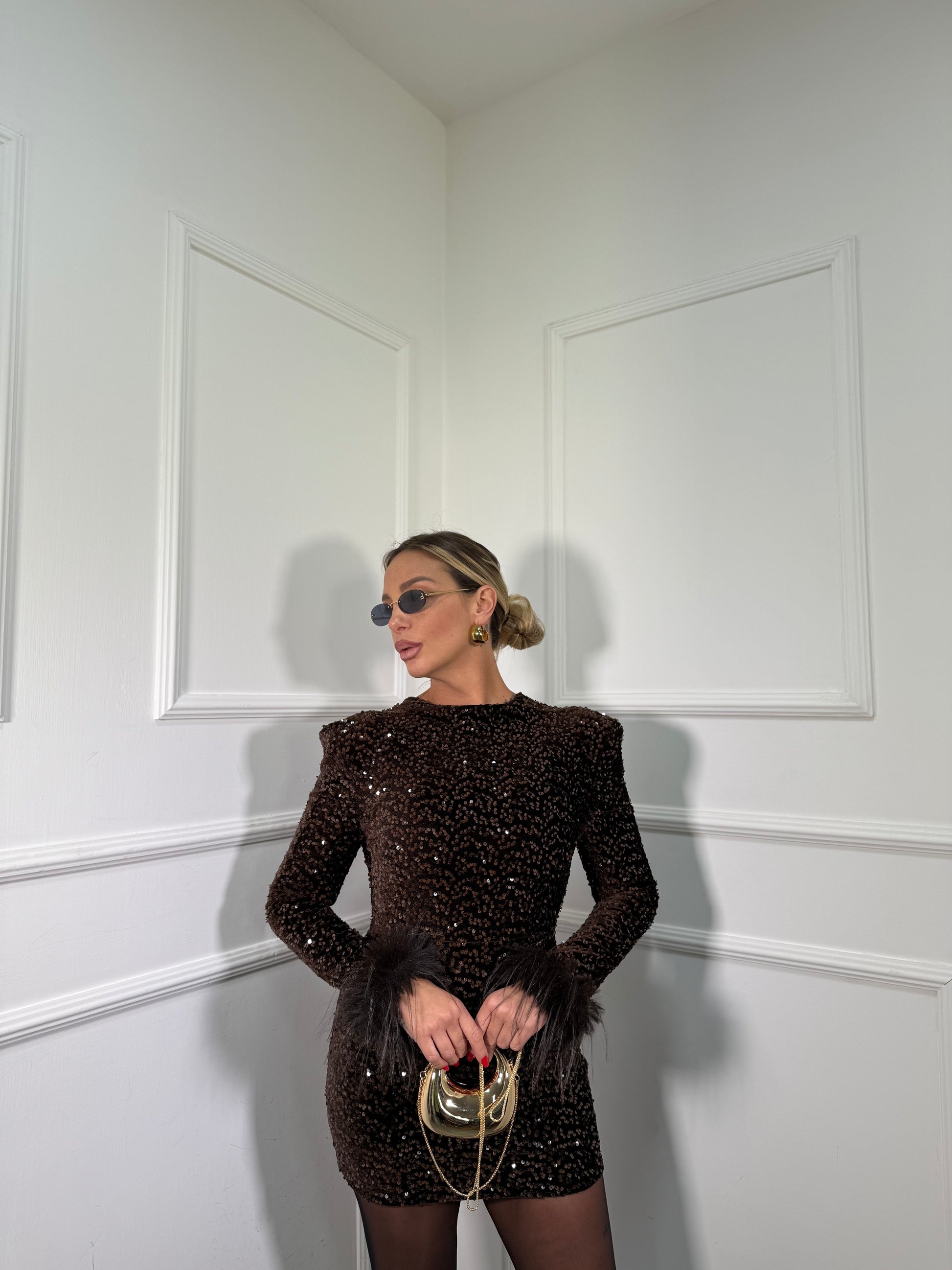 Abito in velluto e micro paillettes Shirley cioccolato 27383