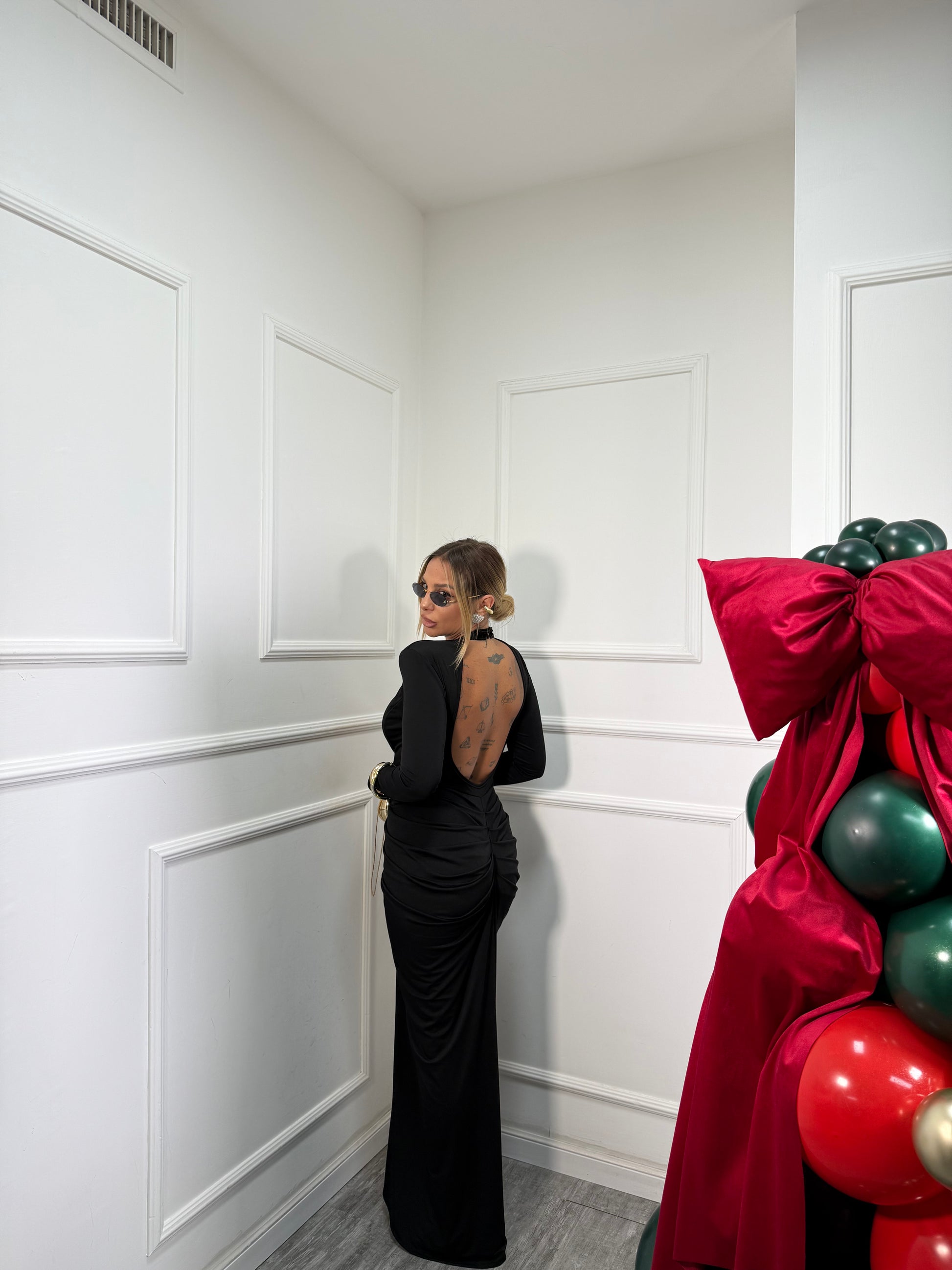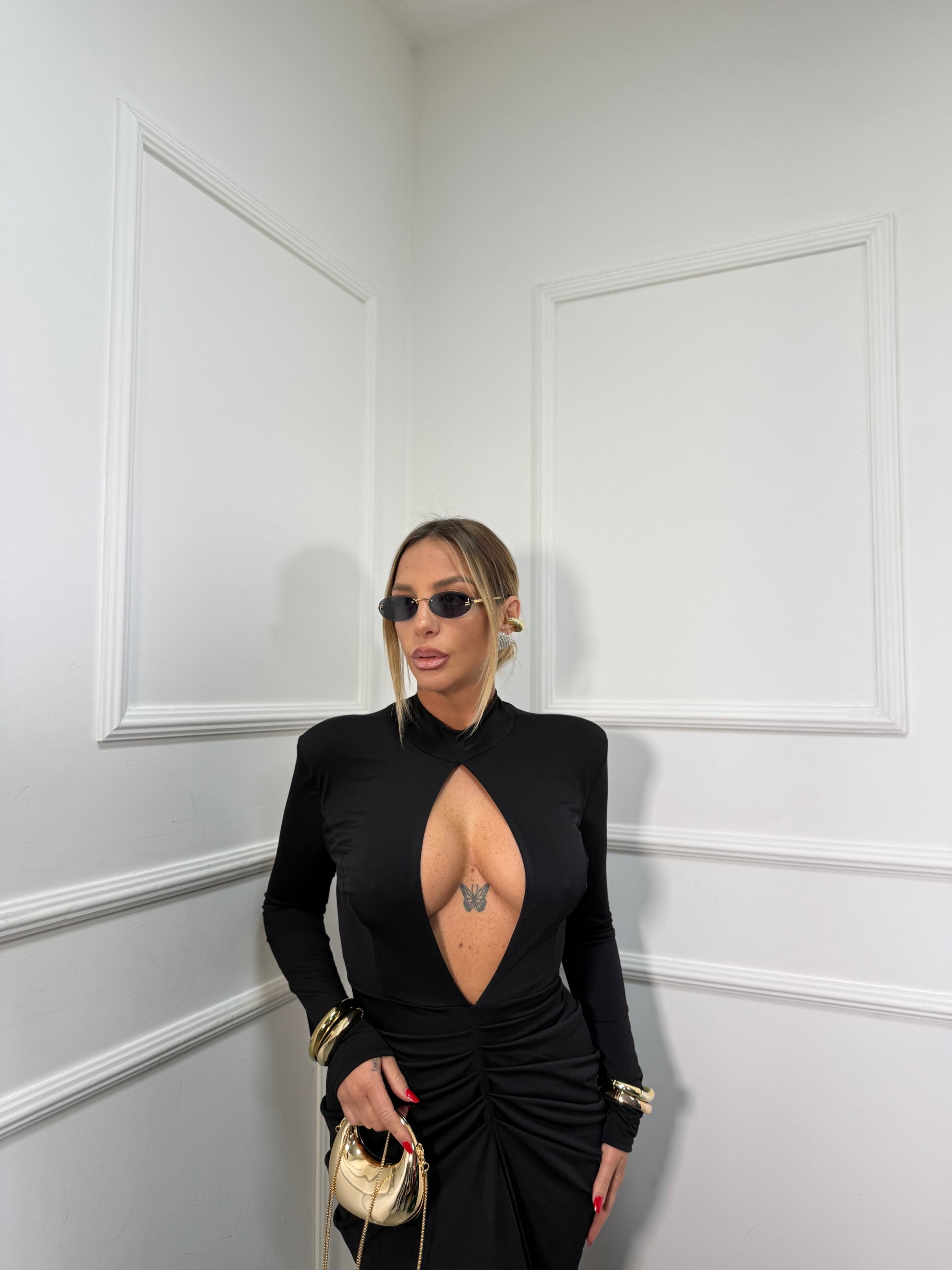 Abito lungo con spacco e scollo a goccia Paradise nero 27640