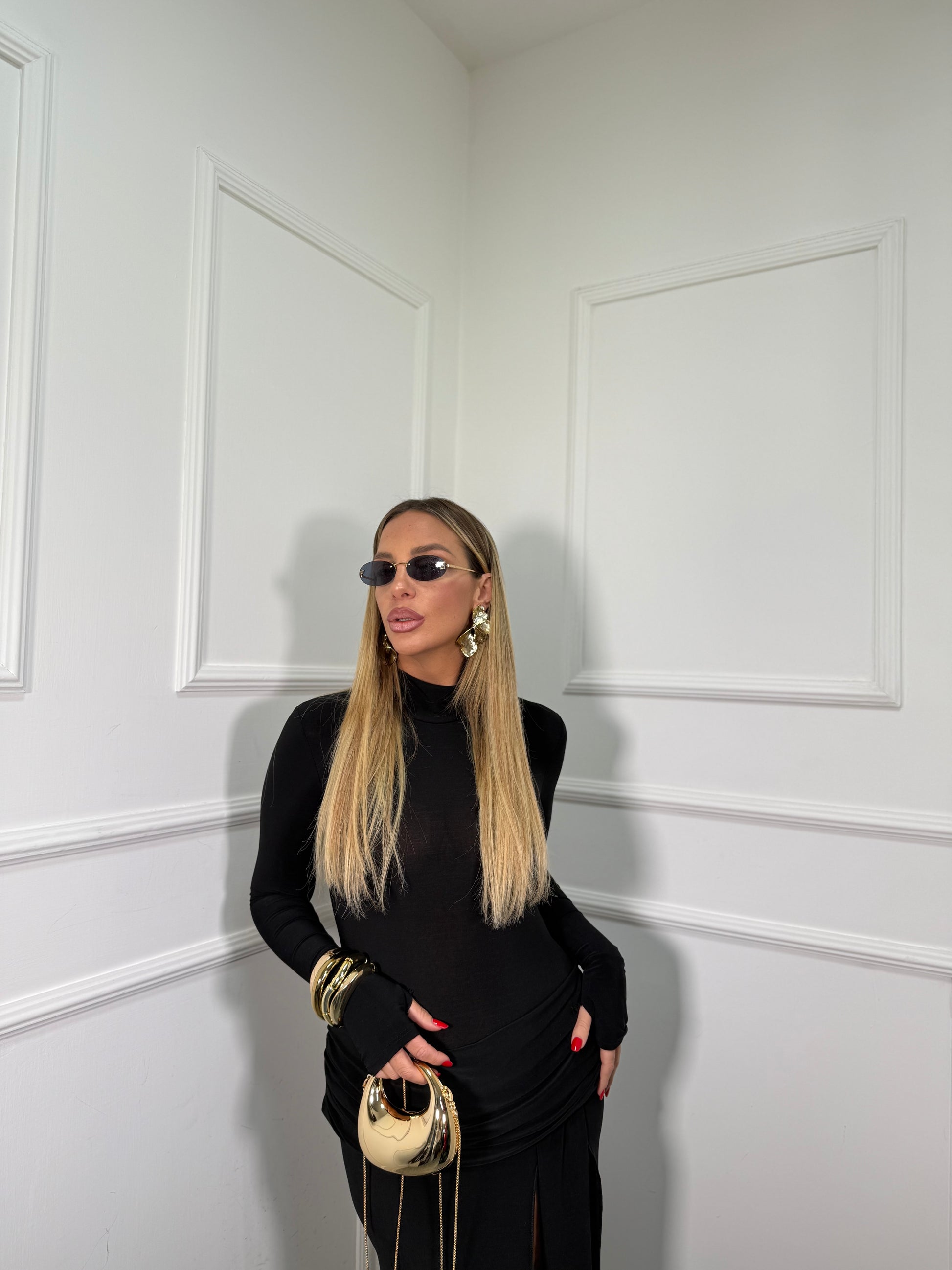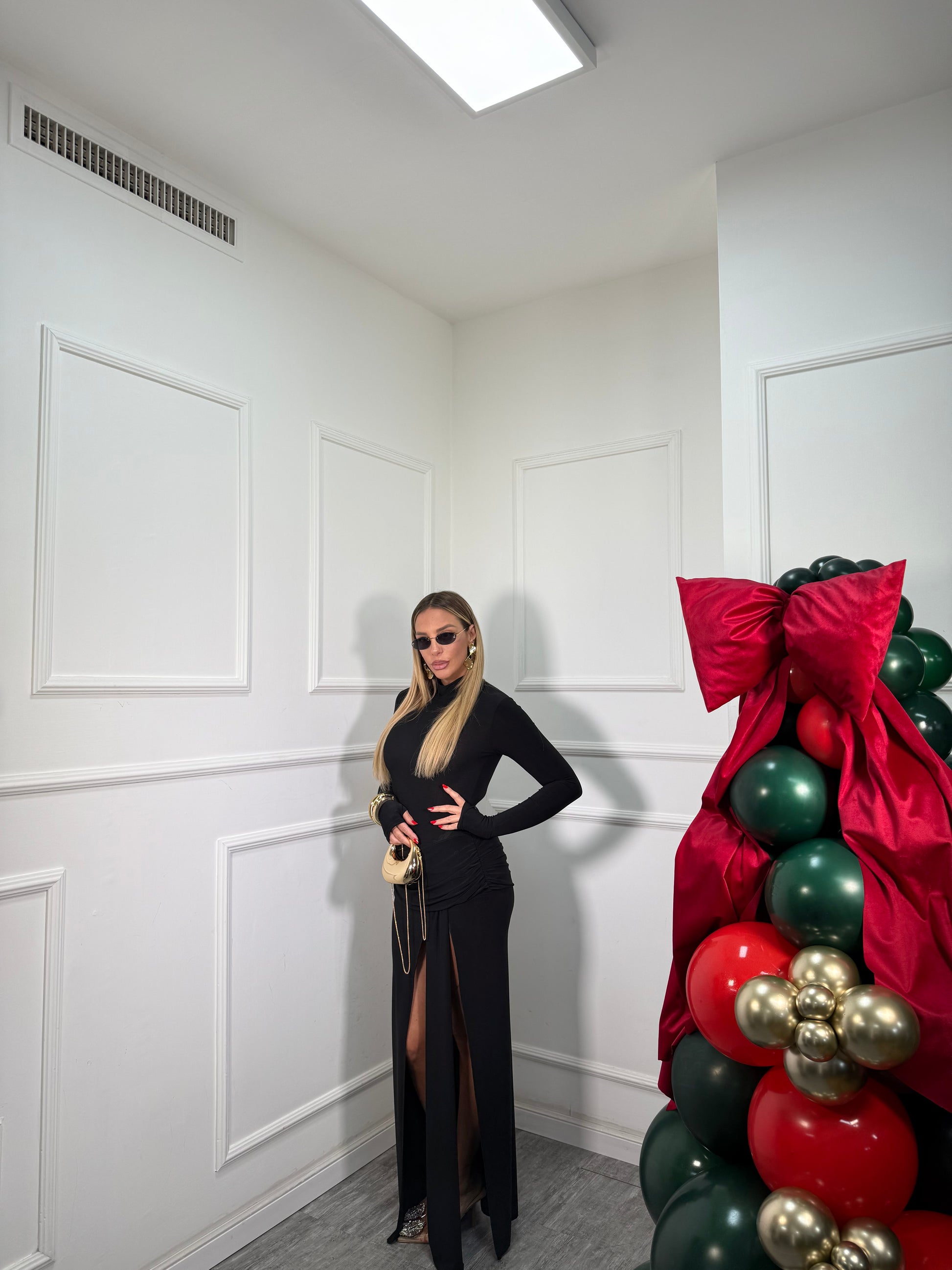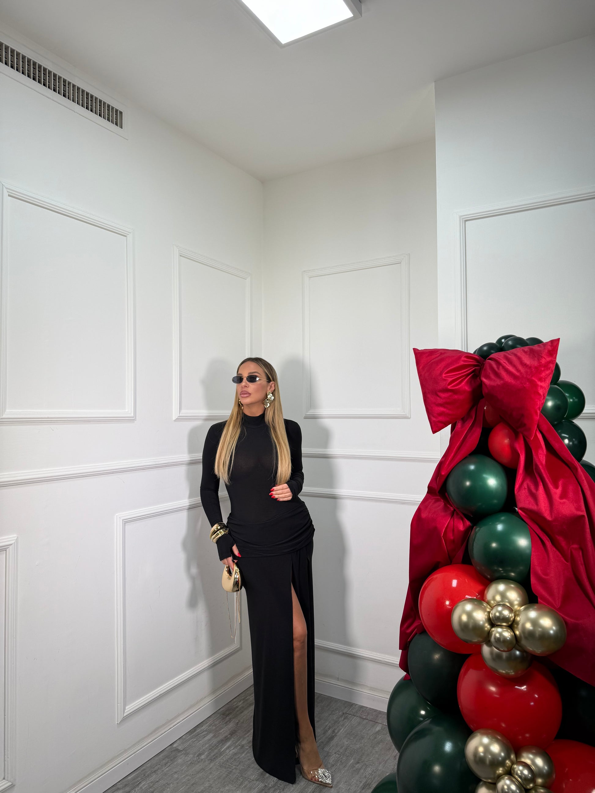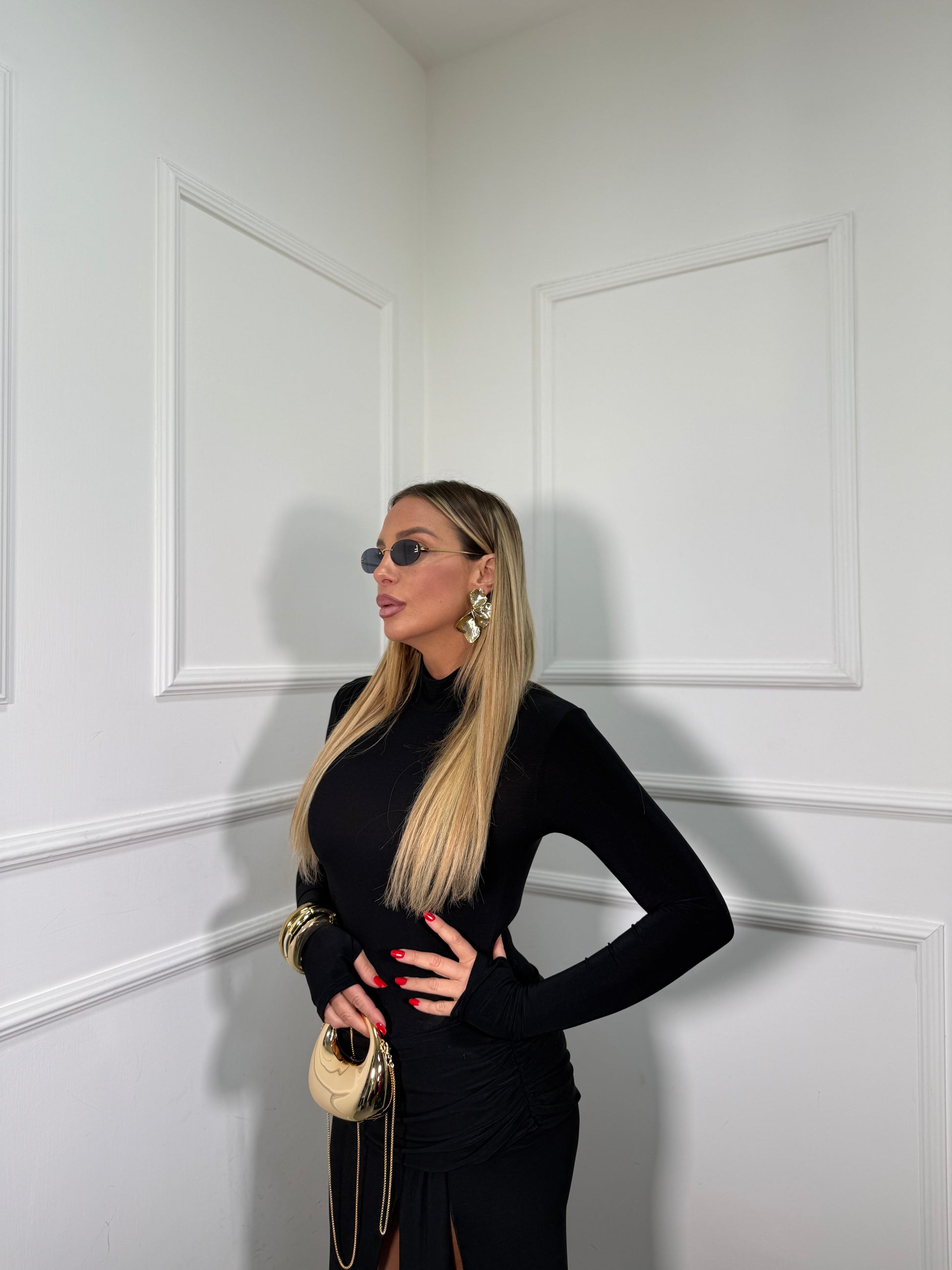 Abito midi con spacco e fusciacca Ipnose nero 1830