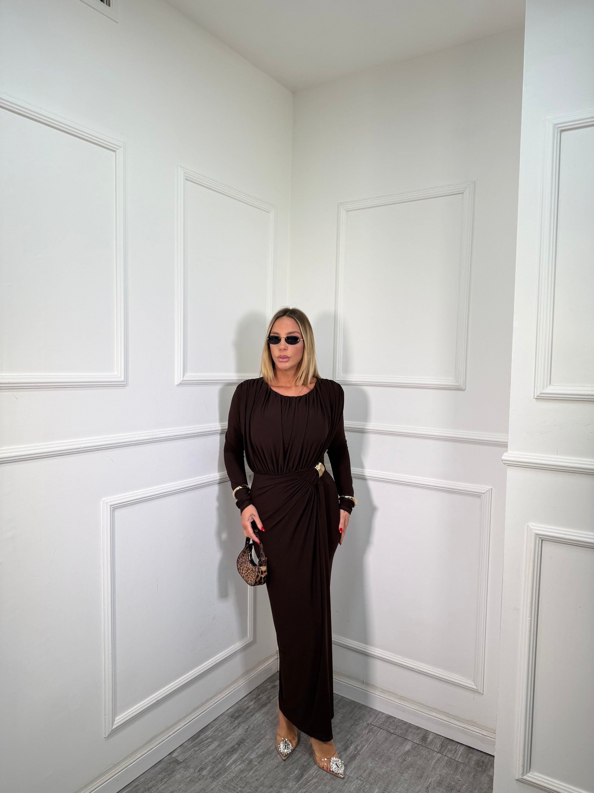 Abito midi drappeggiato con nodo Megan cioccolato 4300