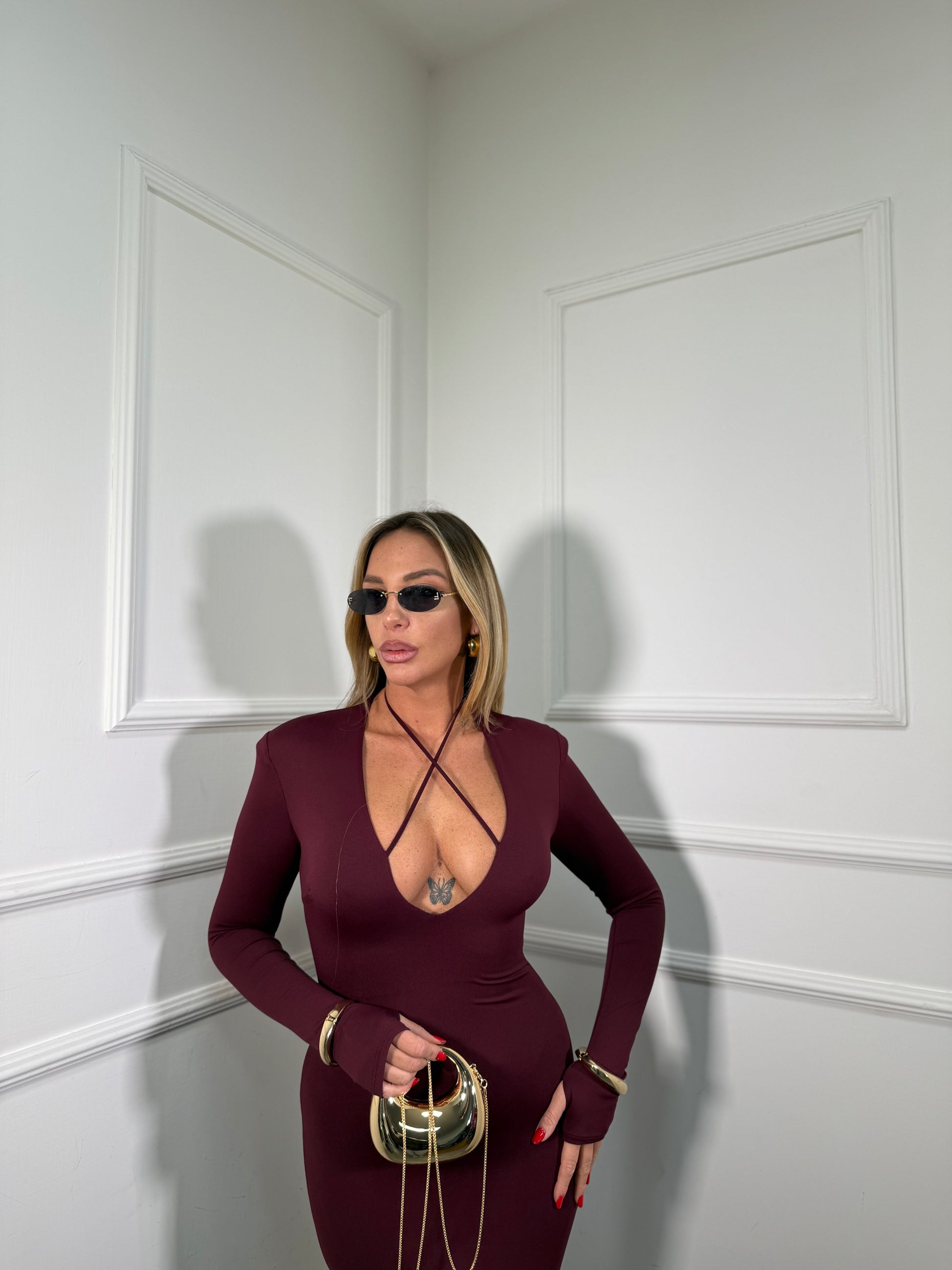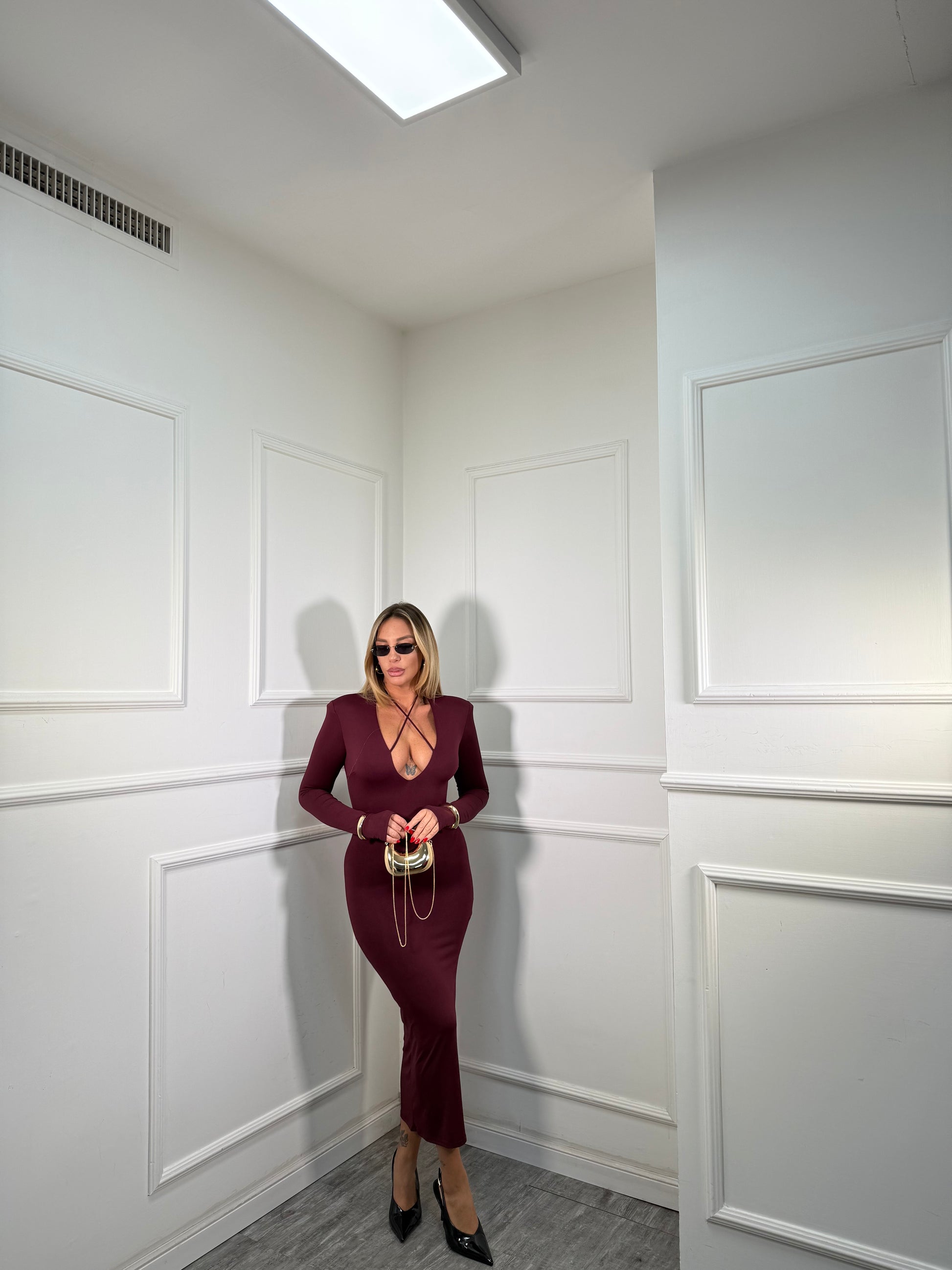 Abito midi in lycra con spalline Abraxas bordeaux 14483