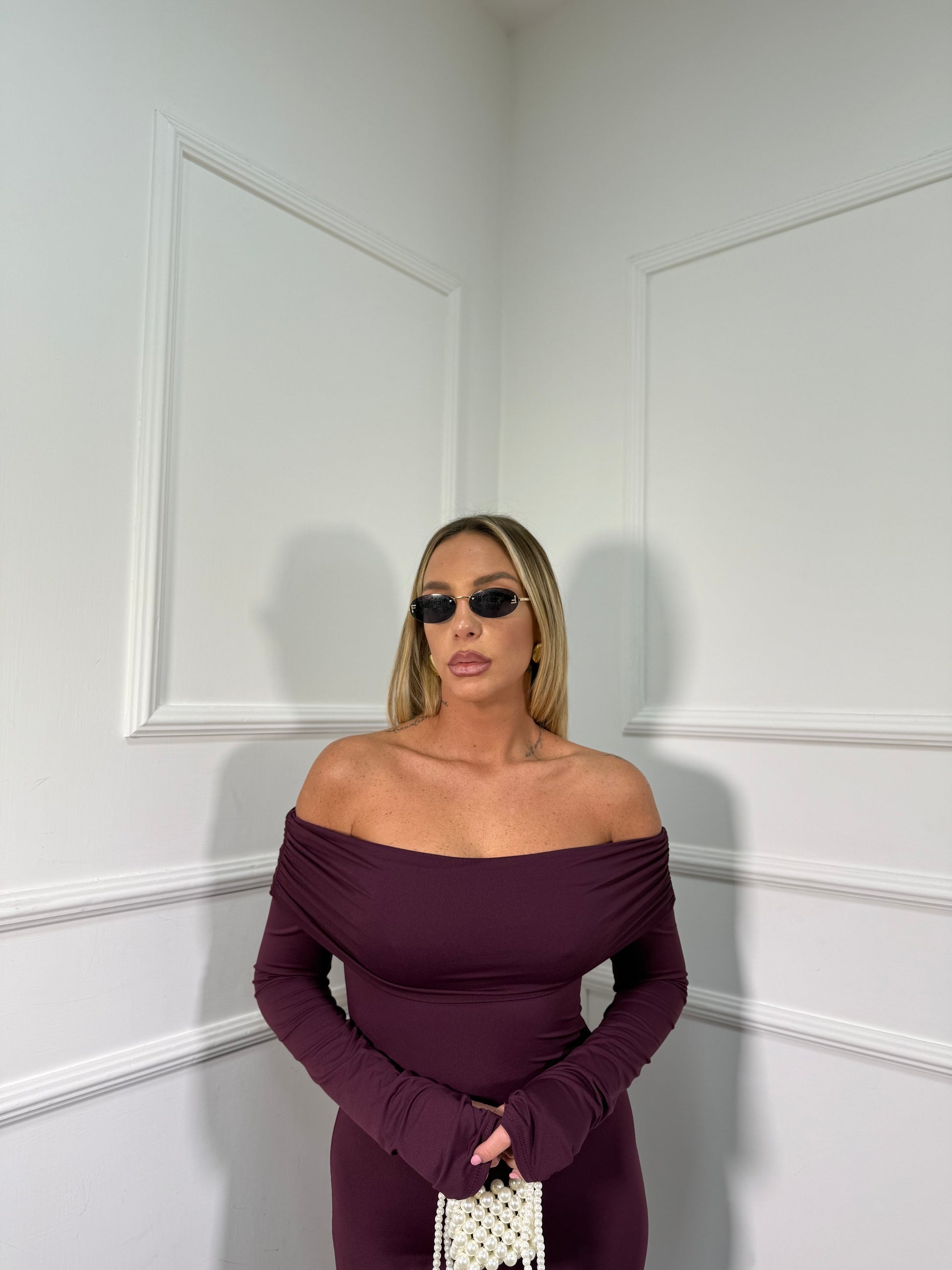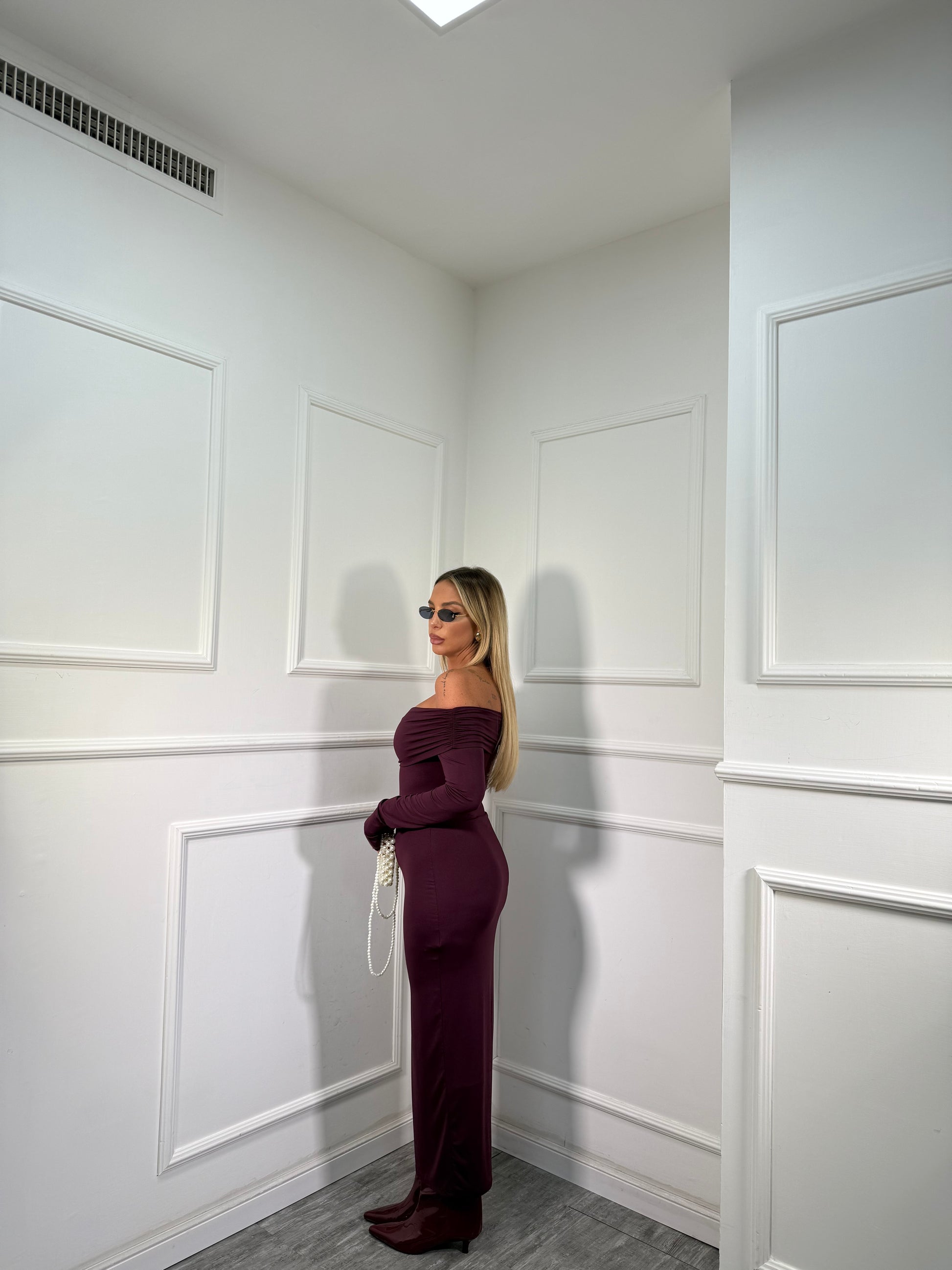Abito midi in lycra scollo a barca Nilufar borgogna 13351