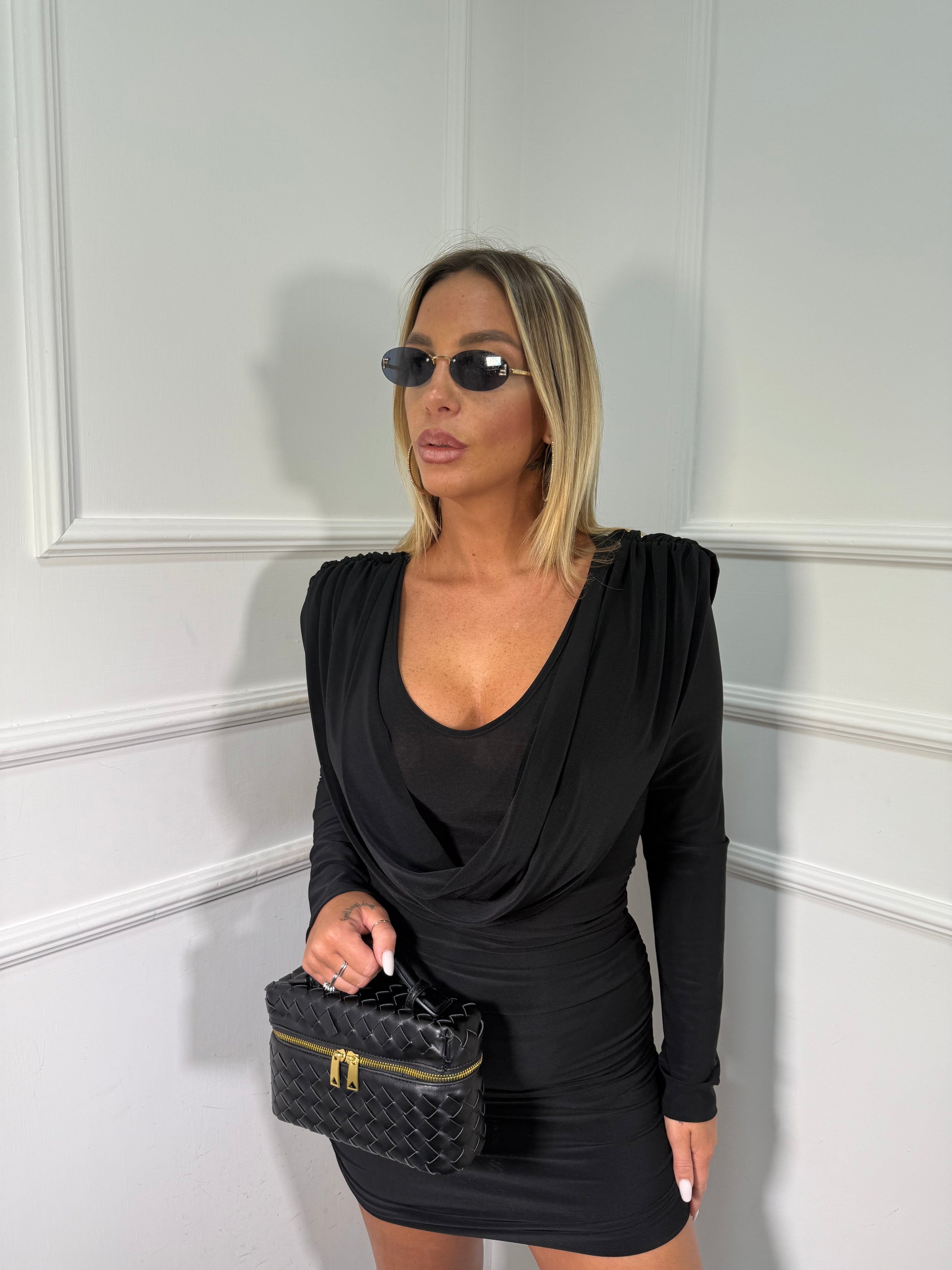 Abito scollo bicchiere con spalline in lycra Marielle nero 7625