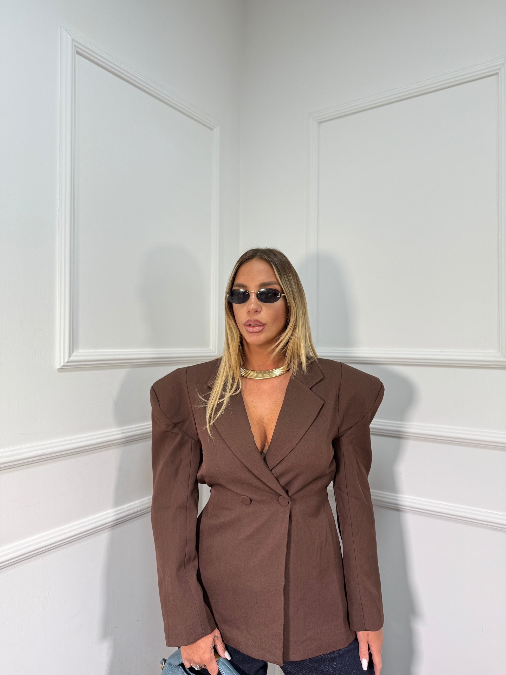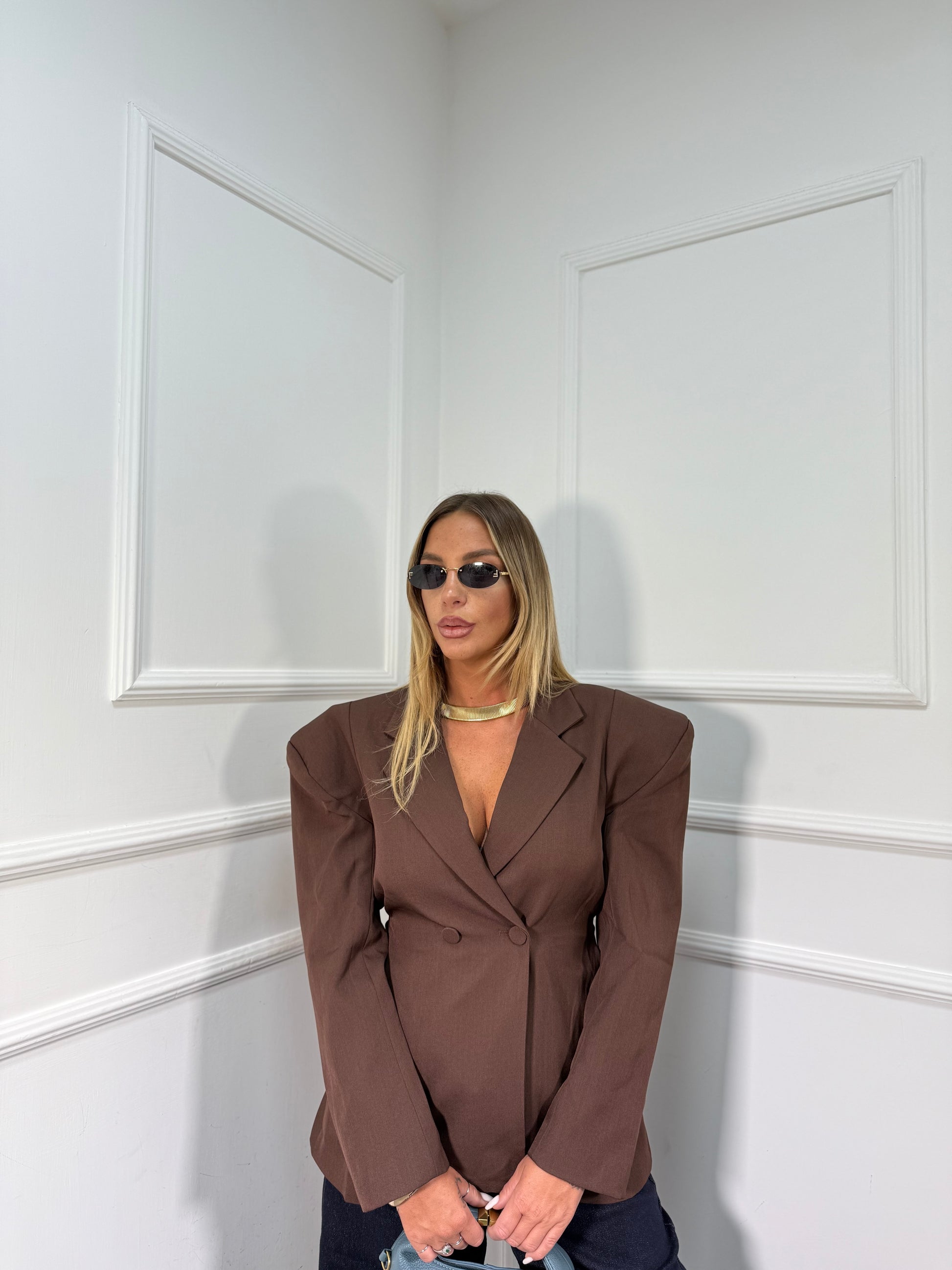 Blazer avvitato con spalline Jenner cioccolato v10595 premium quality