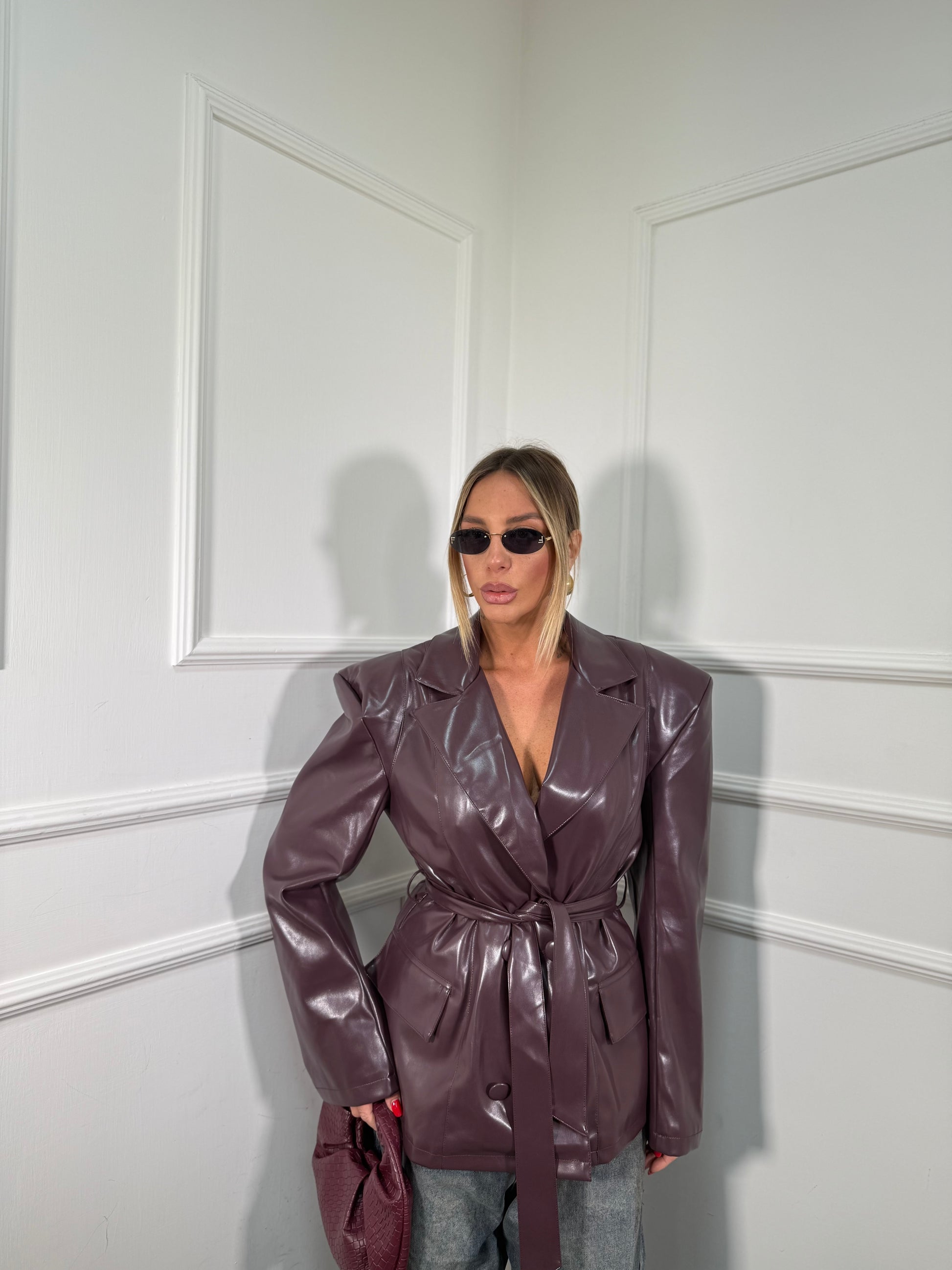 Blazer ecopelle con spalline e fusciacca Penny vinaccia 6690