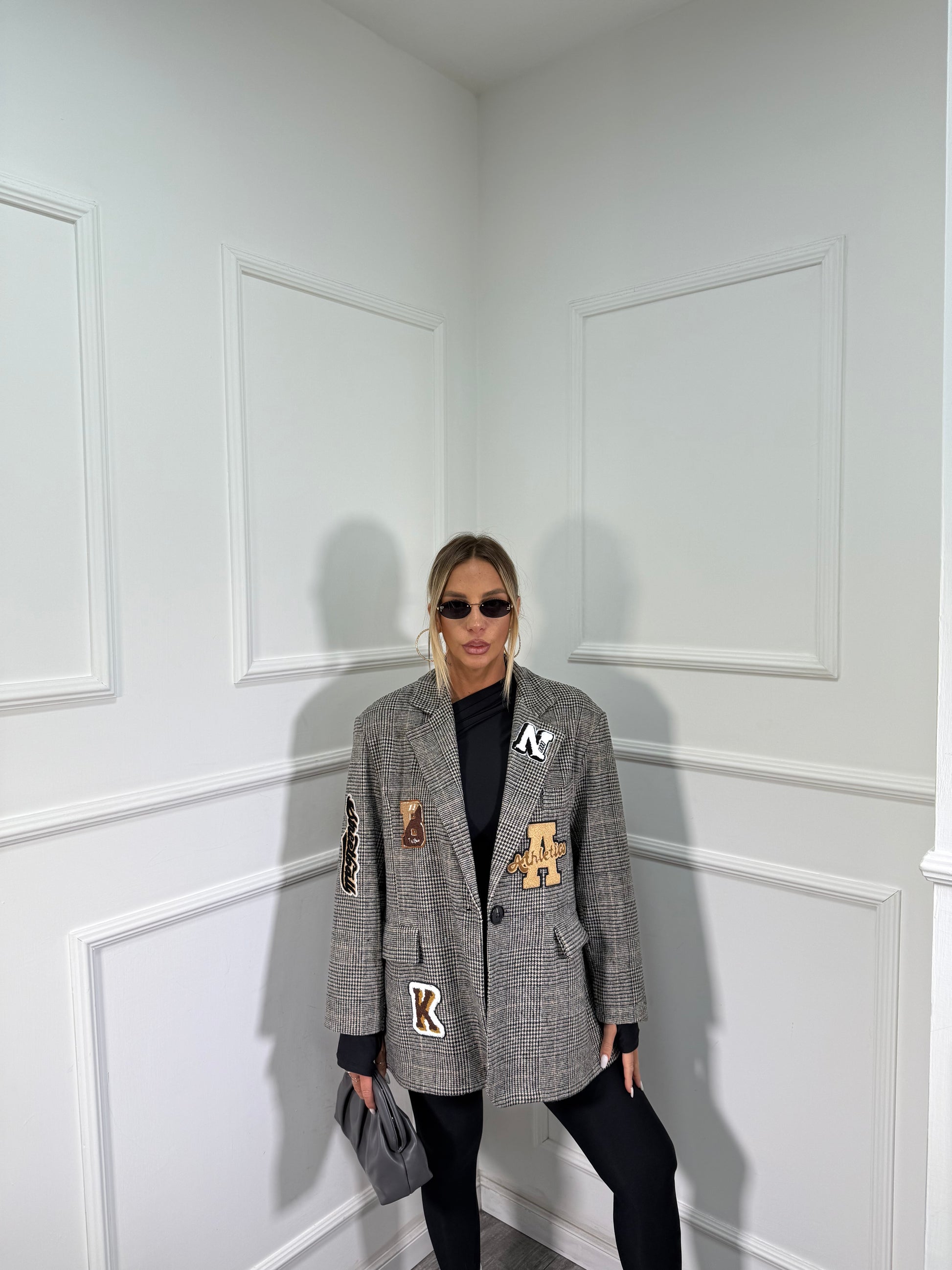 Blazer lana cotta in tweed Patchwork nero 1506087