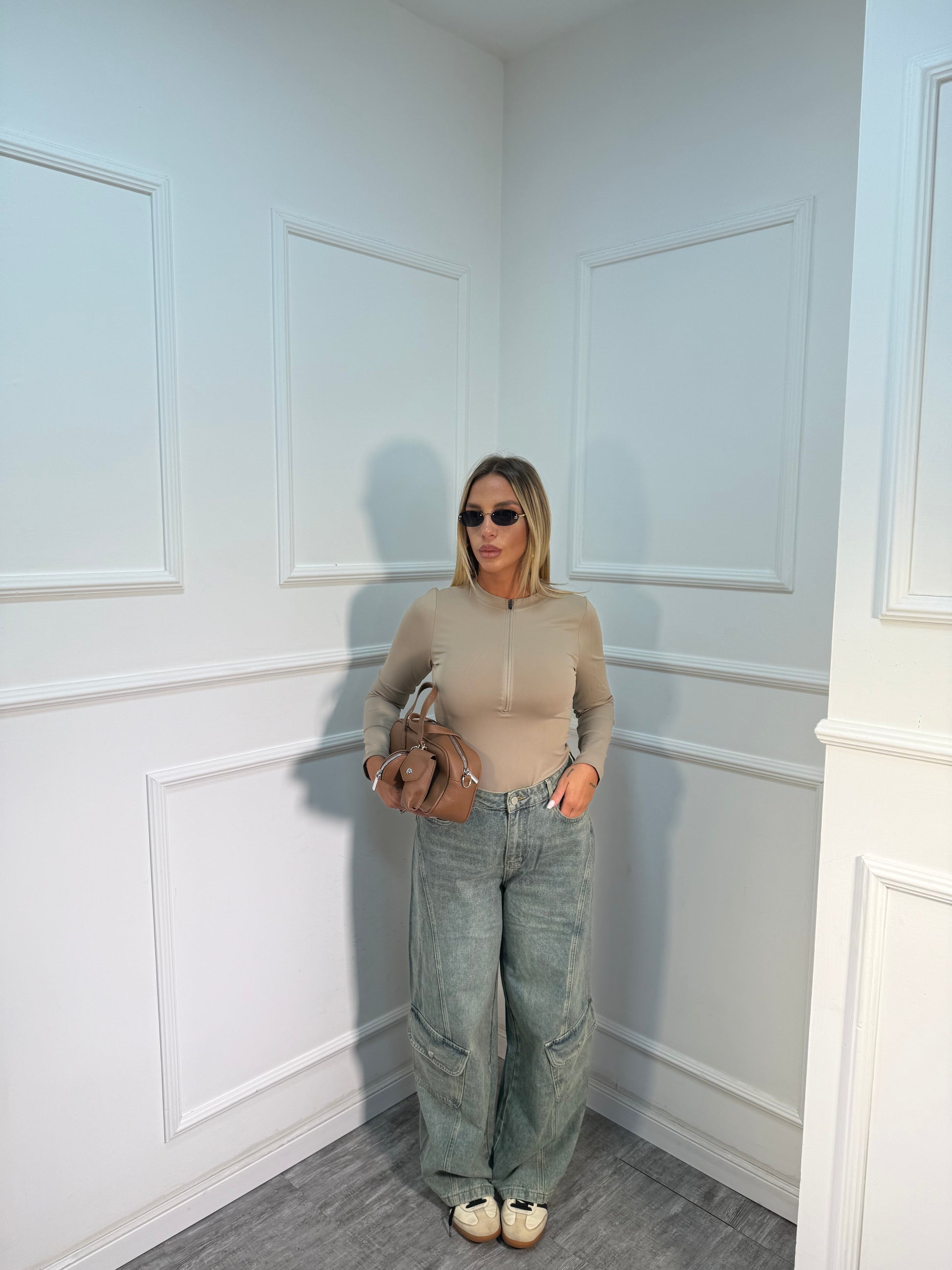 Body con zip modellante taupe bzm022
