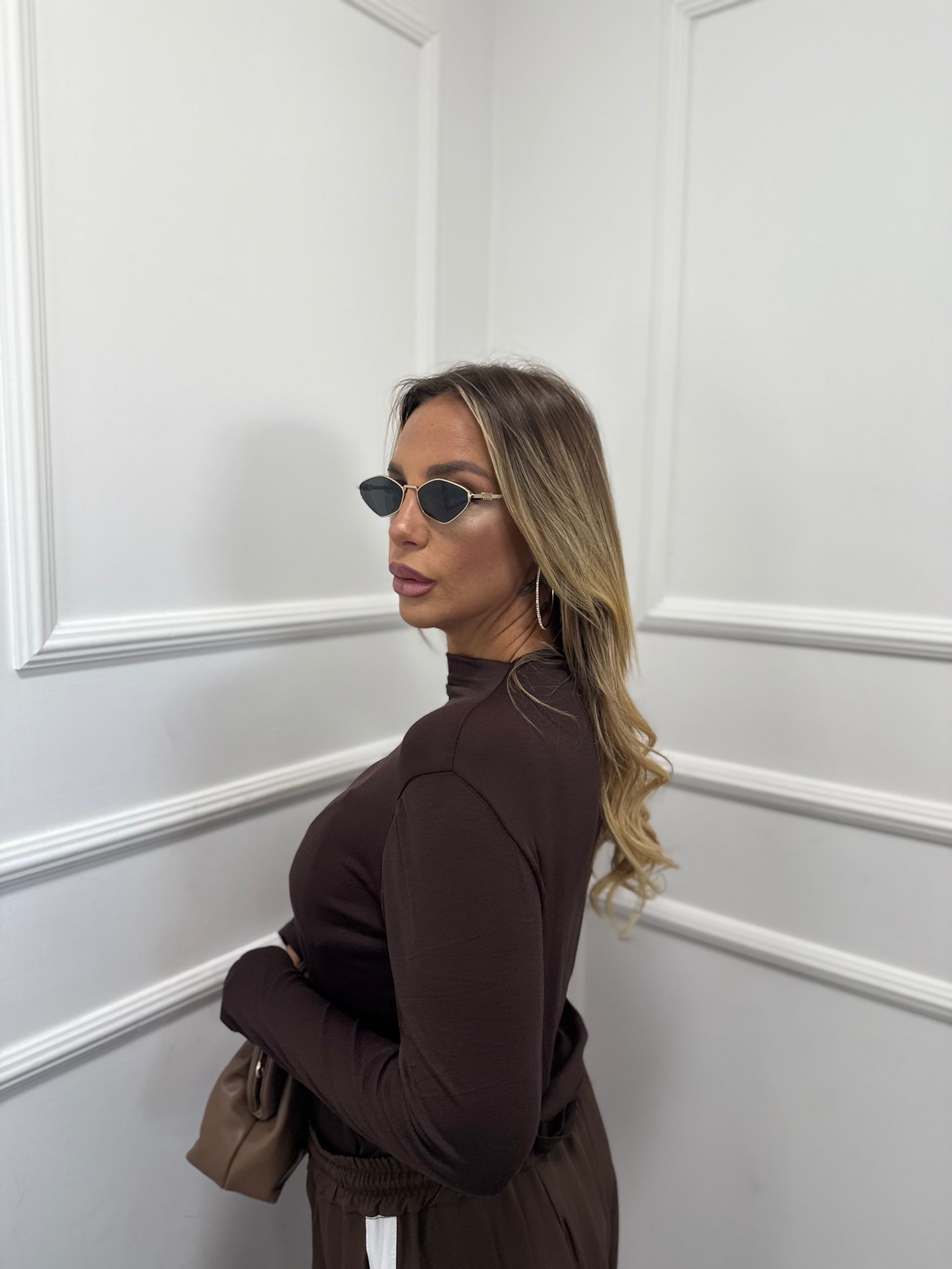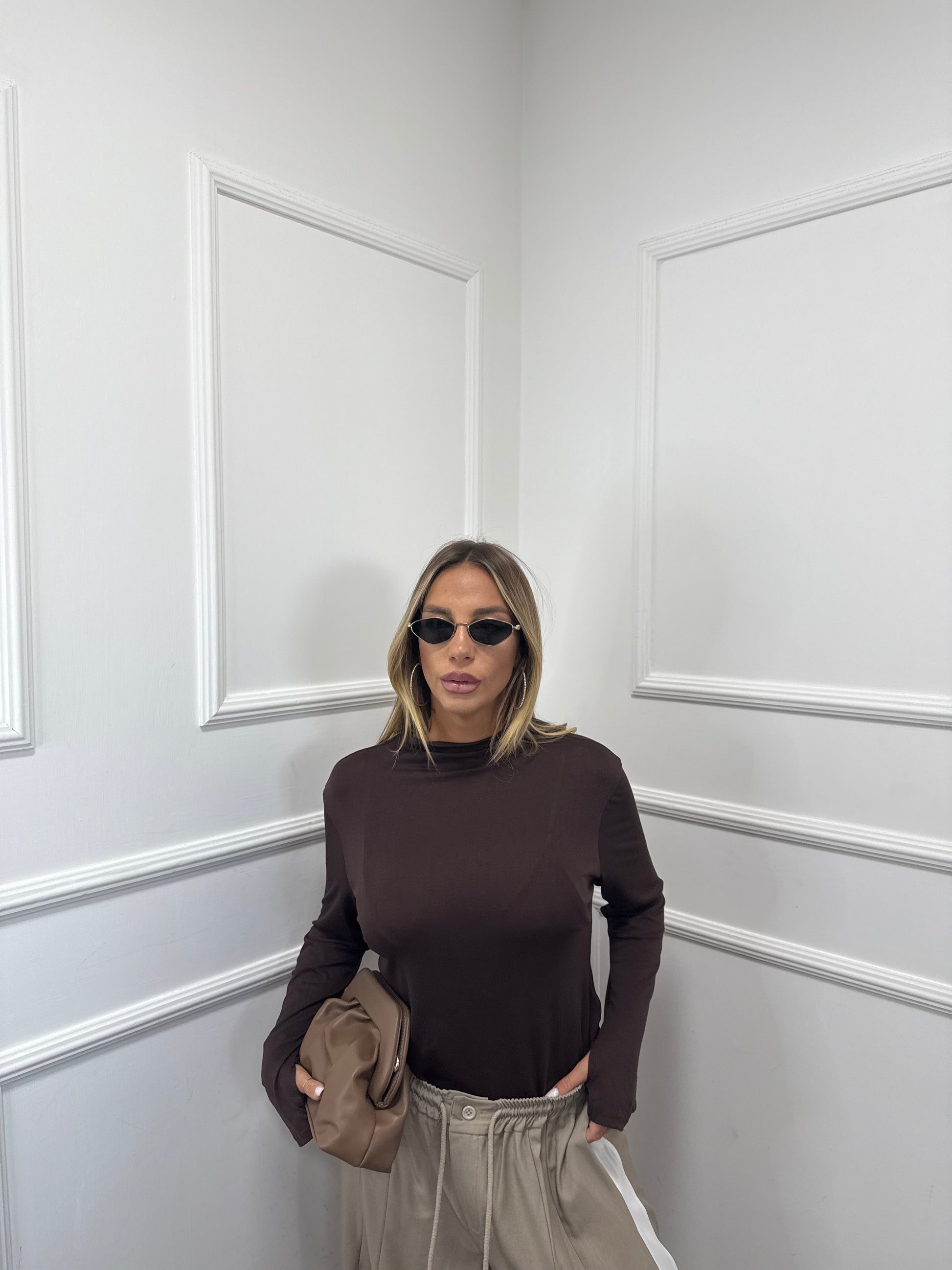 Body semi velato Curvy con manica a guanto cioccolato fd5262