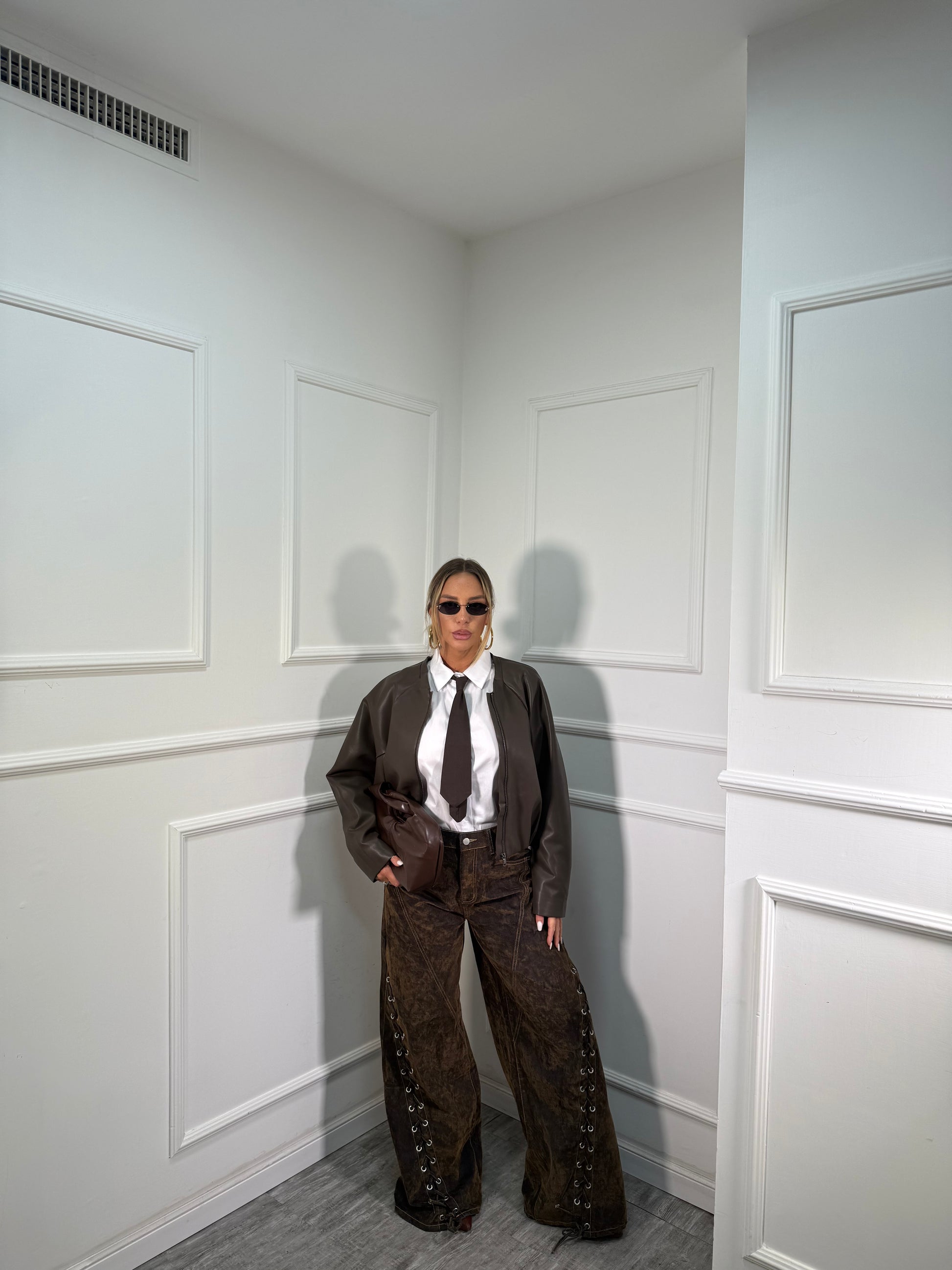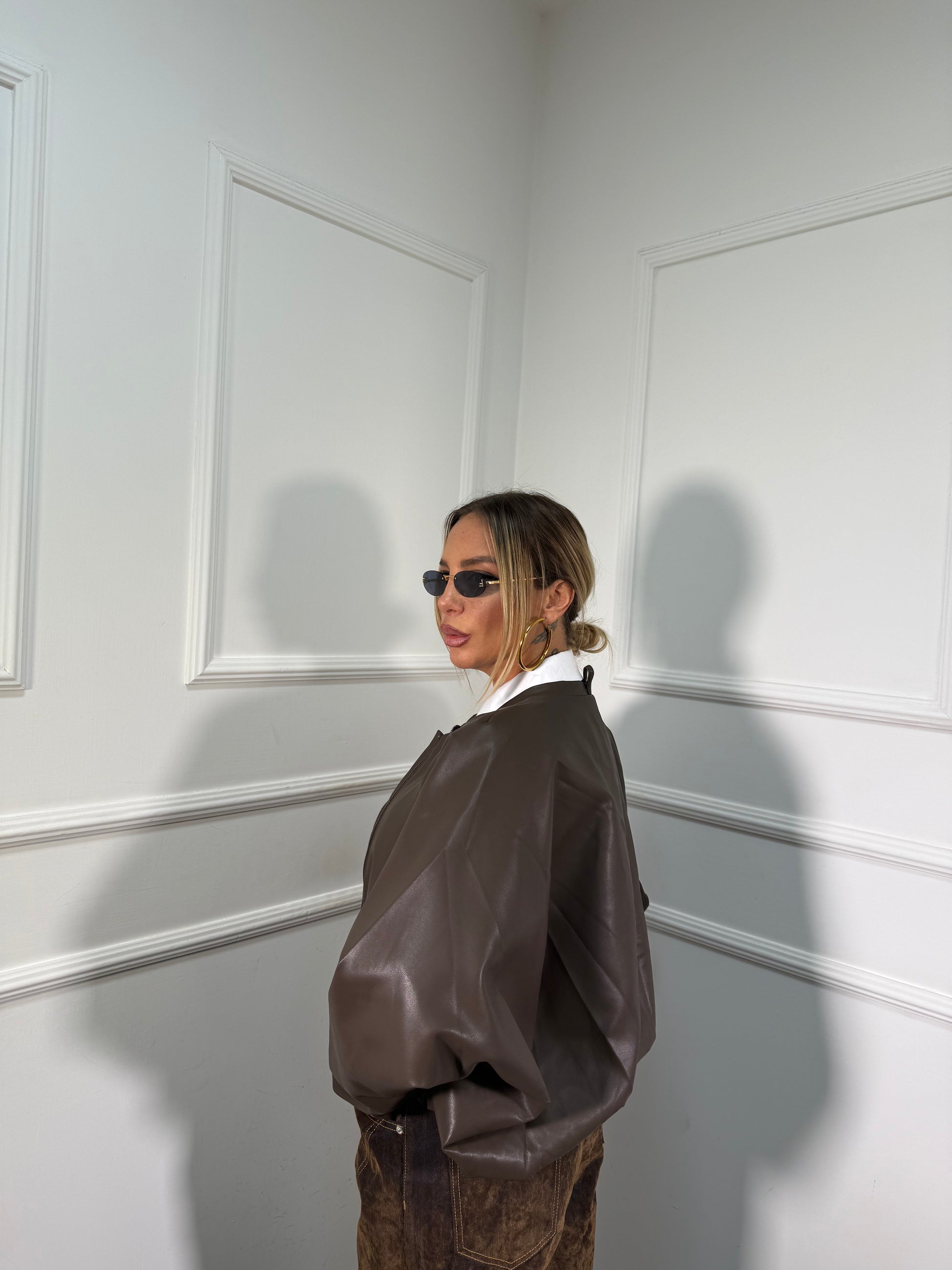 Bomber ecopelle con foulard pois cacao by monique 19276