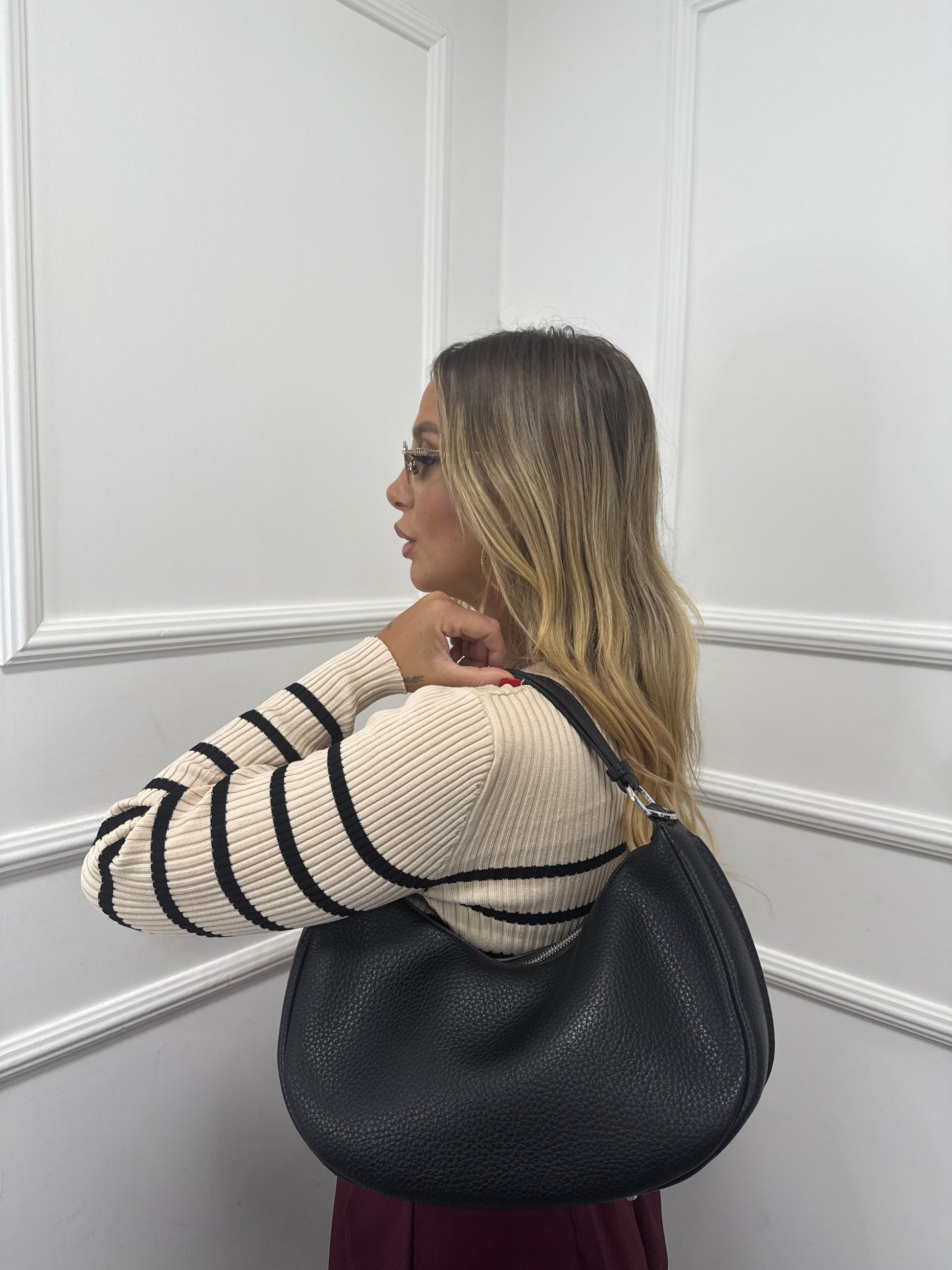Borsa ecopelle mezza luna nera