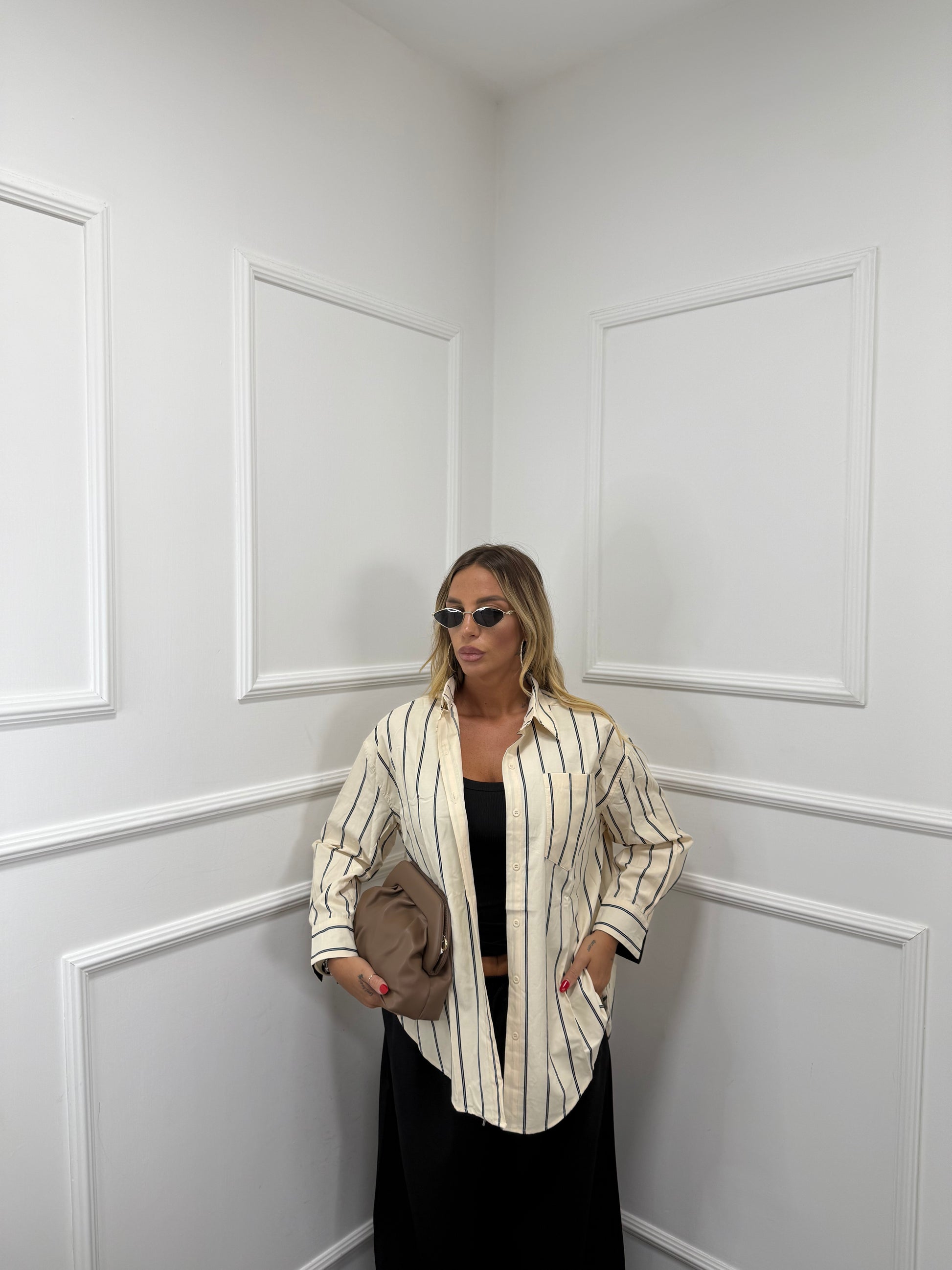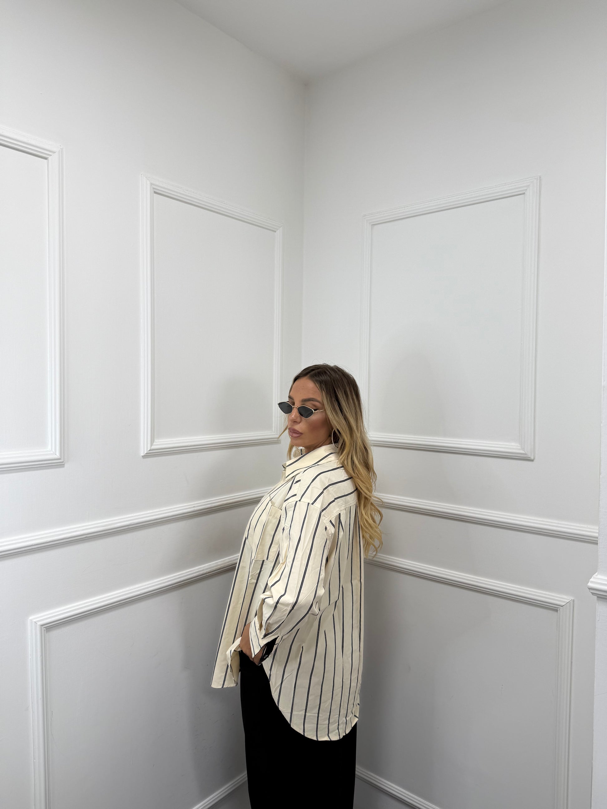 Camicia a righe Judith crema/nera 3302