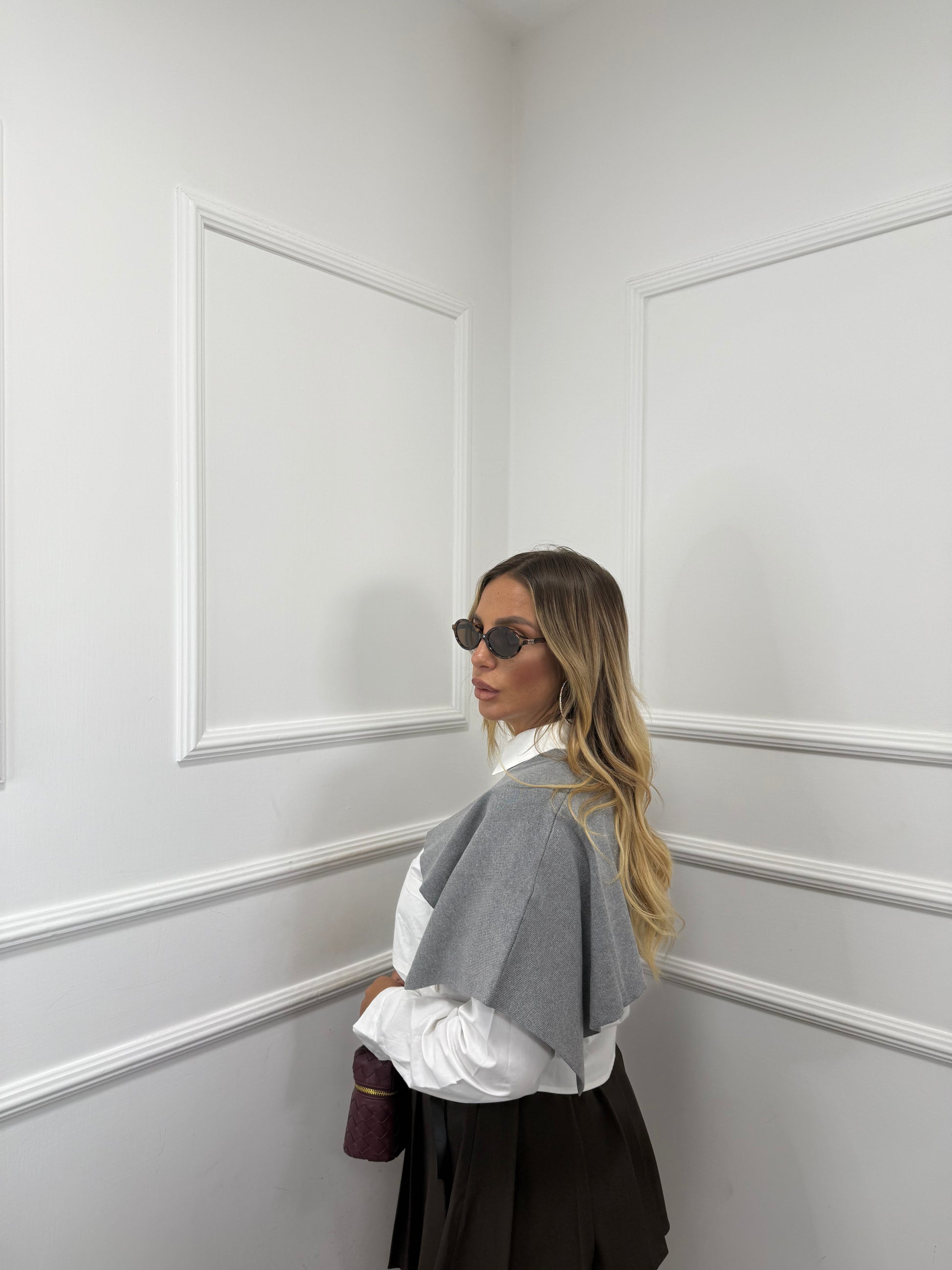 Camicia con mantellina in lana pettinata bianca/grigia by monique 7829
