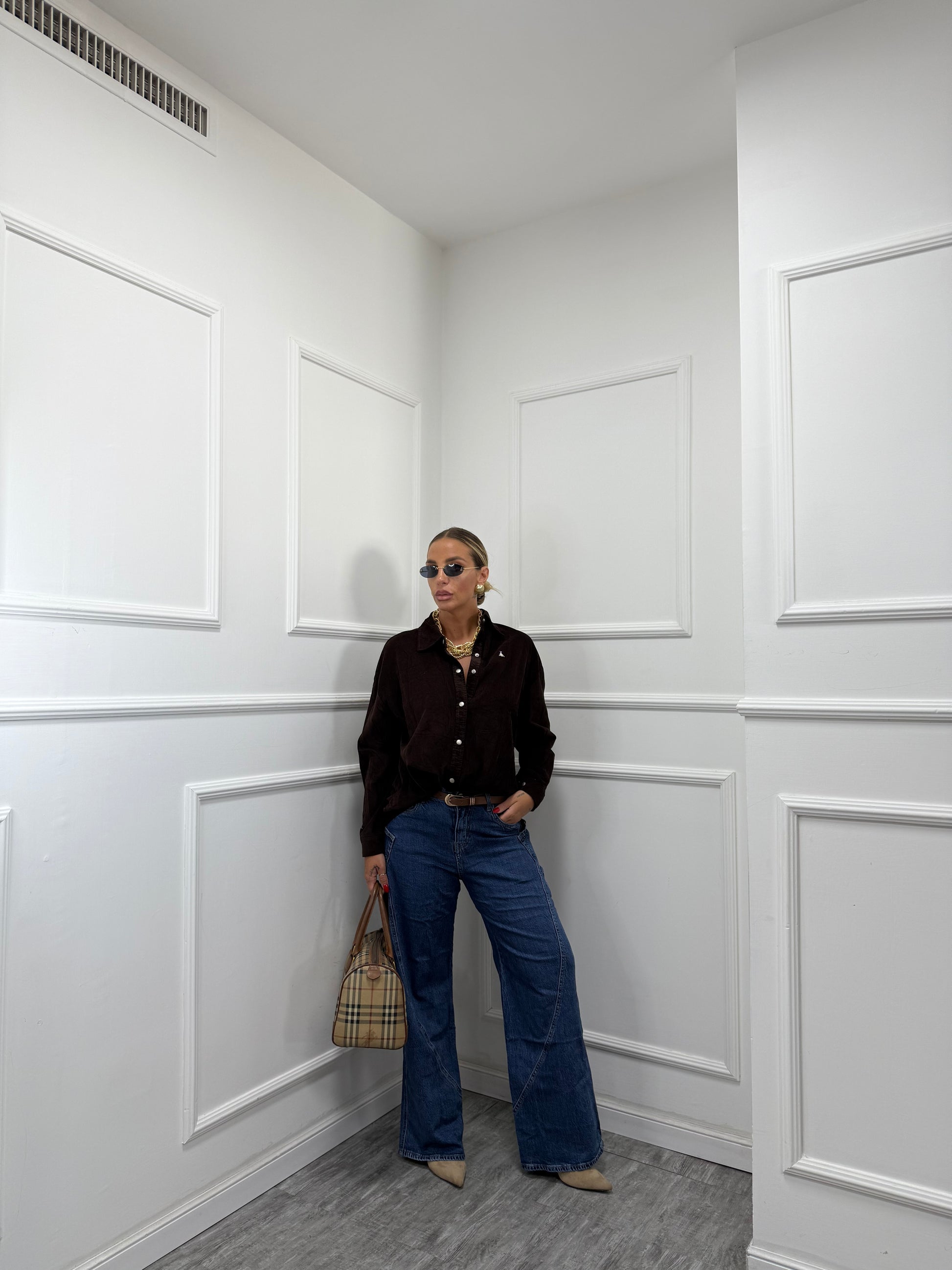 Camicia eco camoscio a costine Bee cioccolato by monique 51307
