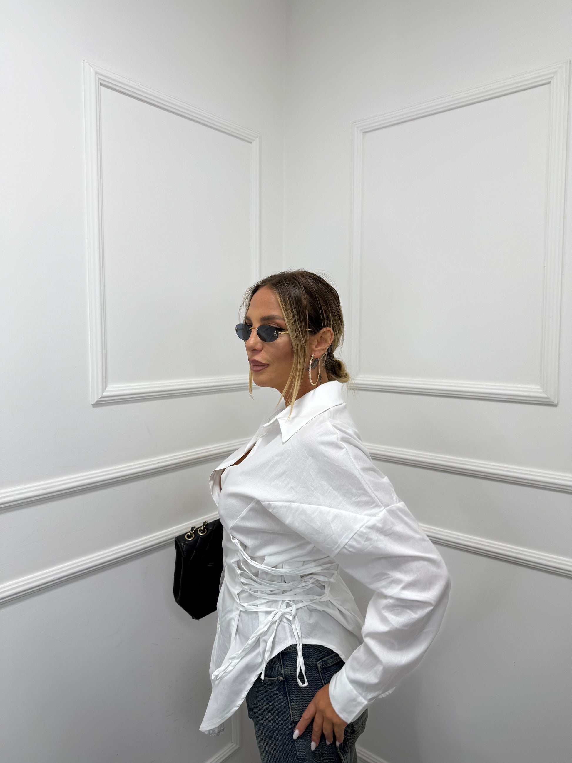 Camicia in cotone stringata Tokyo bianca nf9242