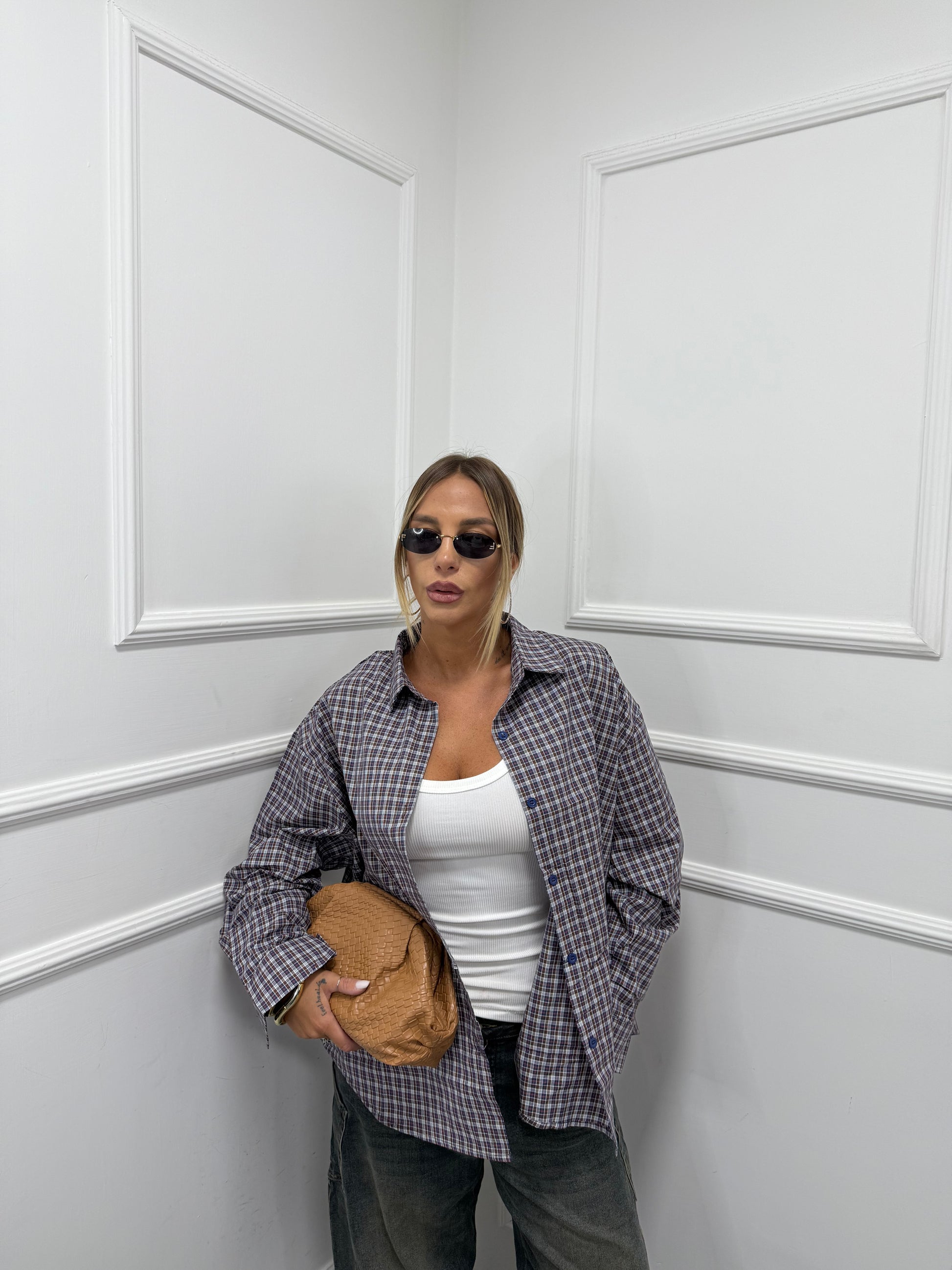 Camicia oversize con spalline Vibes blu/marrone mf2695