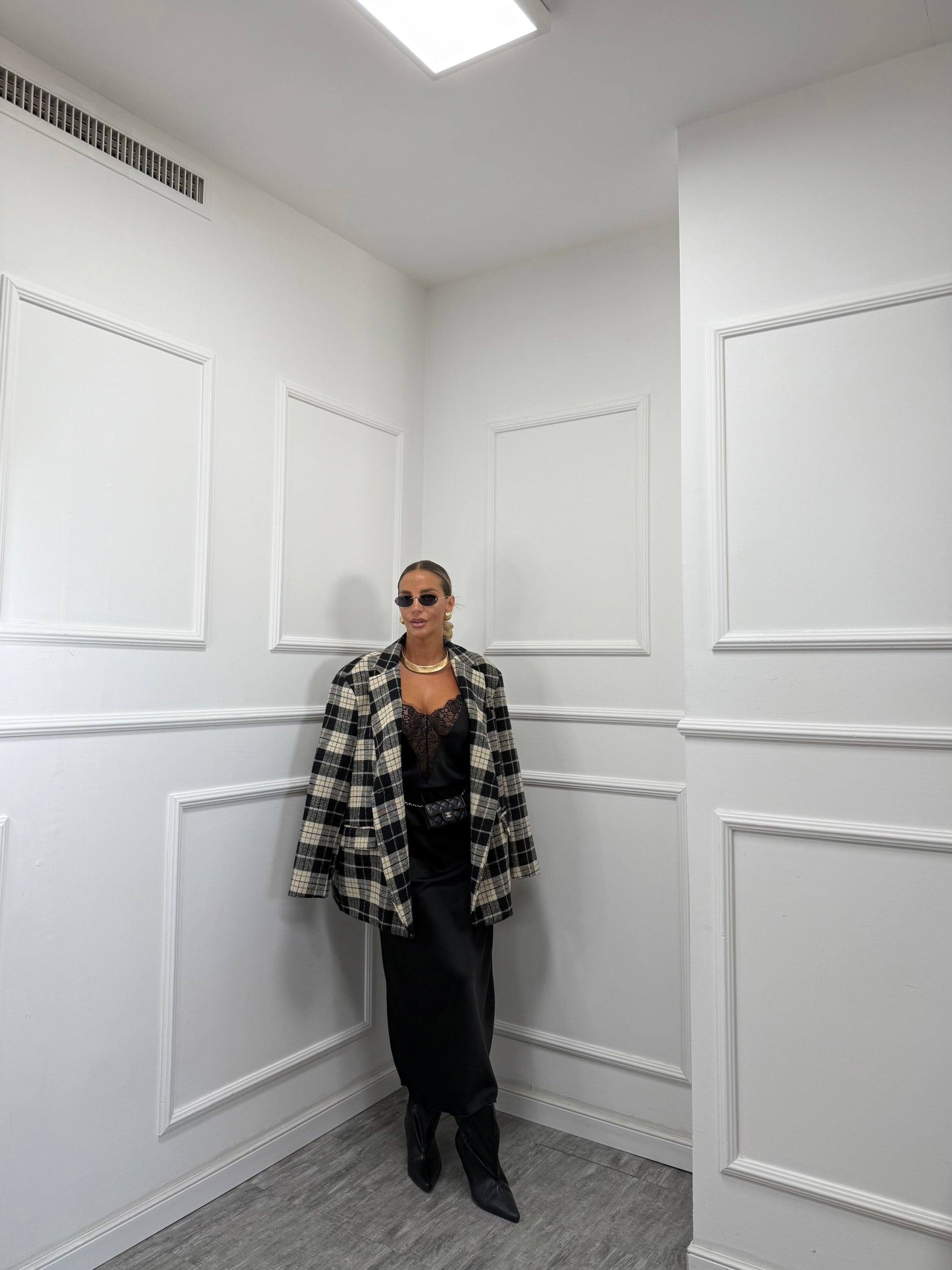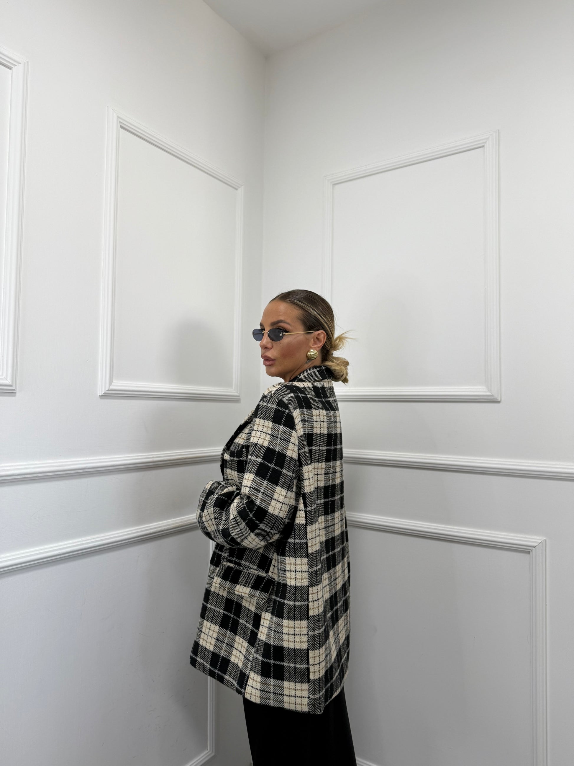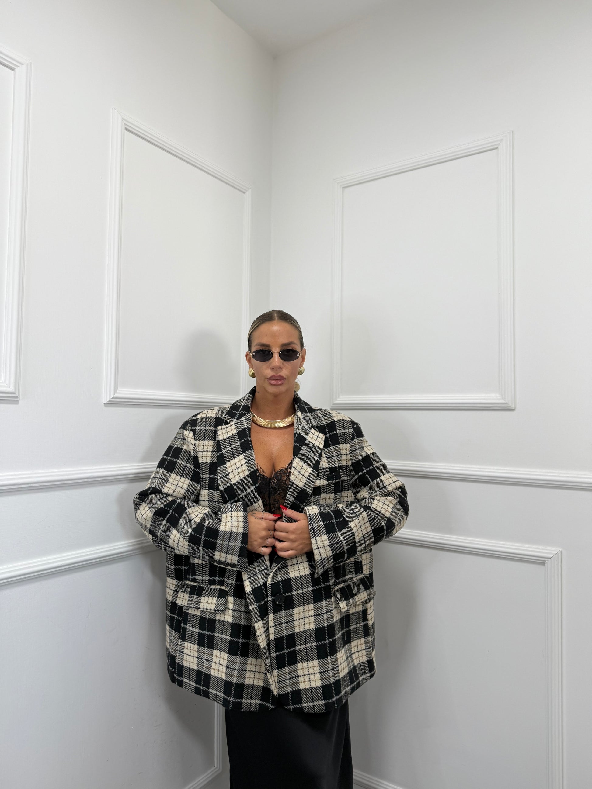 Cappottino in lana cotta a quadri British nero l9308 by lumina