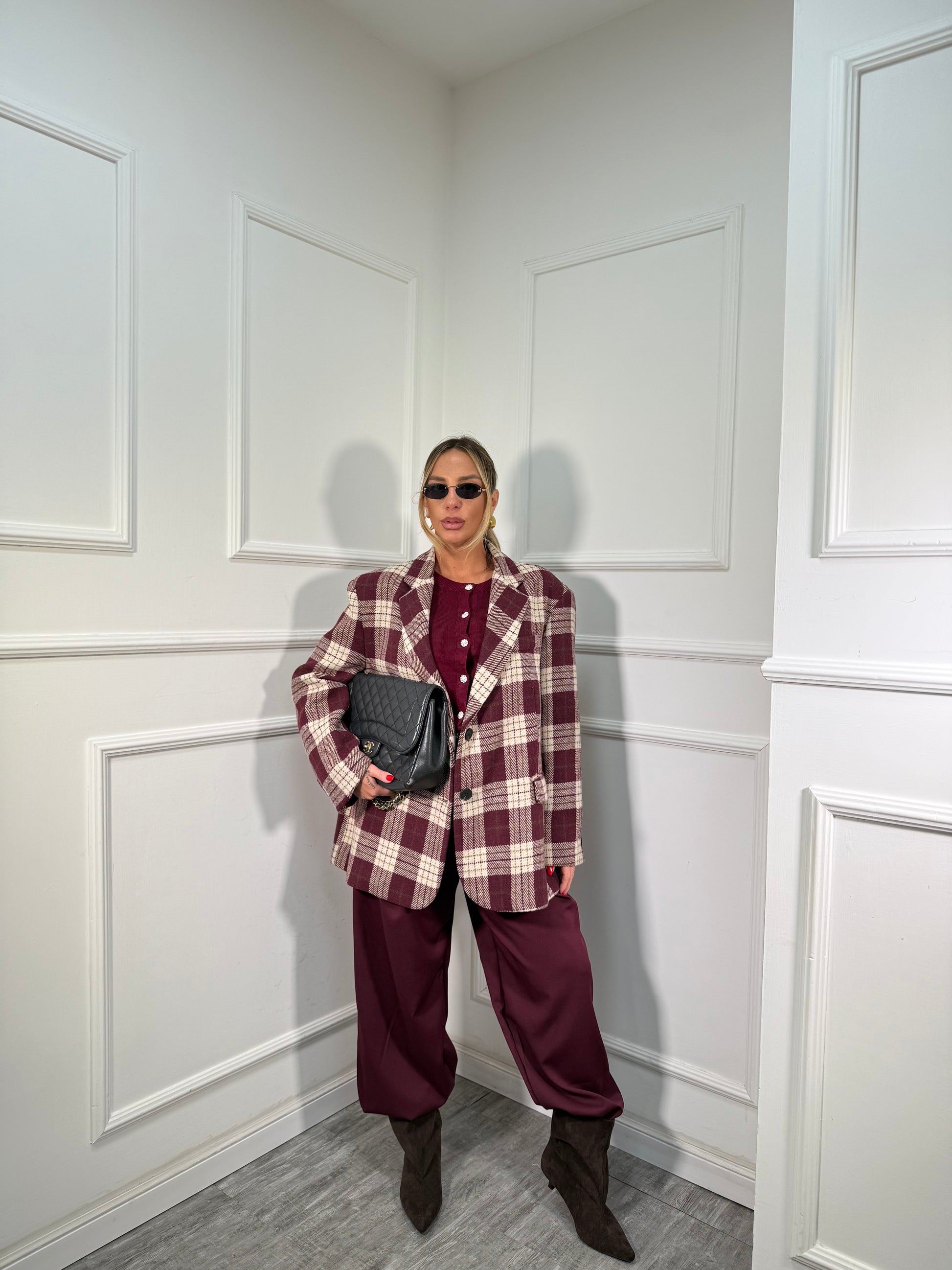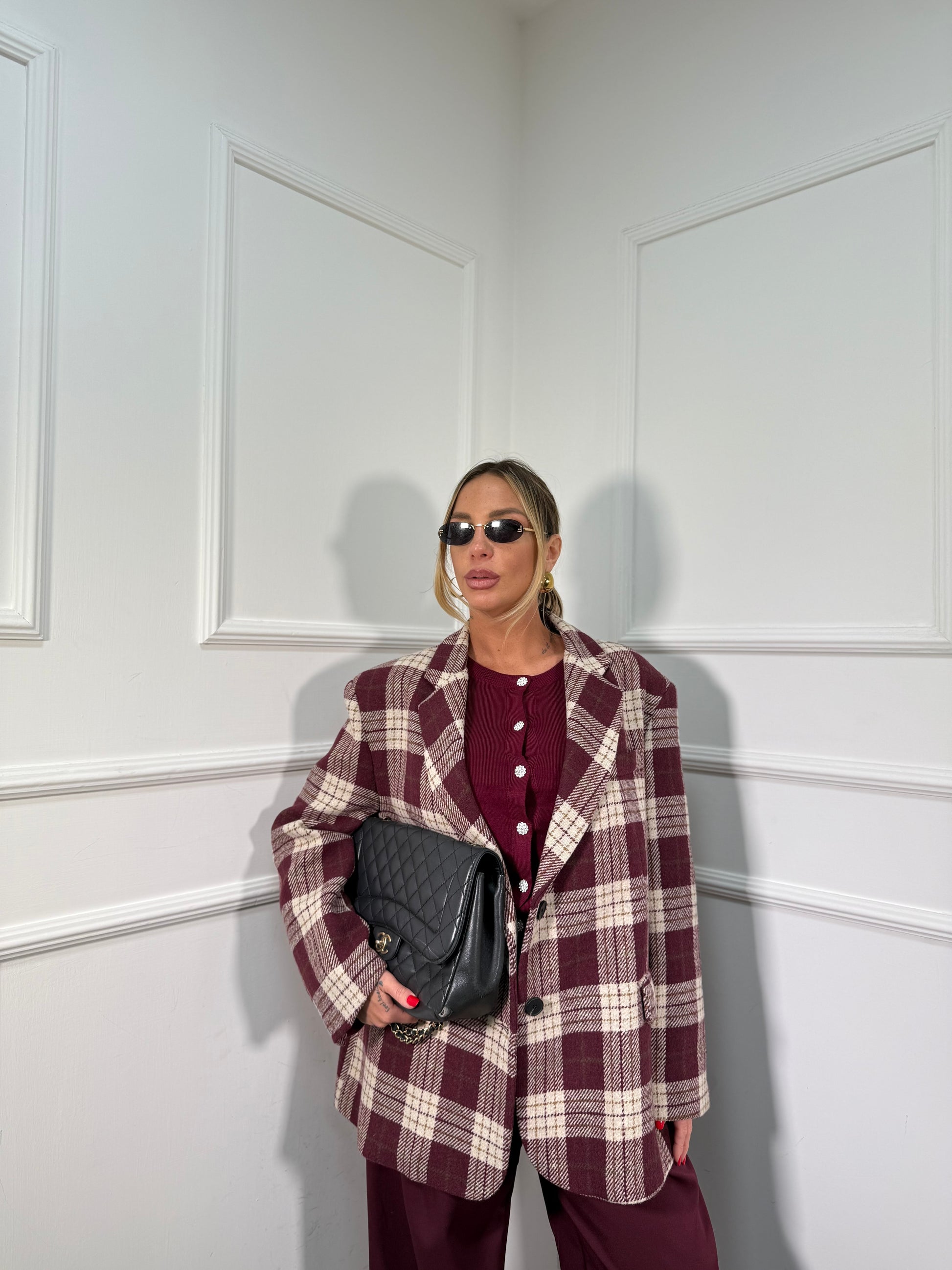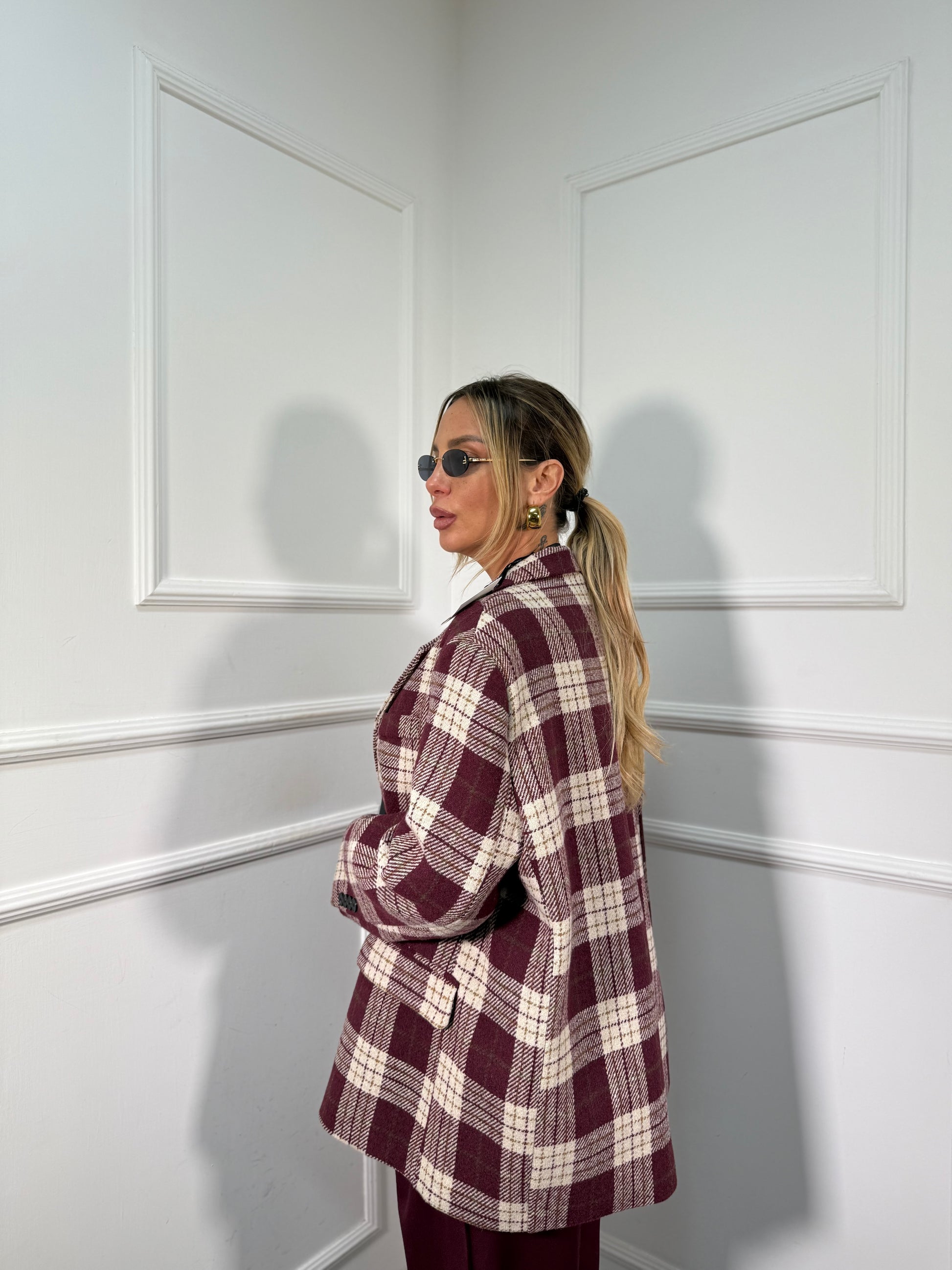 Cappottino in lana cotta a quadri British bordeaux l9308 by lumina