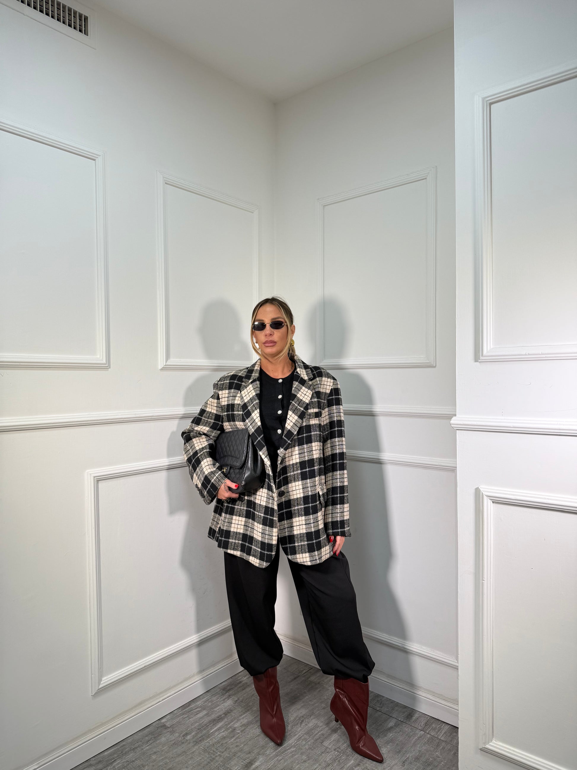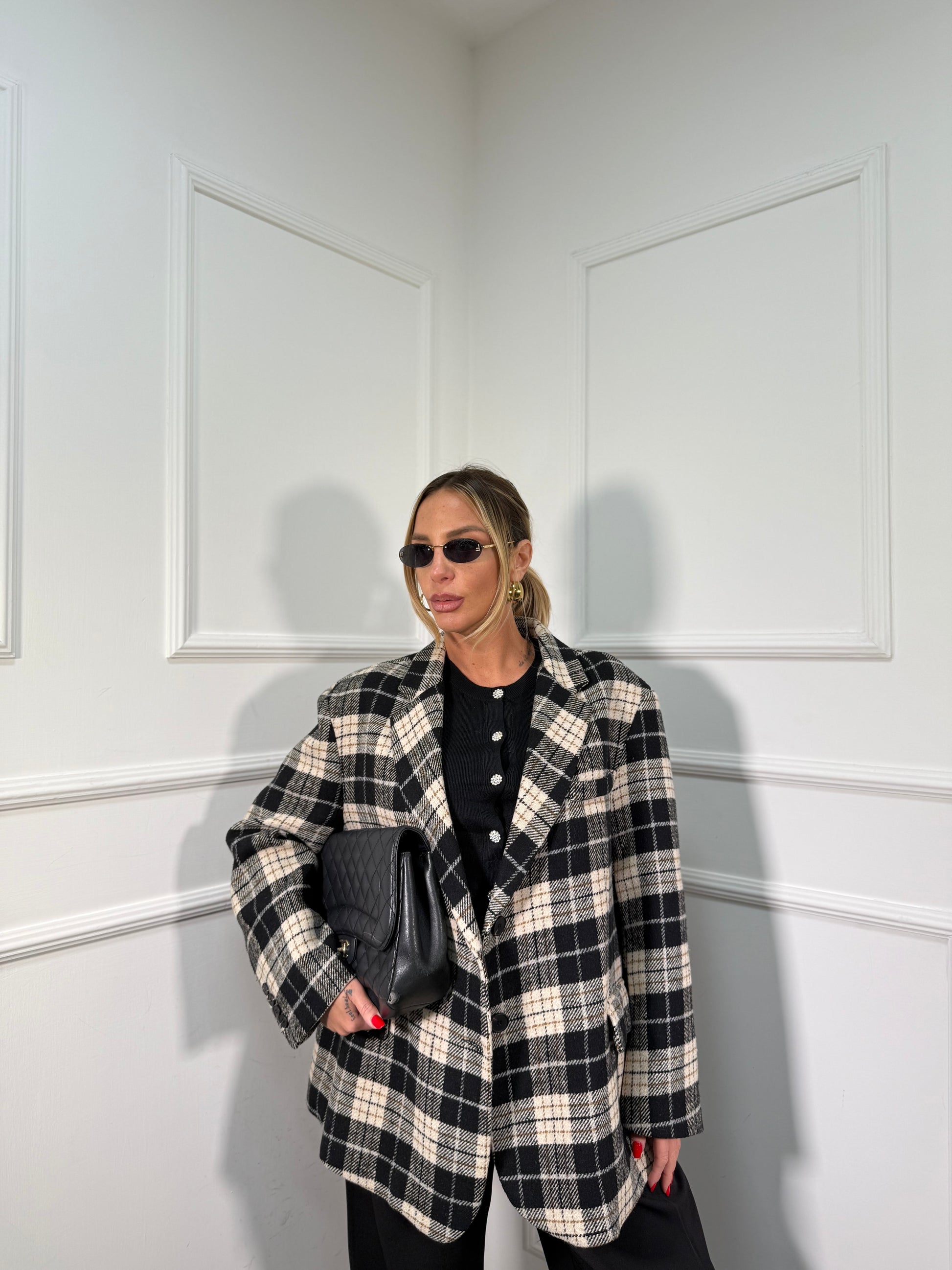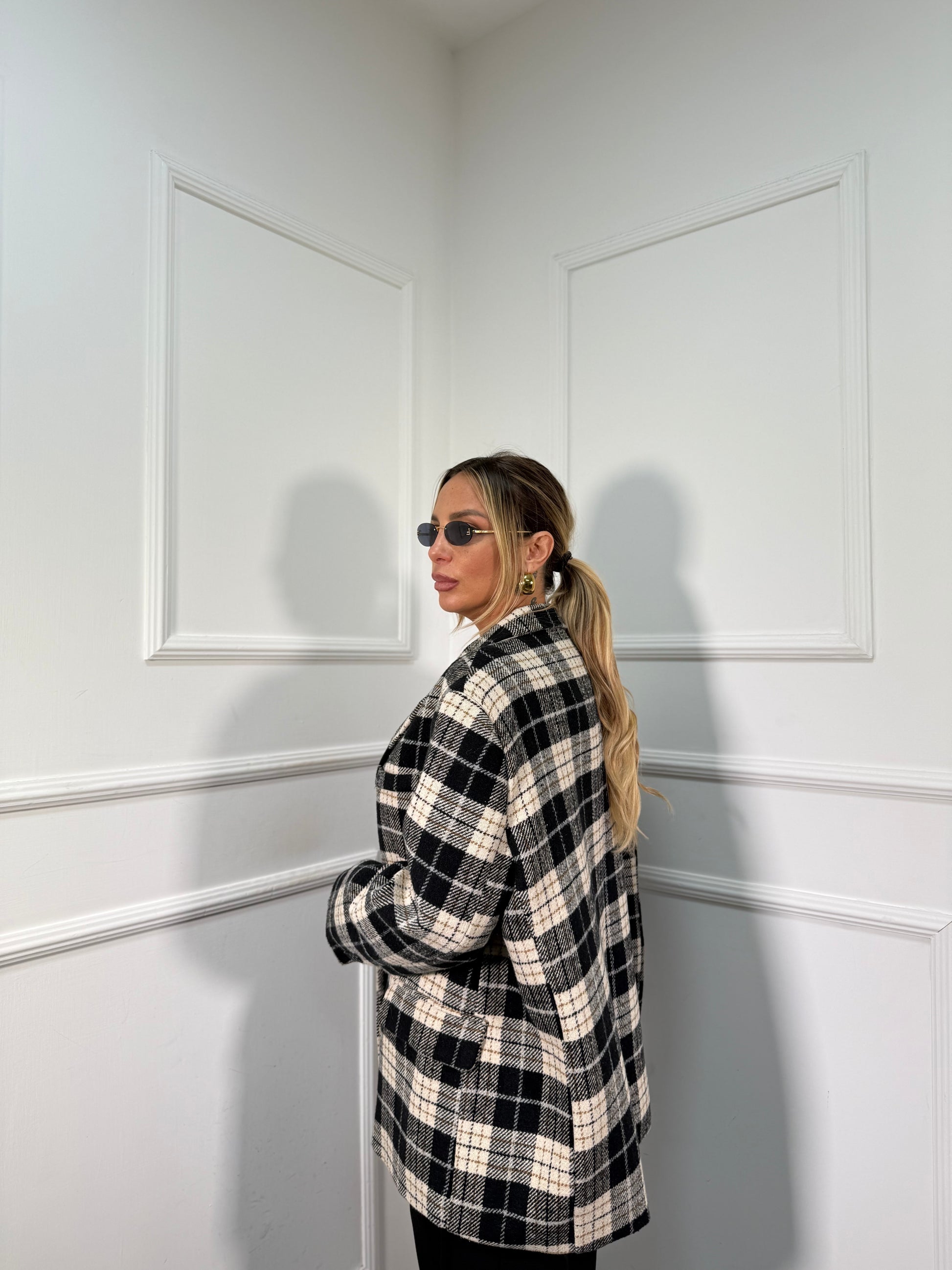 Cappottino in lana cotta a quadri British nero l9308 by lumina