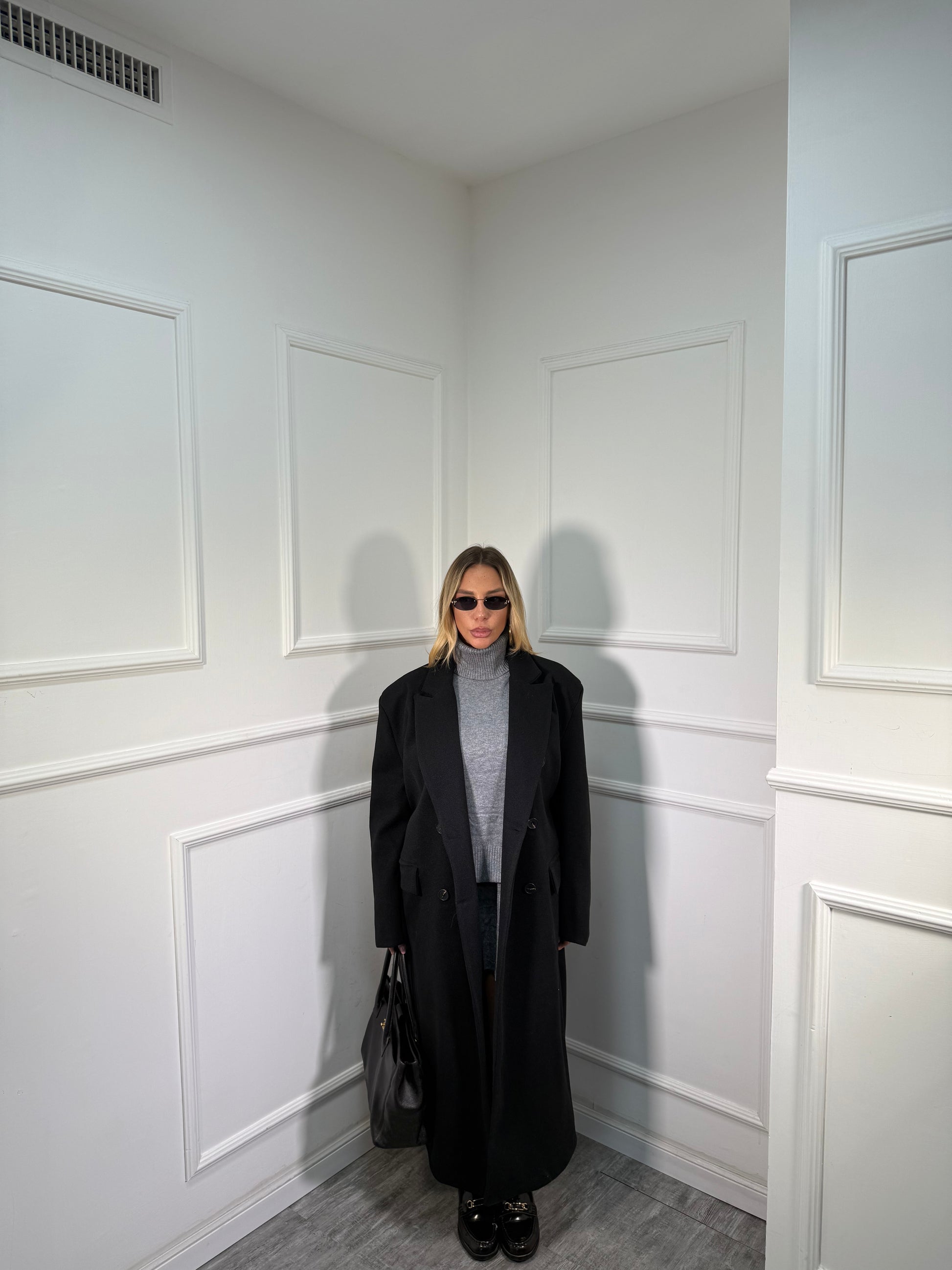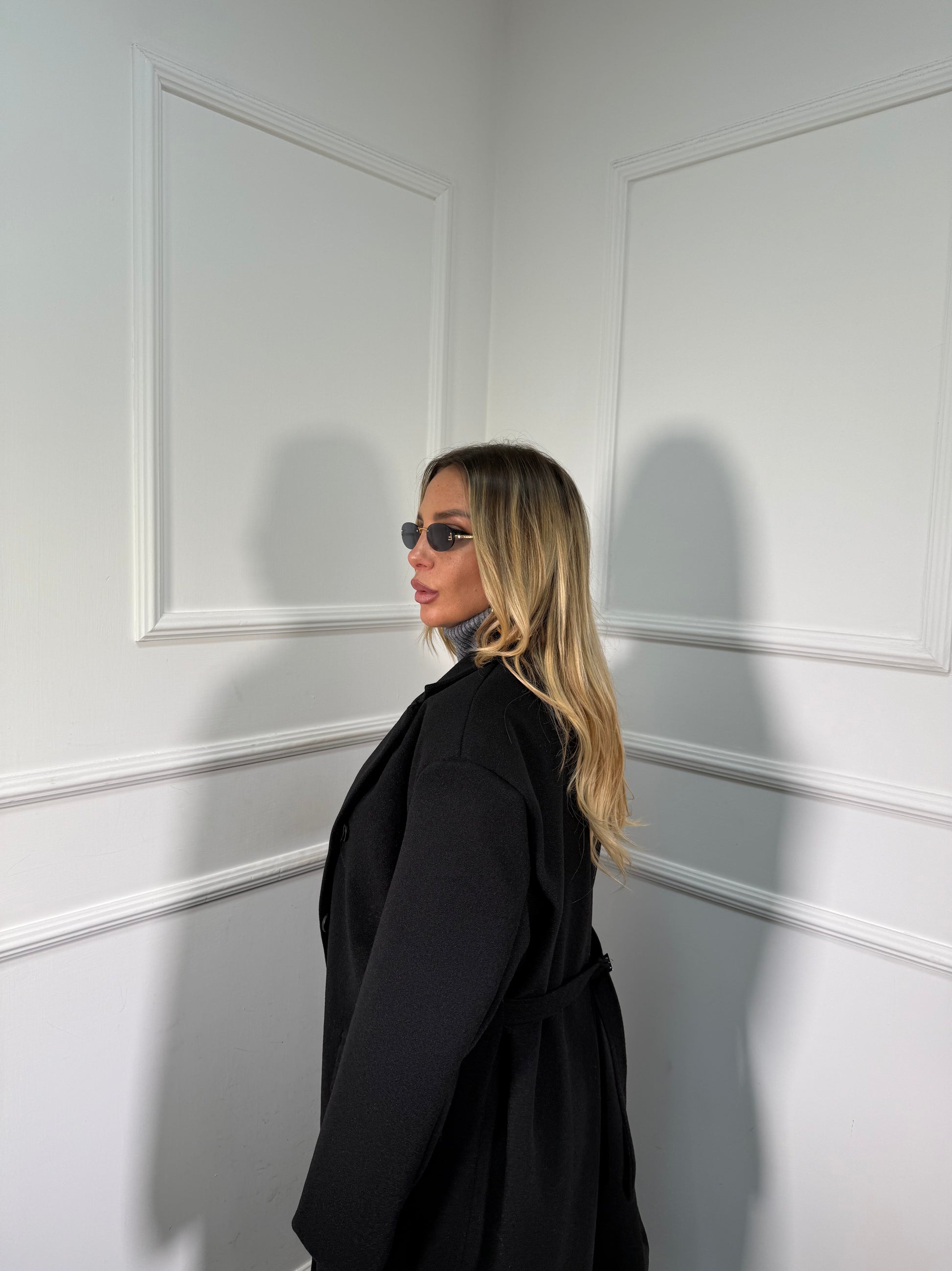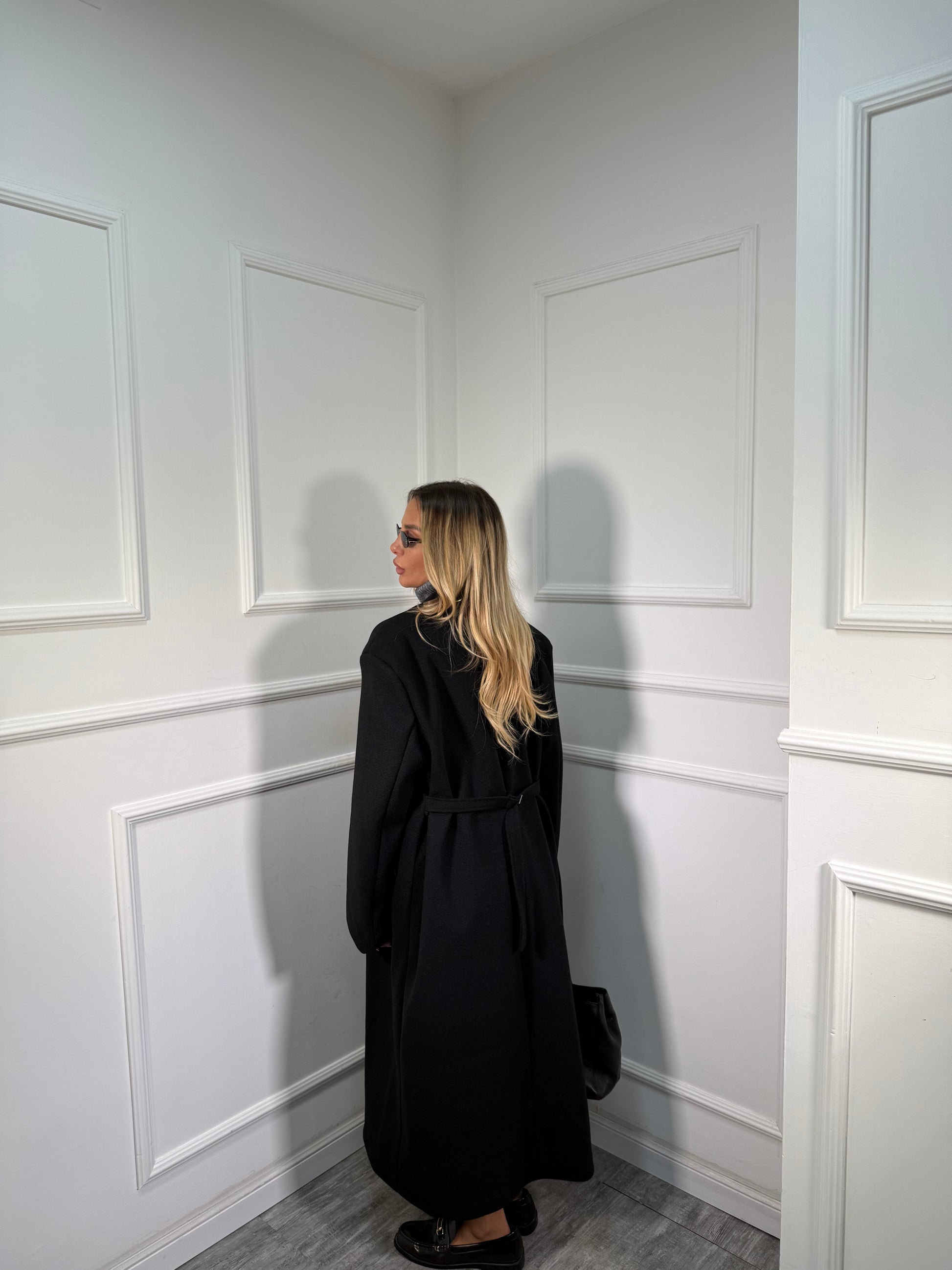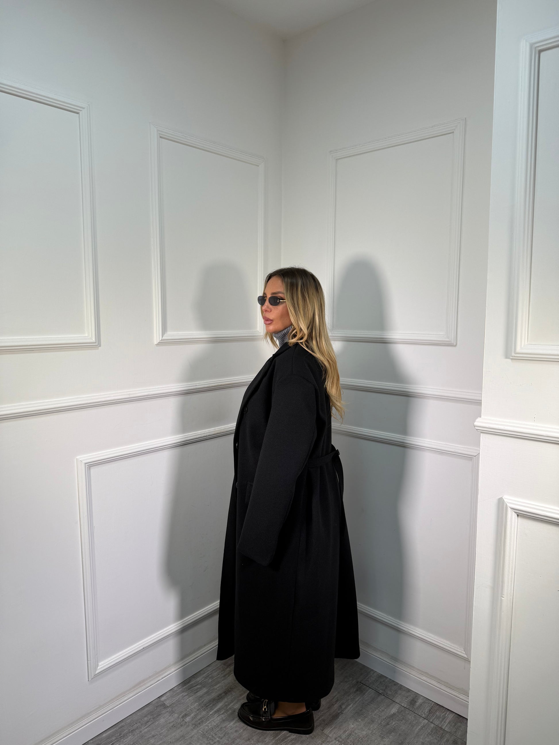 Cappotto doppiopetto con cinturino sul retro Broadway nero m11149