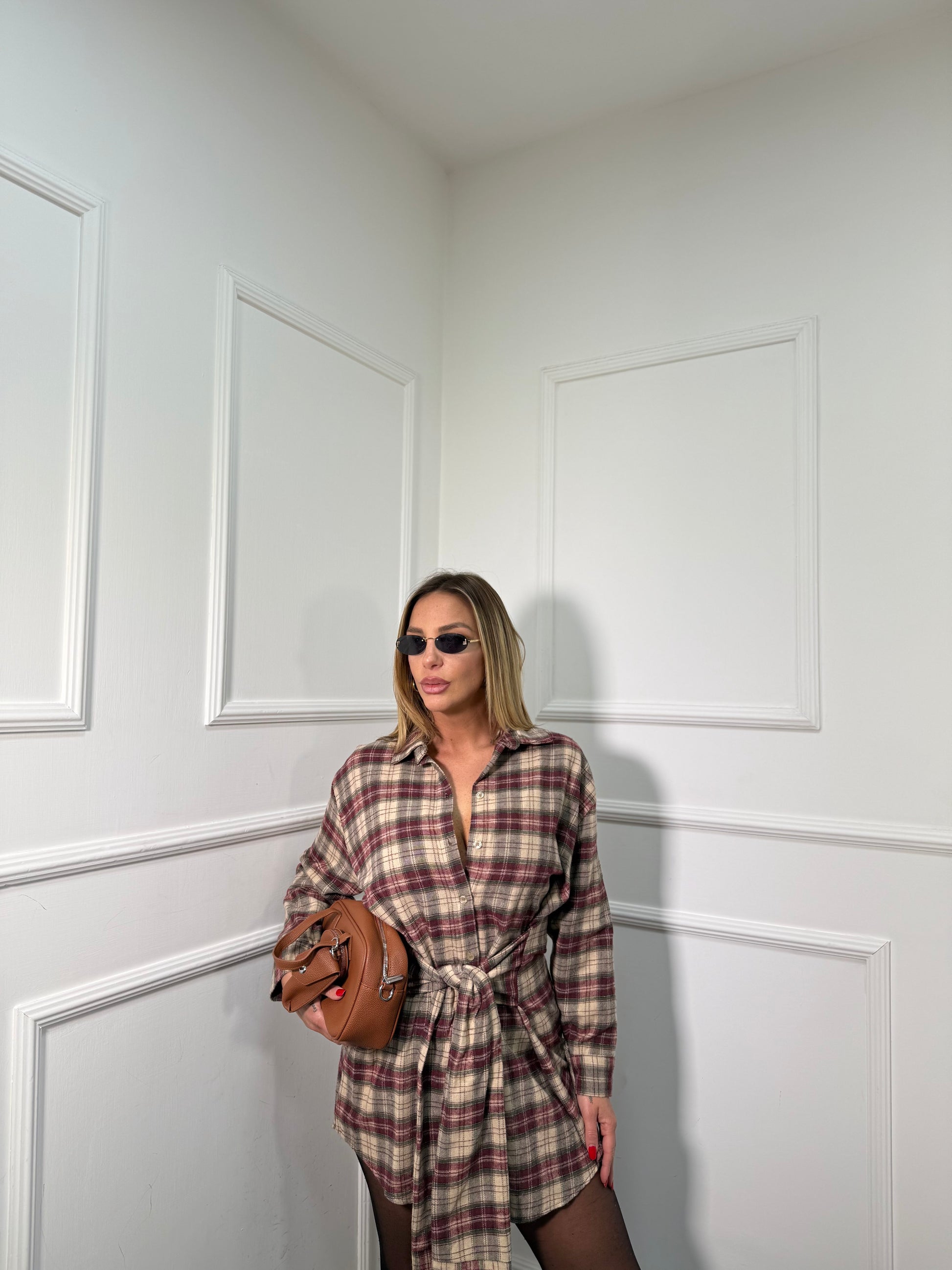 Chemisier in flanella a quadri bordeaux/camel 25769
