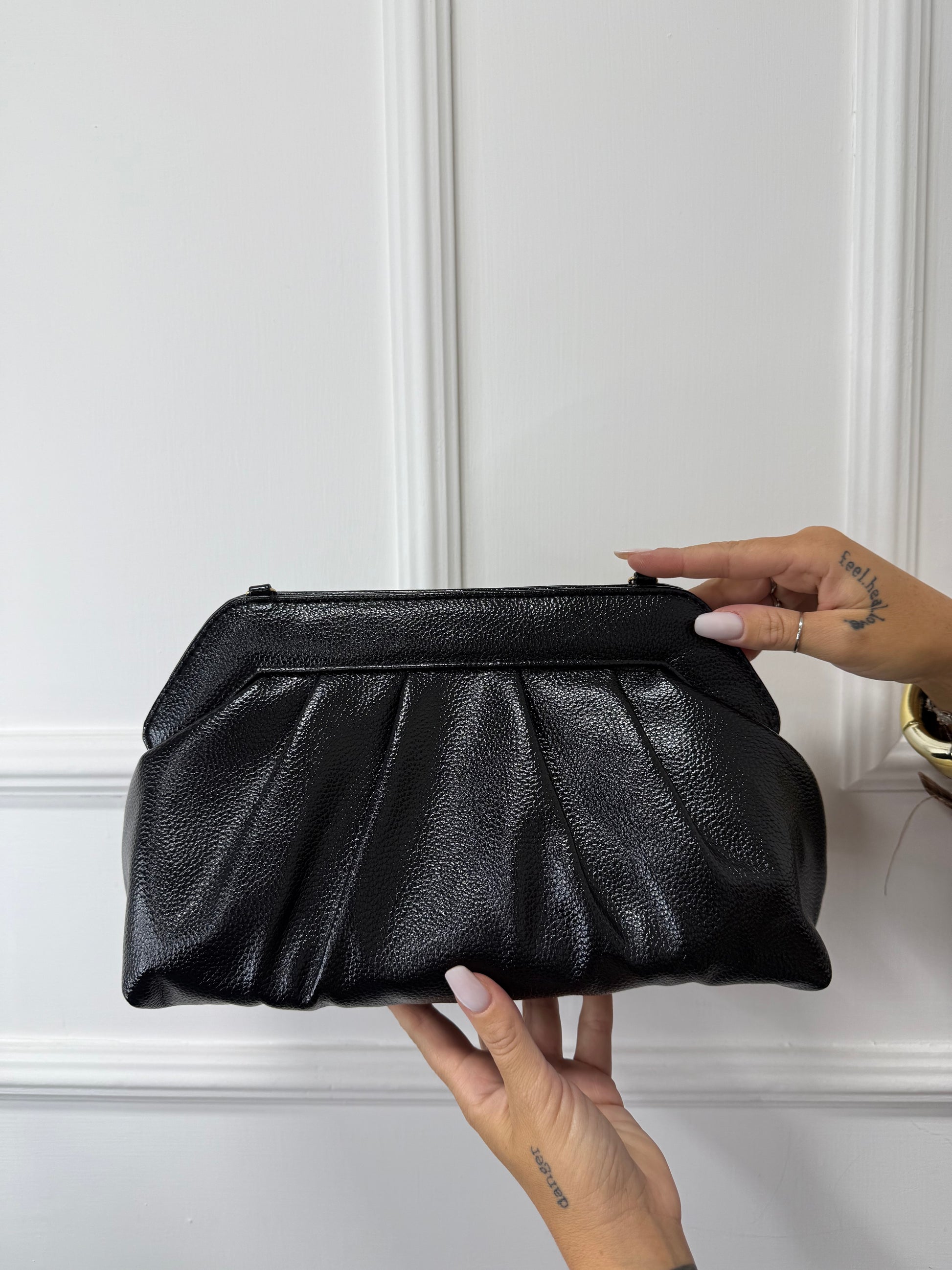 Clutch in ecopelle martellata nera