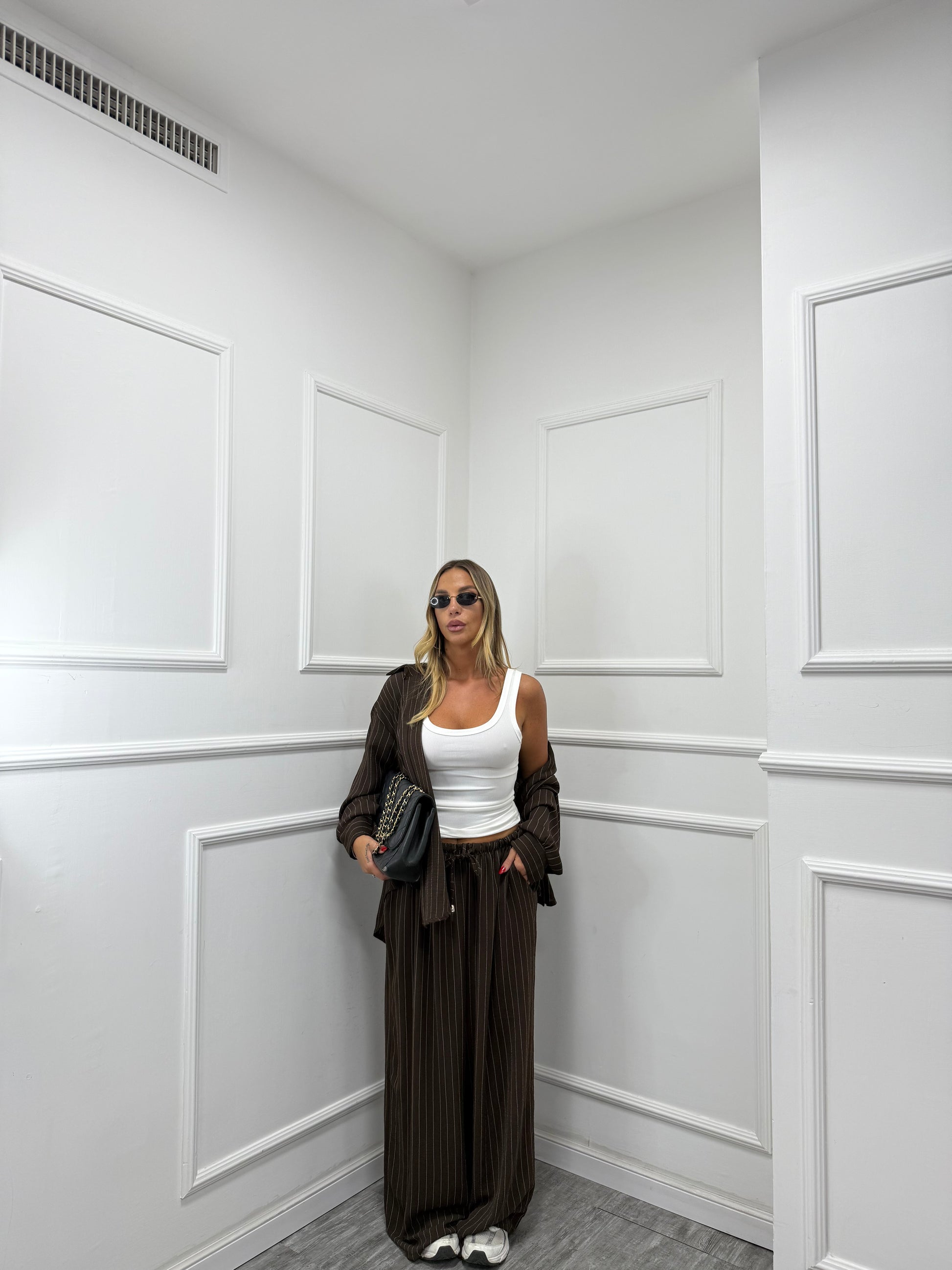 Coordinato con camicia oversize e pantaloni elastico in vita regolabile e tasche laterali