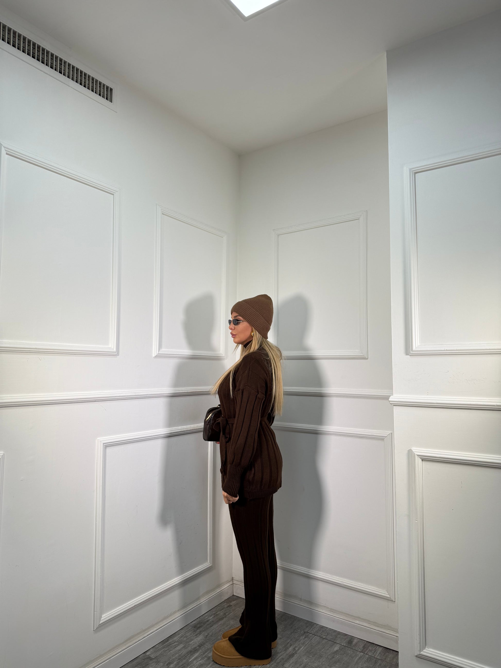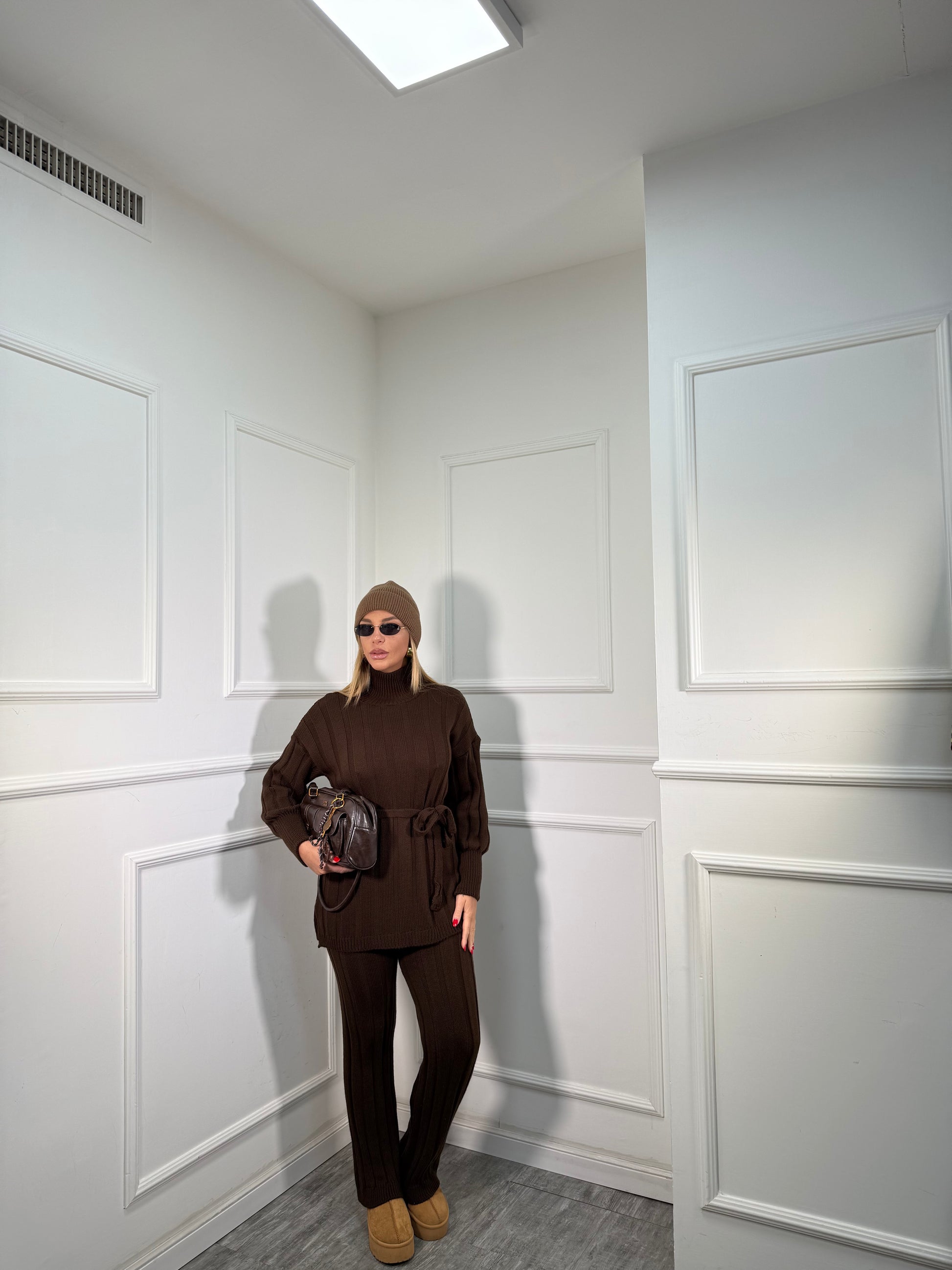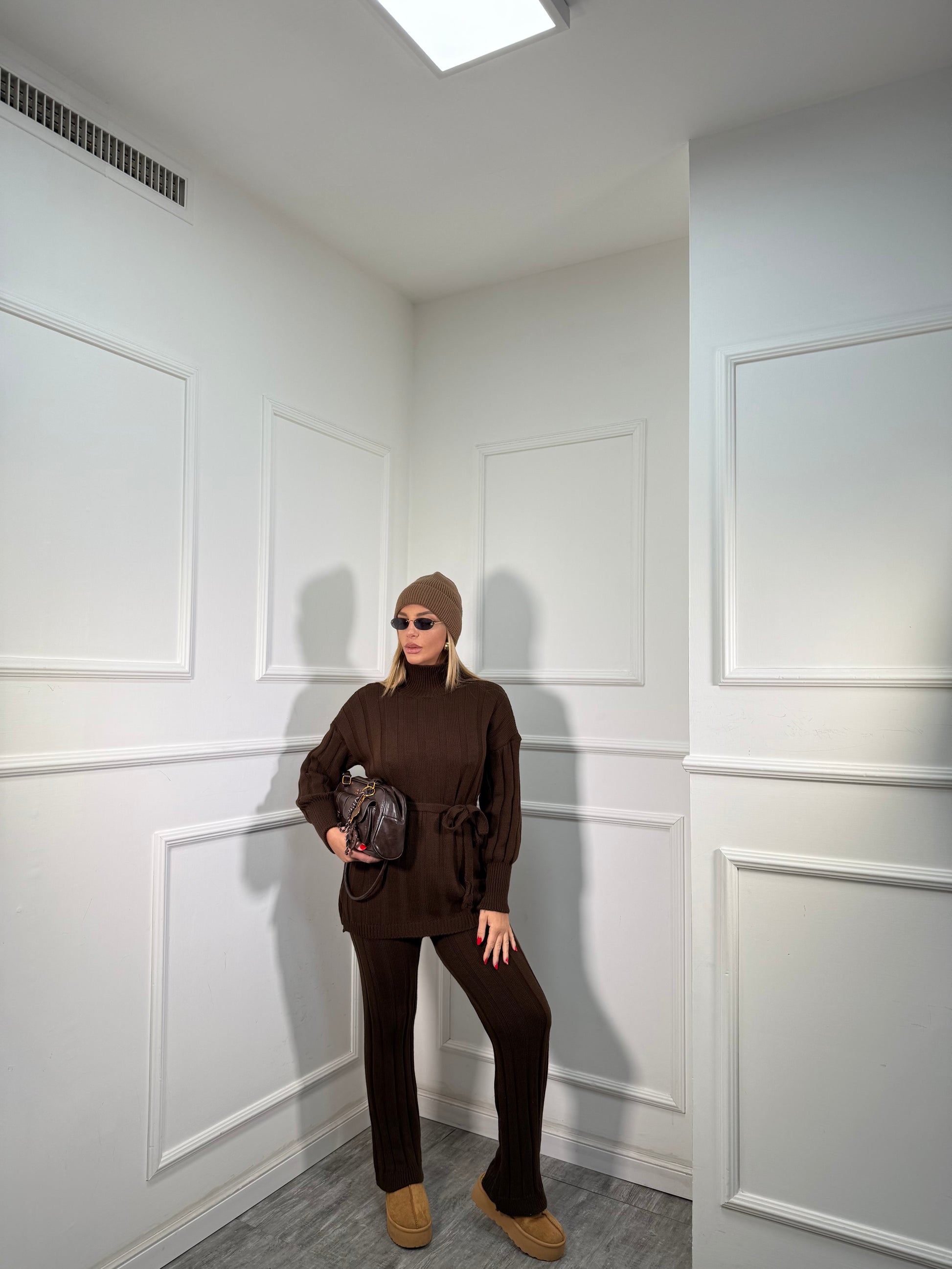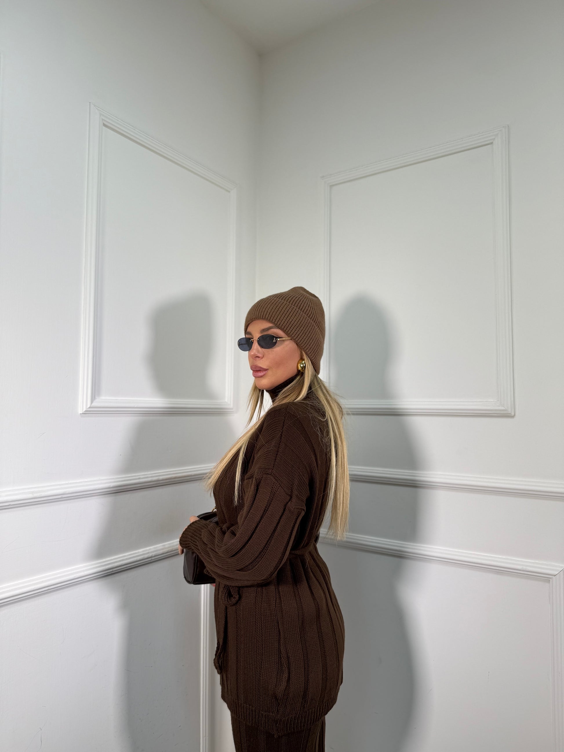 Coordinato in maglia a coste December cioccolato 228000