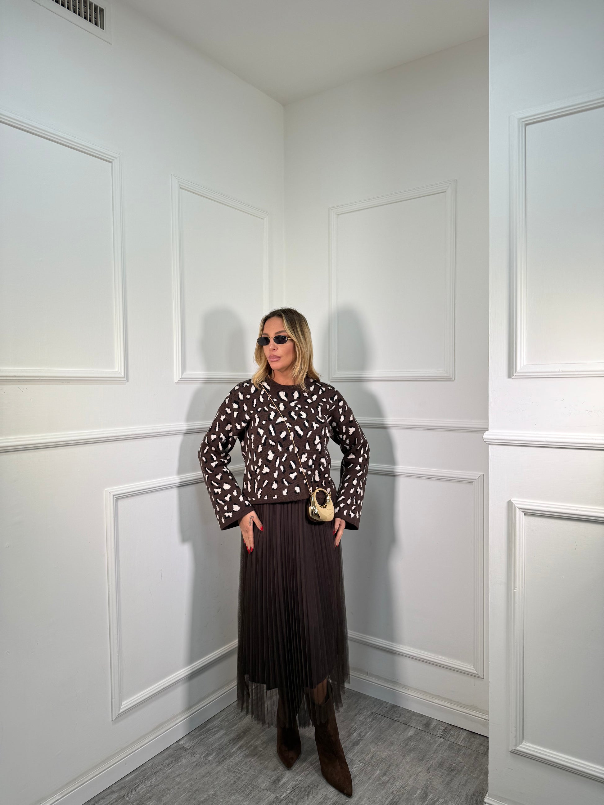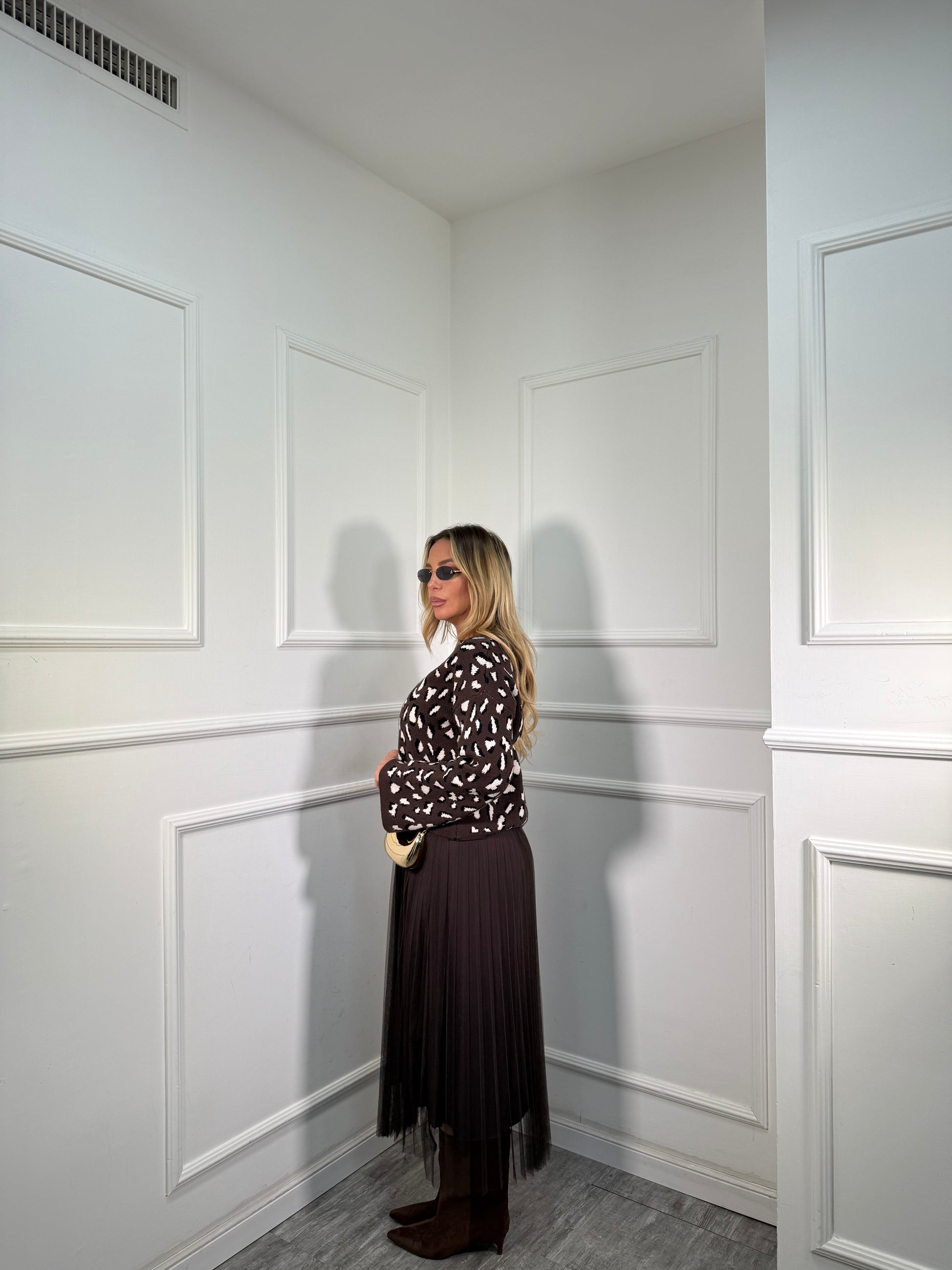 Coordinato 2pezzi in tulle maculato Giselle cioccolato 23200