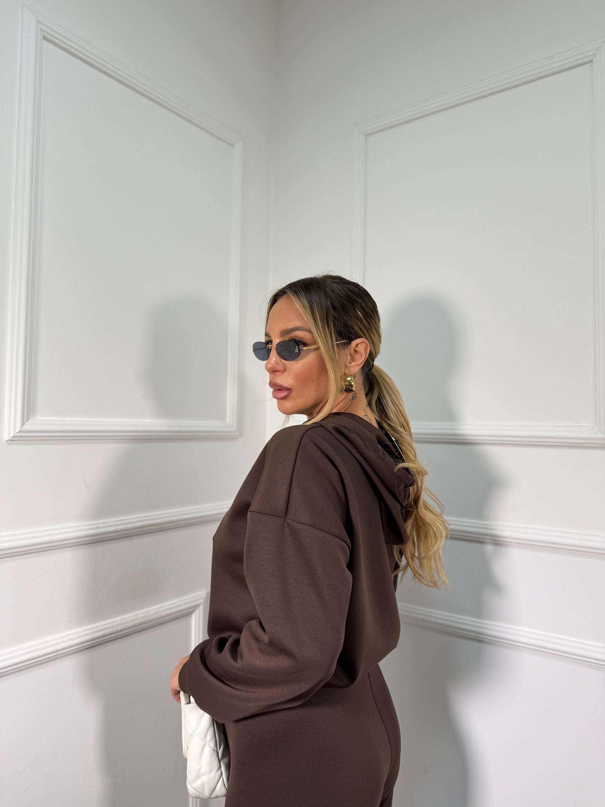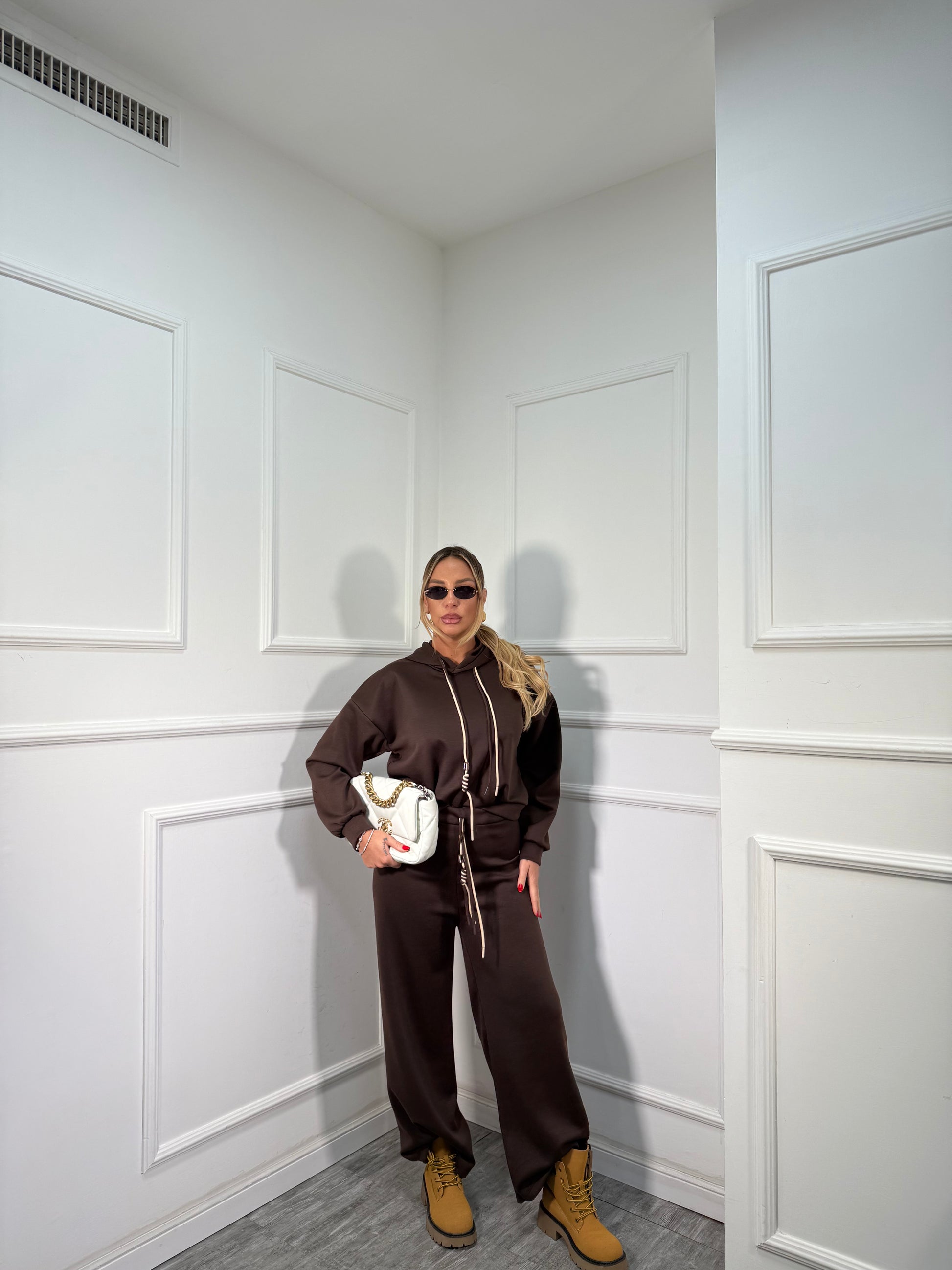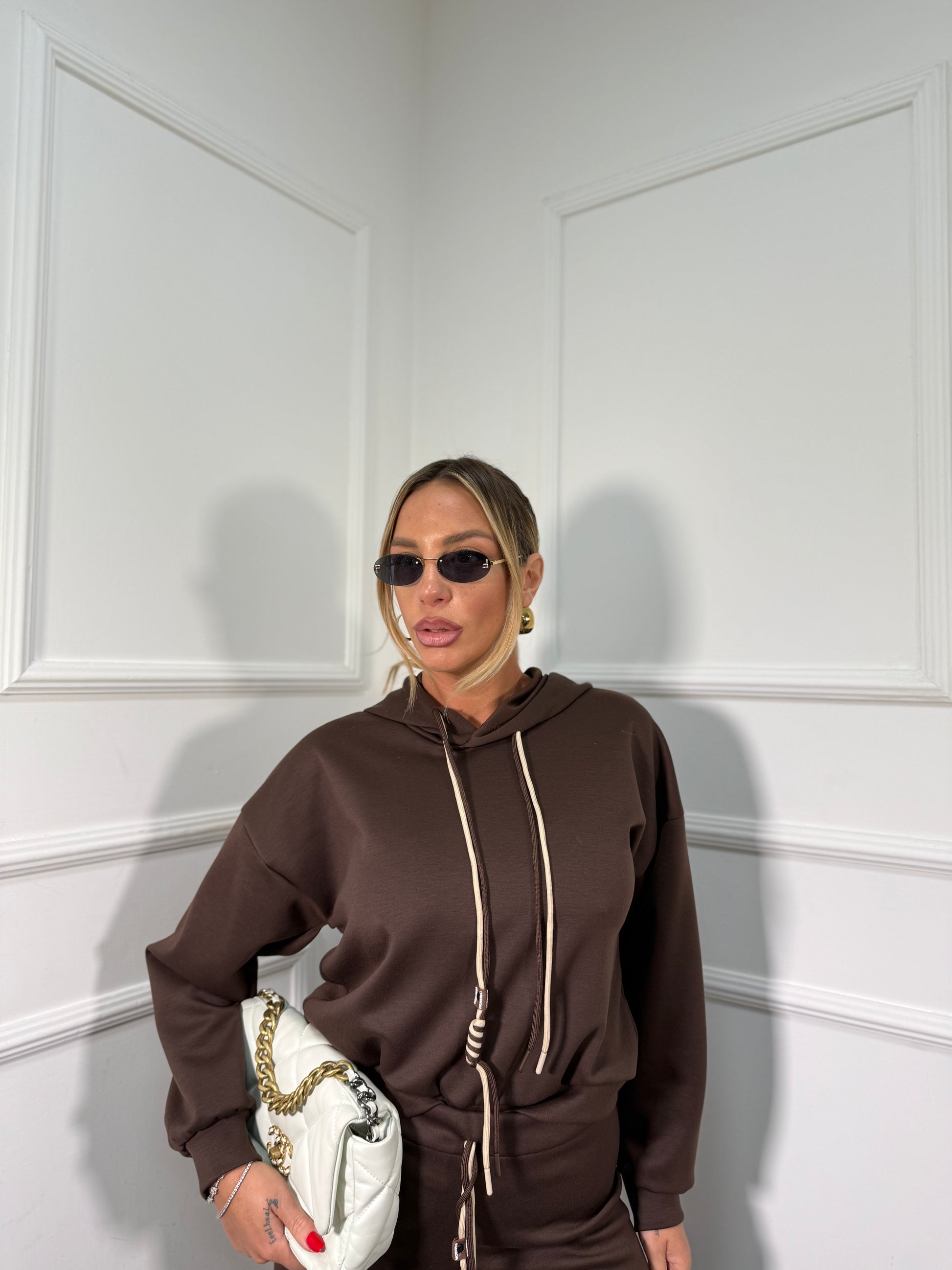 Coordinato in tuta con cappuccio e laccetti bicolour
