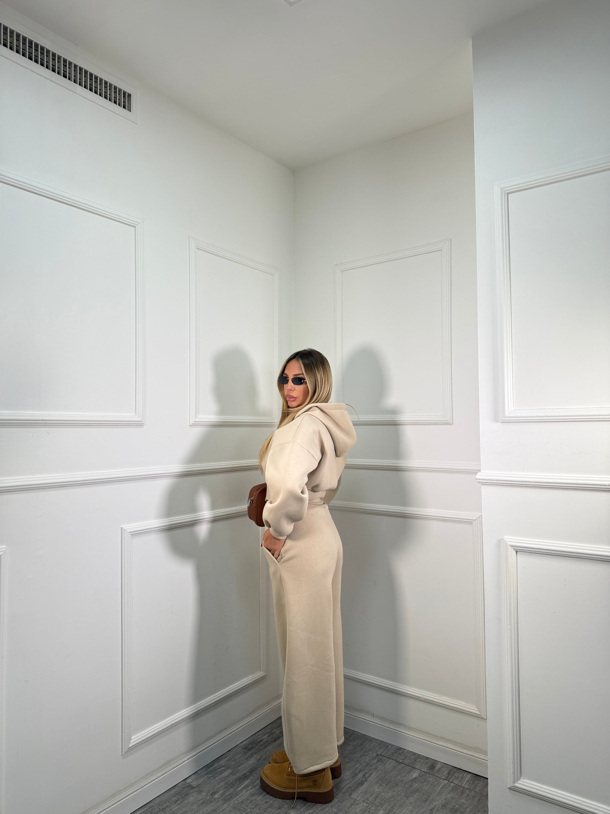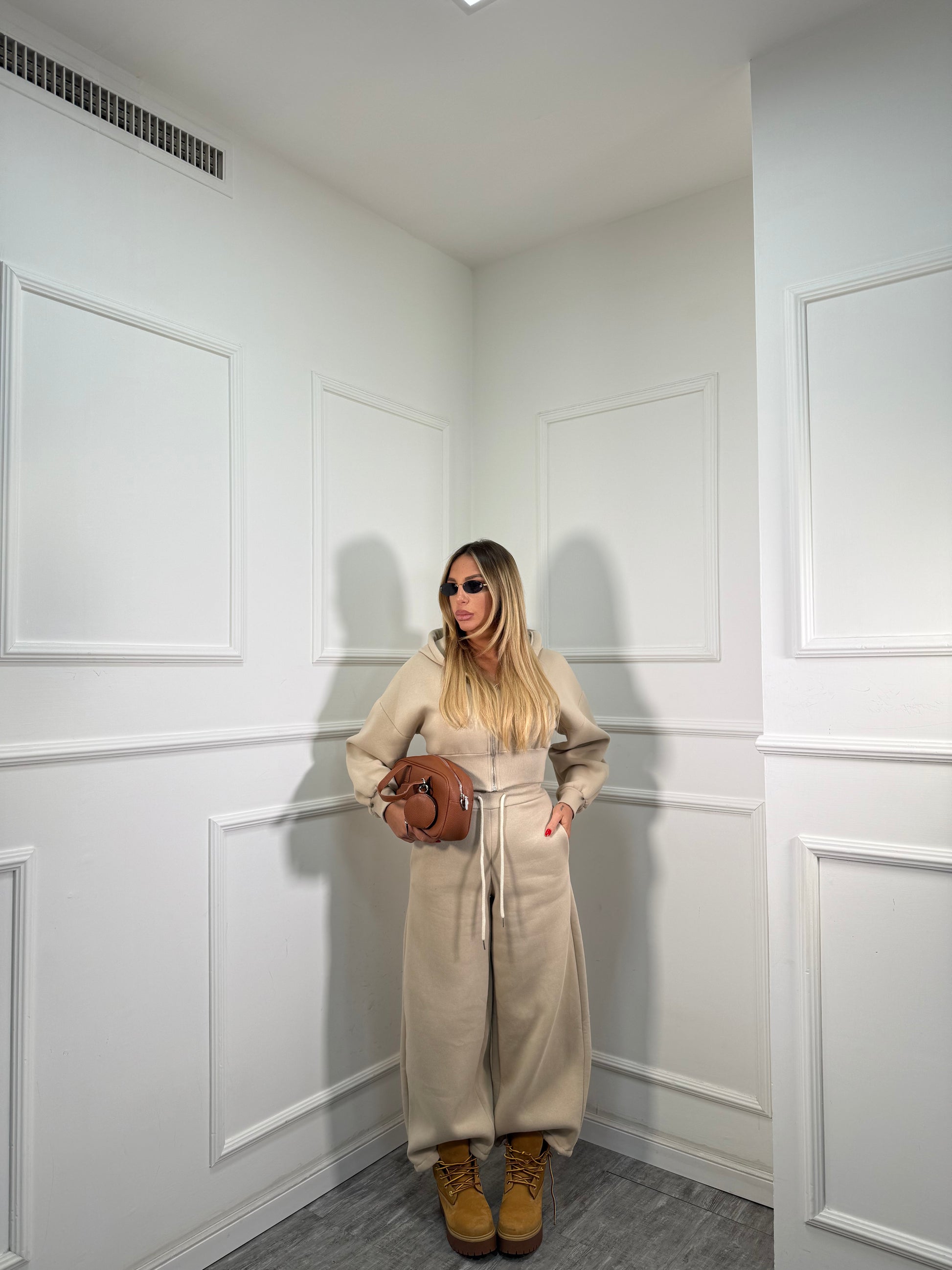Coordinato in tuta con felpa crop Jeremy beige 97065