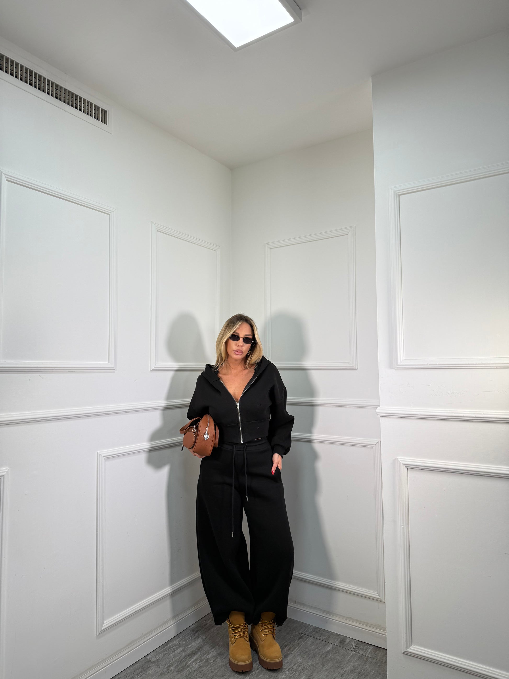 Coordinato in tuta con felpa crop Jeremy nero 97065