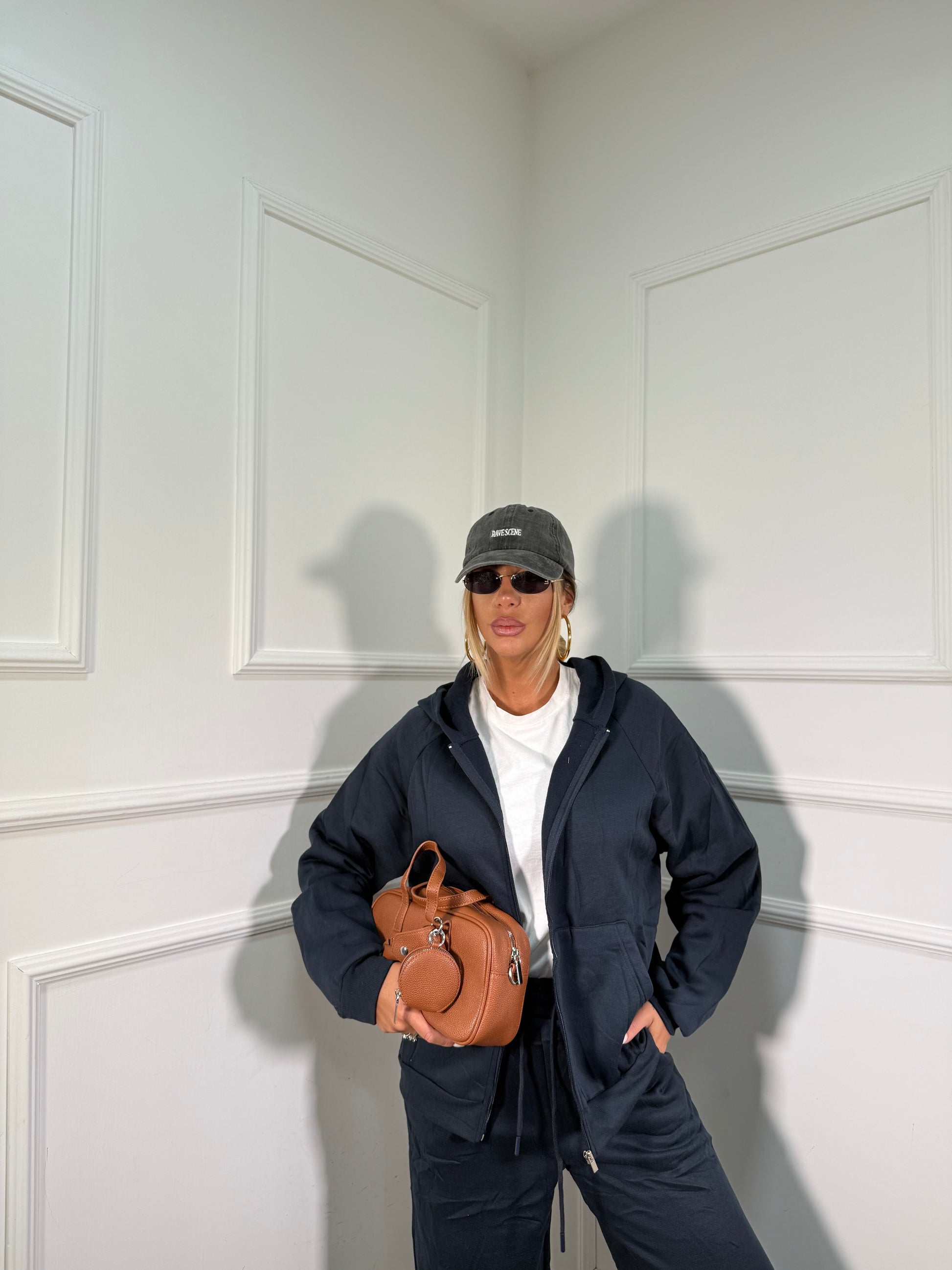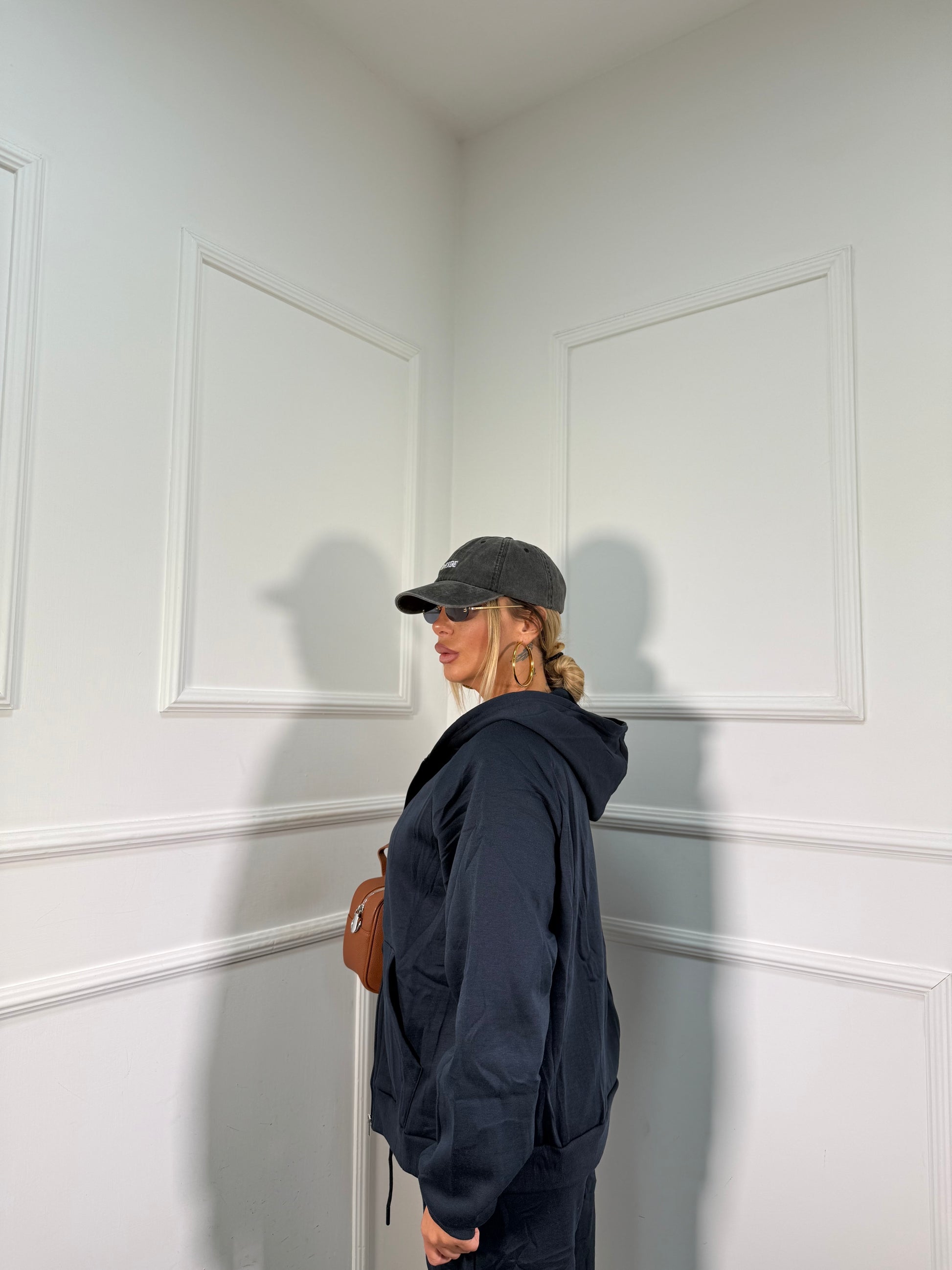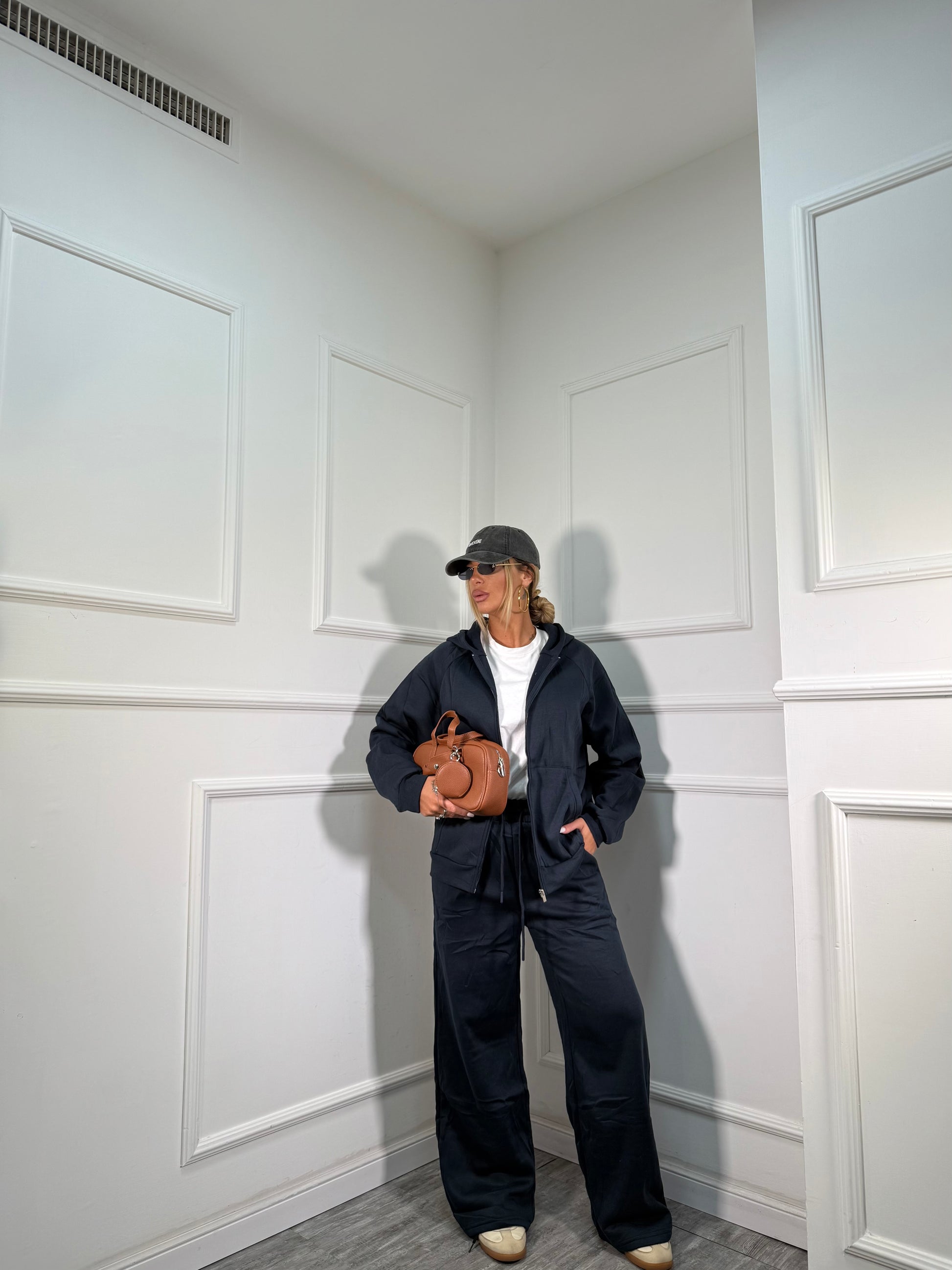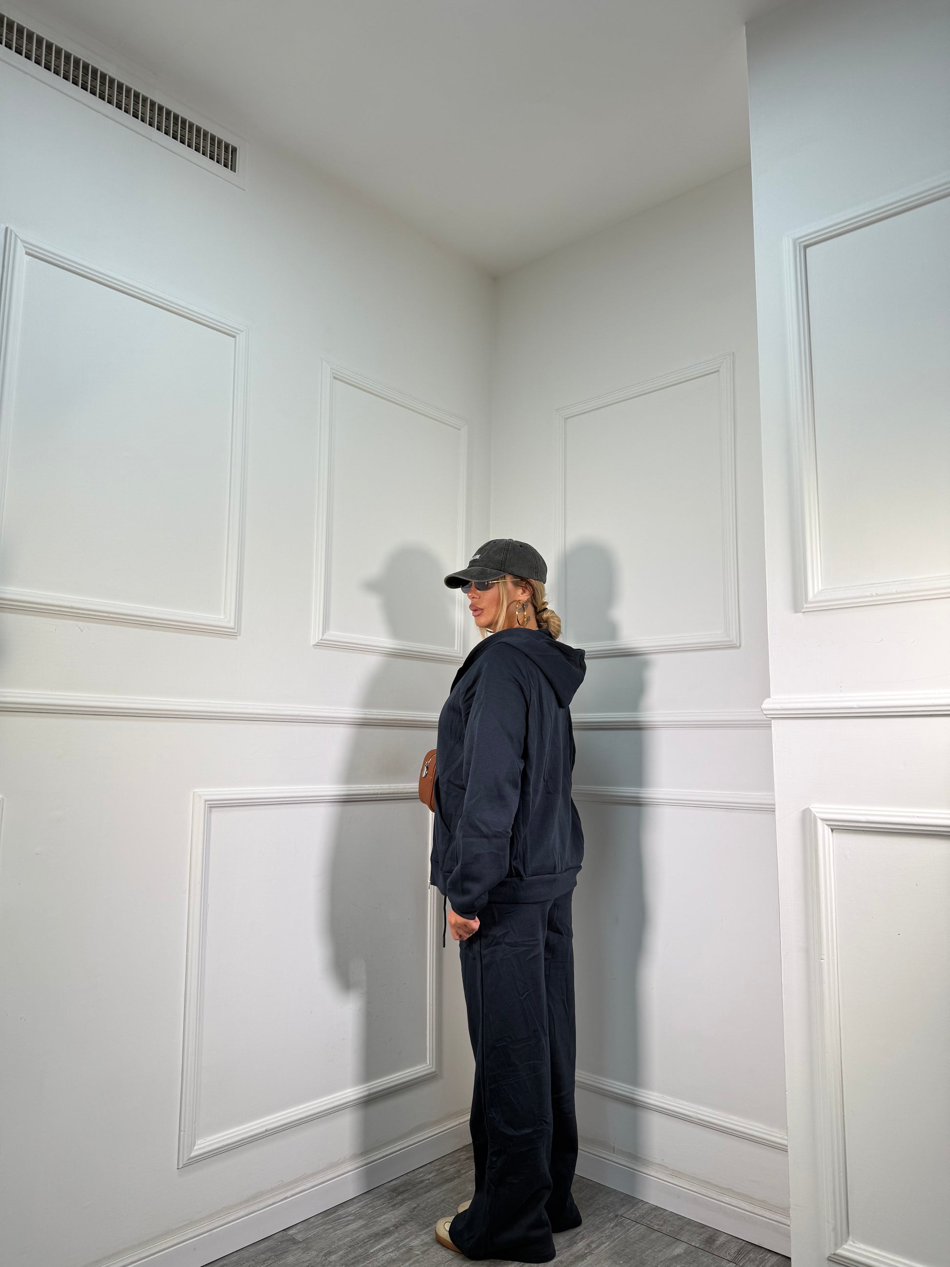Coordinato in tuta in pile, composto da felpa con zip e cappuccio con tasche laterali