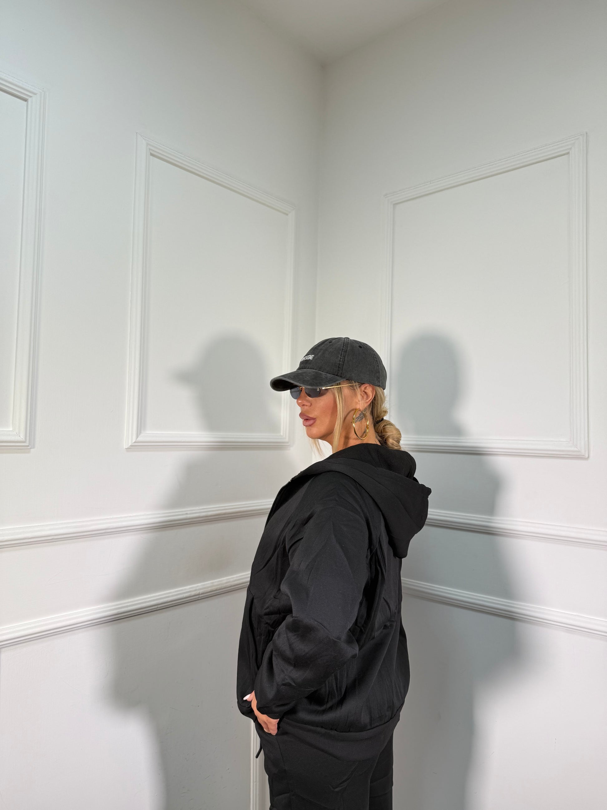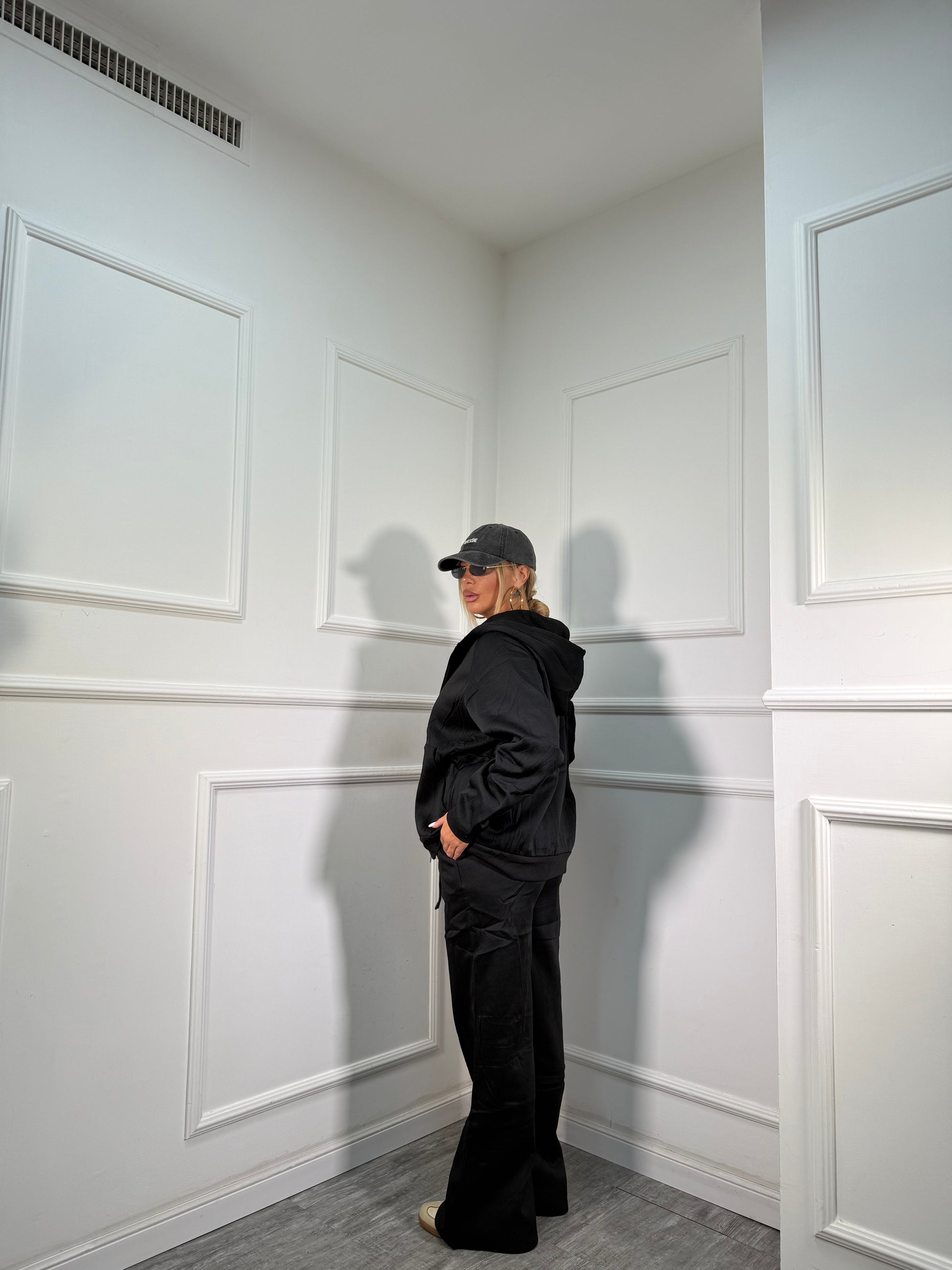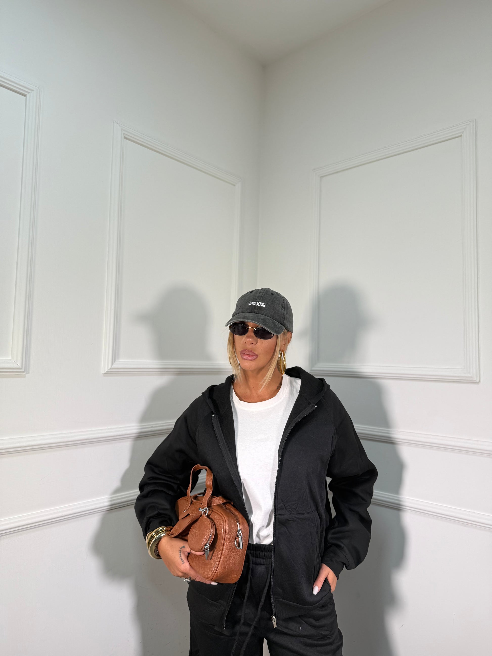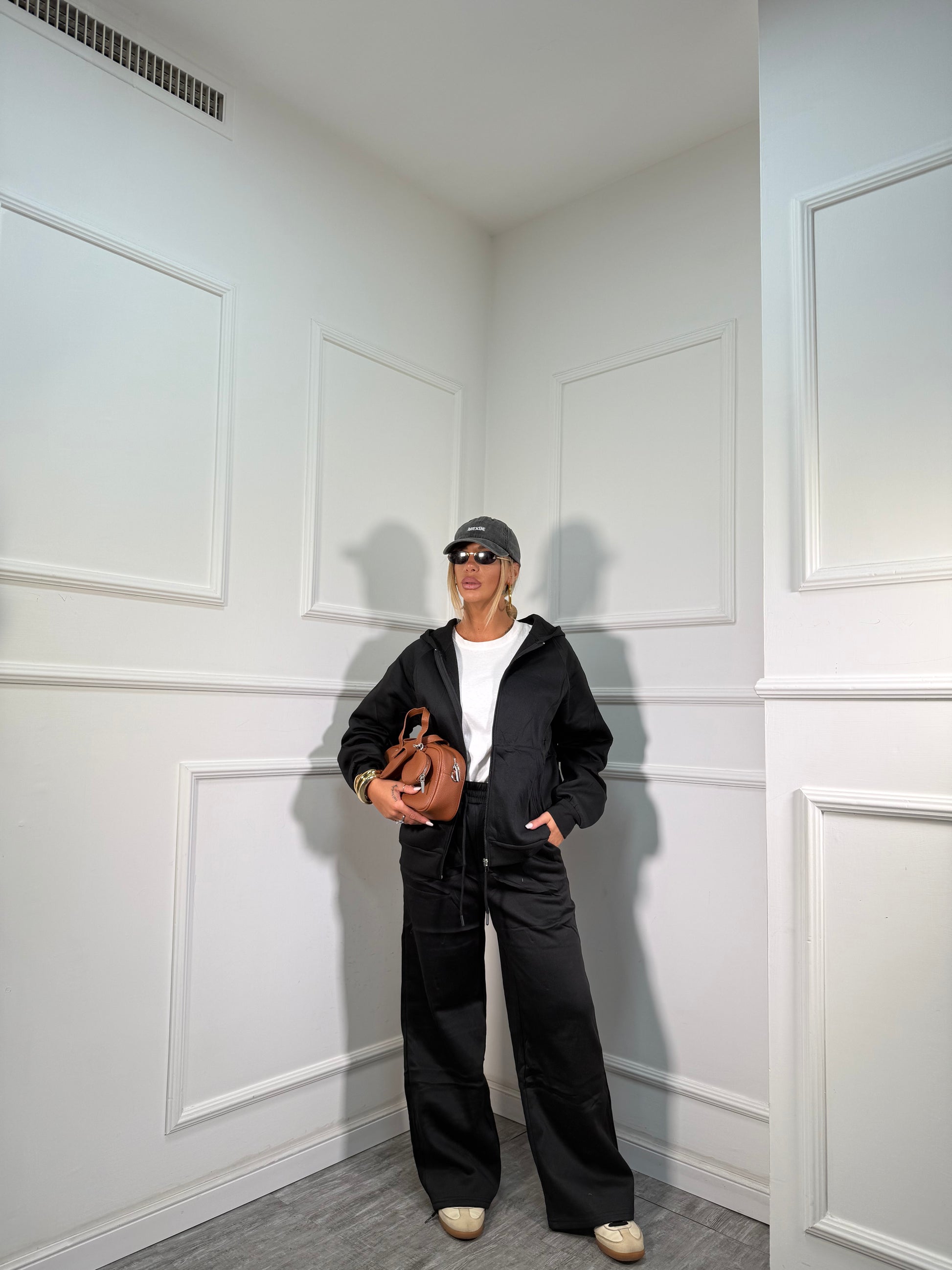 Coordinato in tuta in pile, composto da felpa con zip e cappuccio con tasche laterali