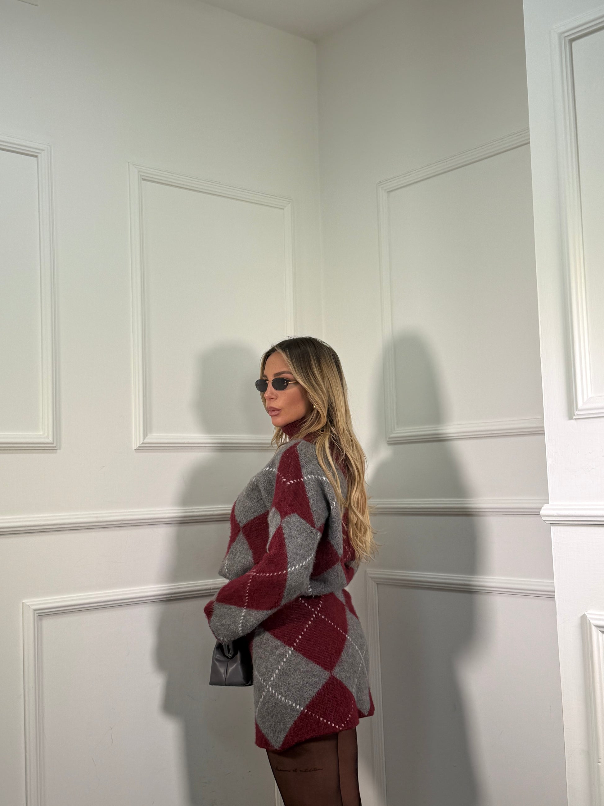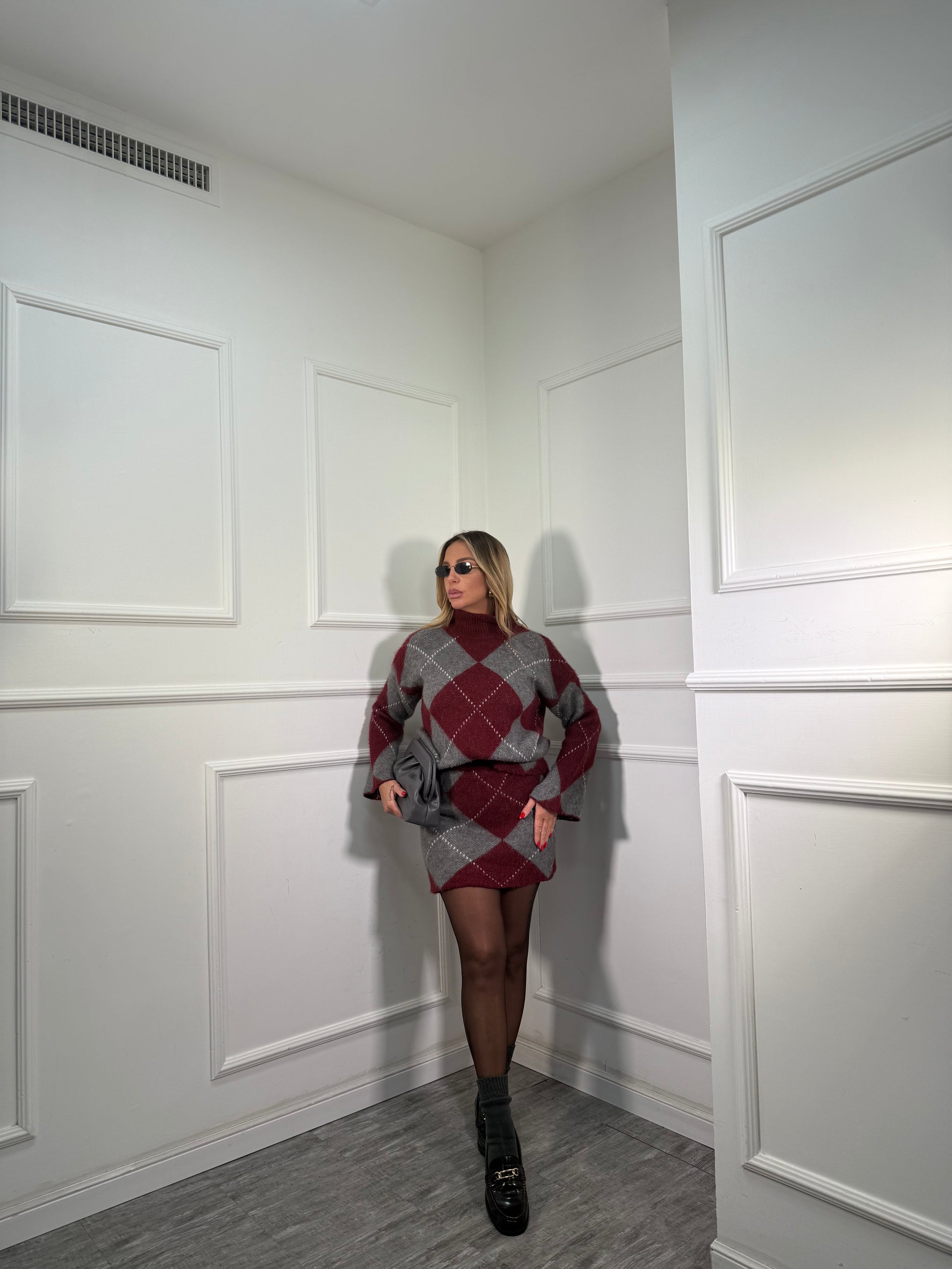 Coordinato rombi in lana cotta Joy bordeaux/grigio