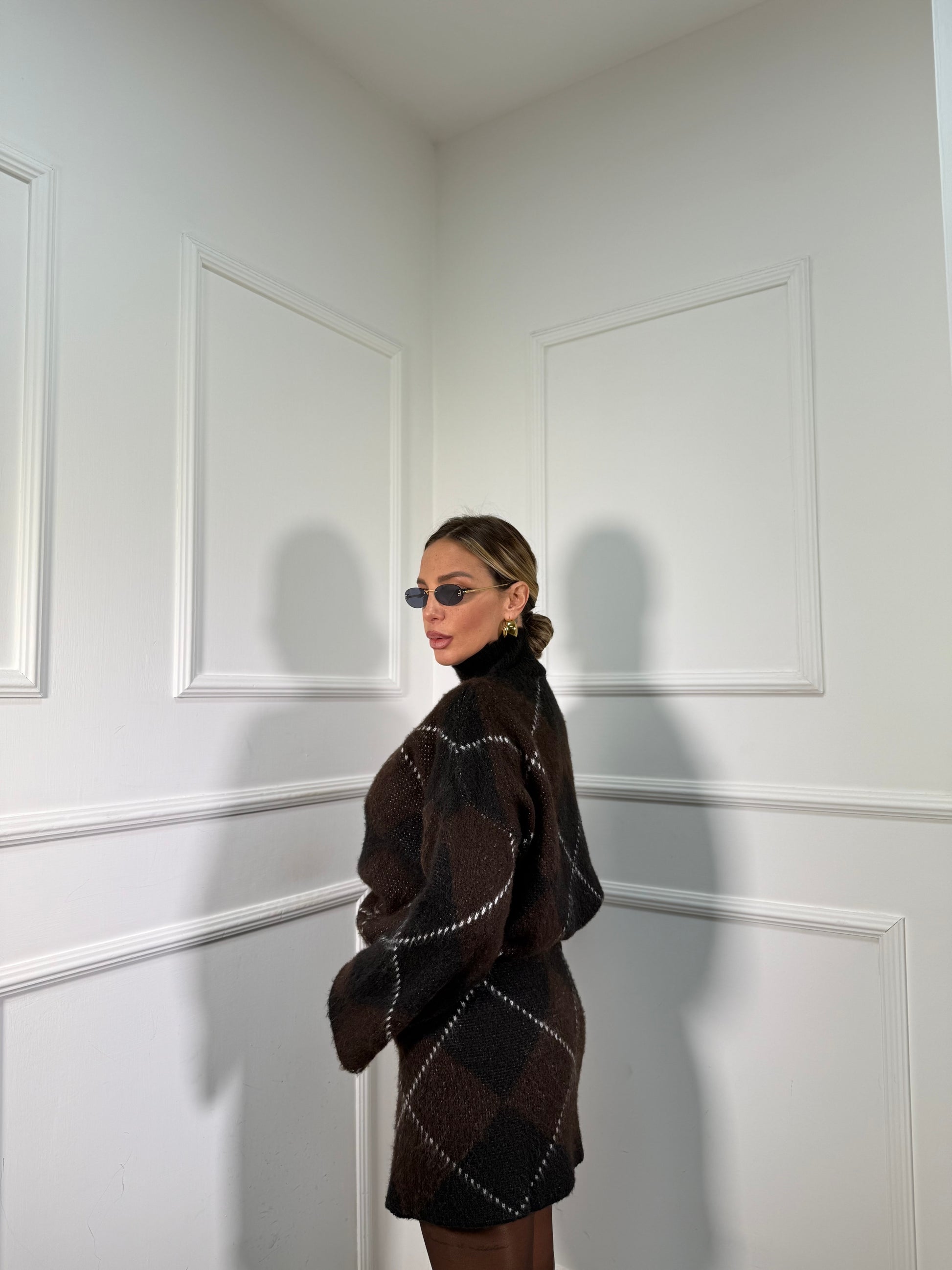 Coordinato rombi in lana cotta Joy cioccolato/nero