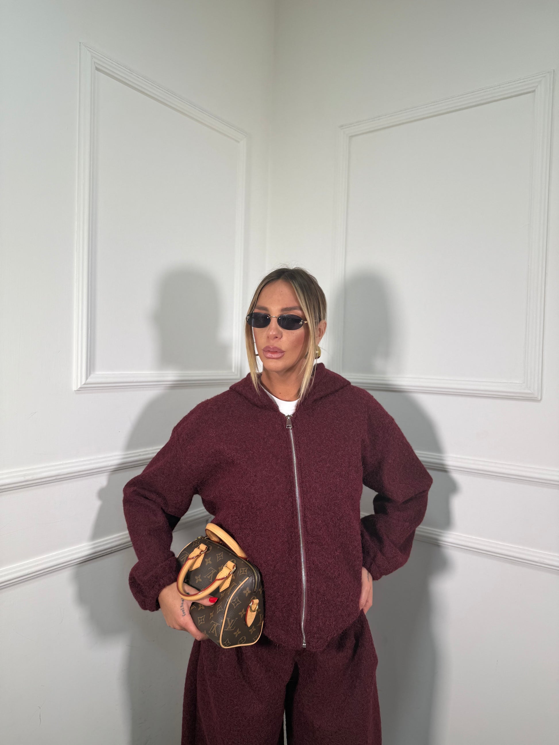 Coordinato tuta lana cotta Bear bordeaux 50815