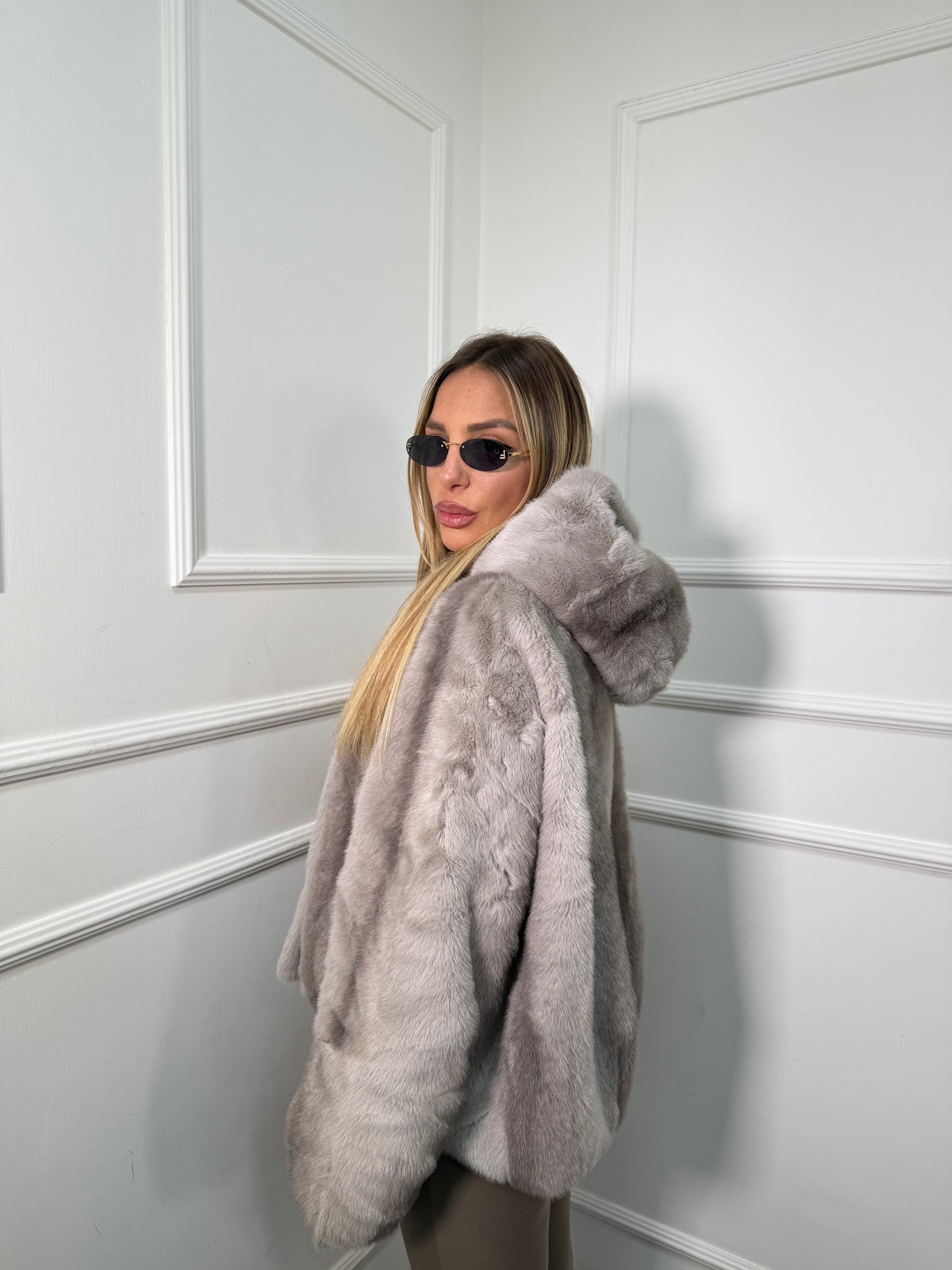 Ecofur con cappuccio e swarovsky Arya ghiaccio 5504
