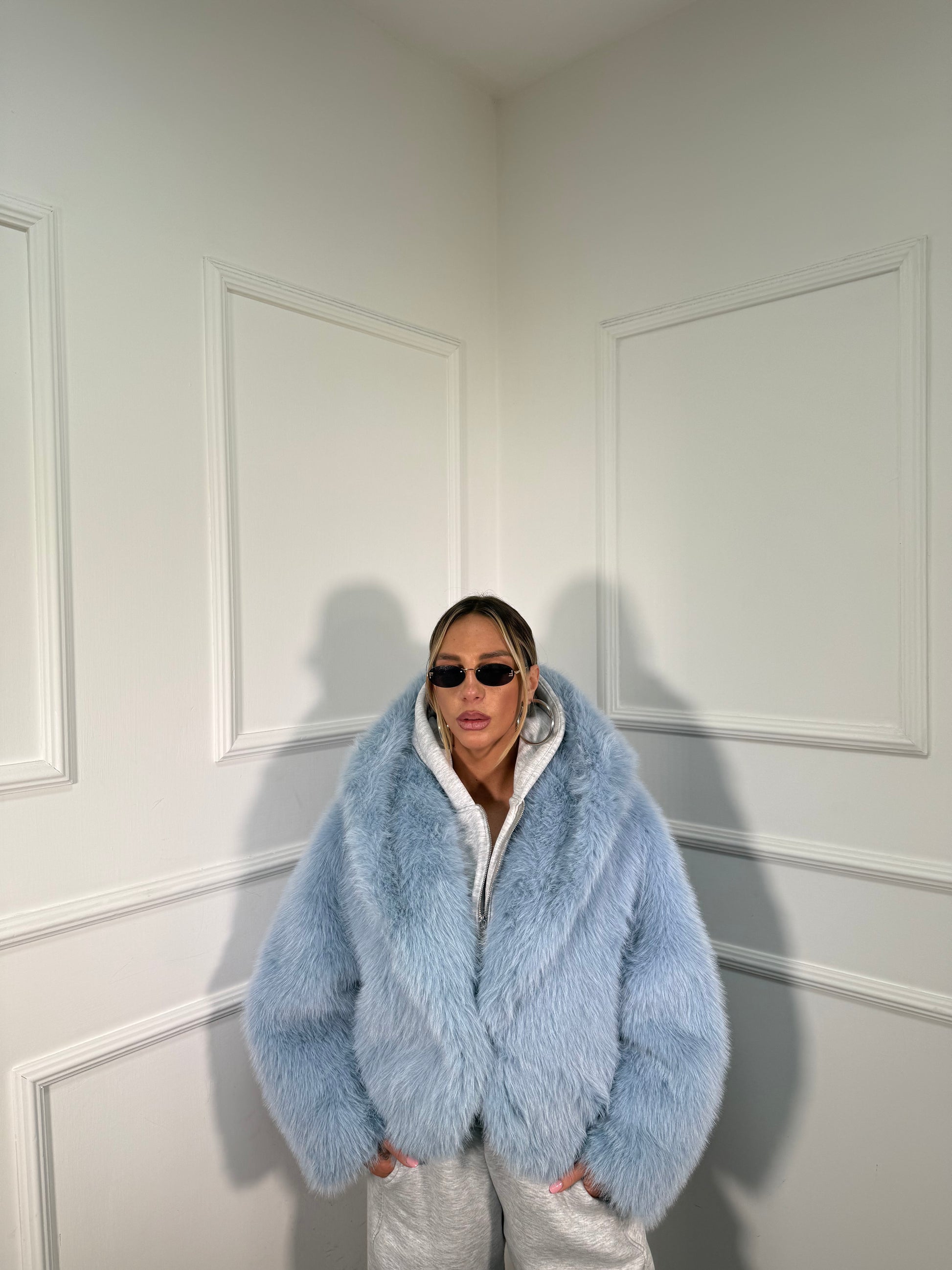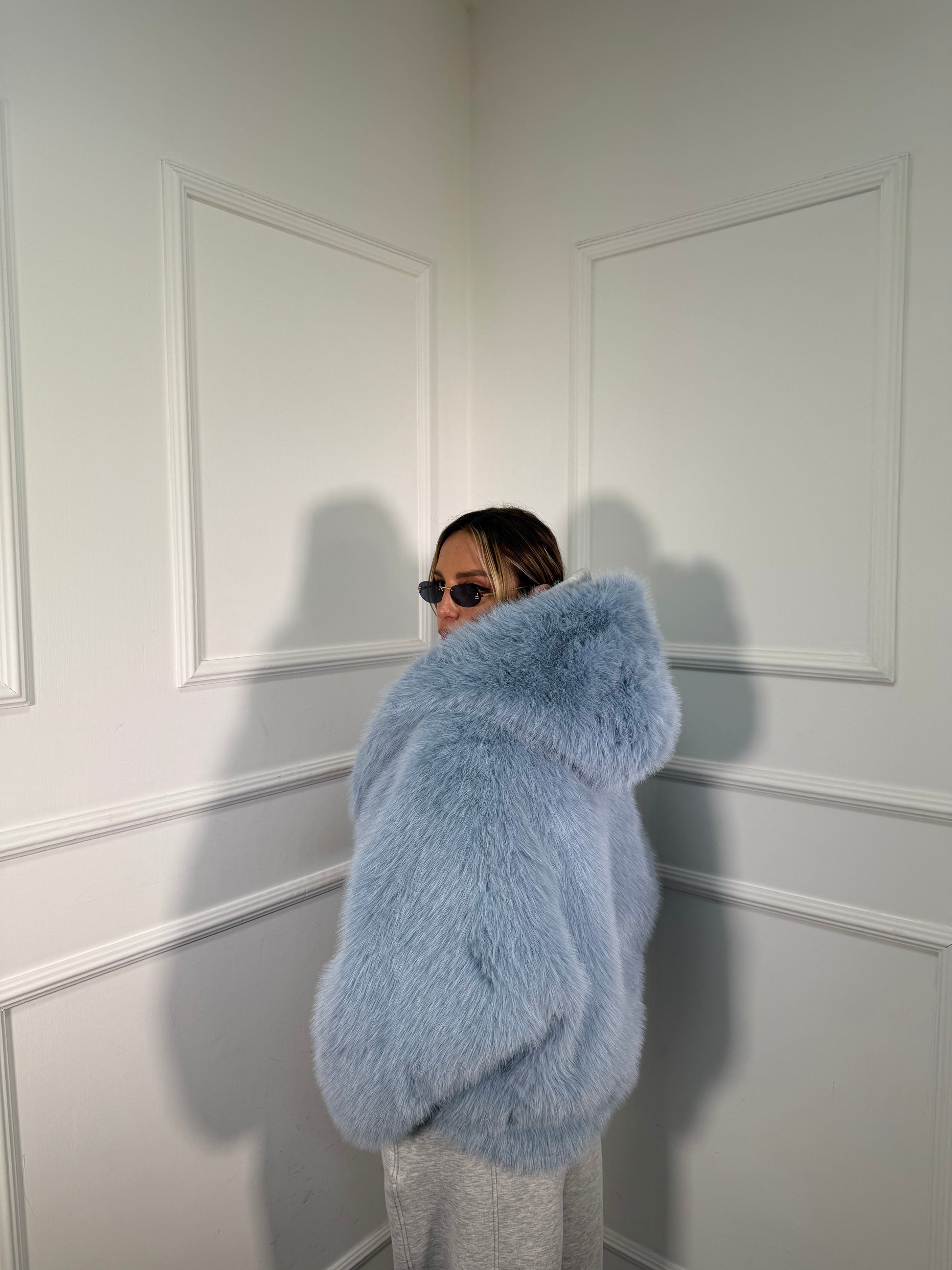 EcoPelliccia modello over con pelo morbido ,gancio da chiusura tasche e cappuccio