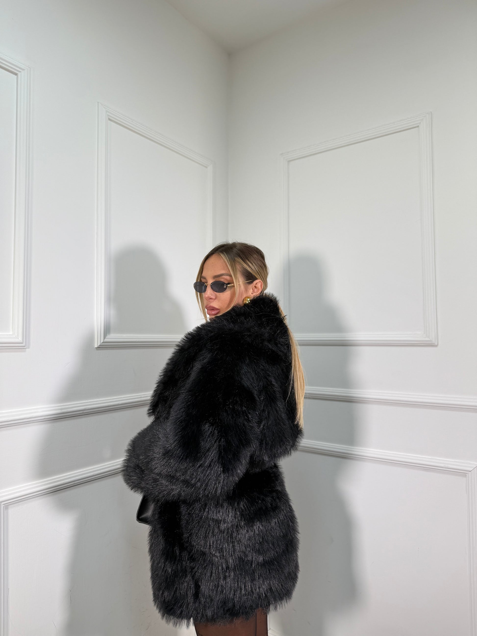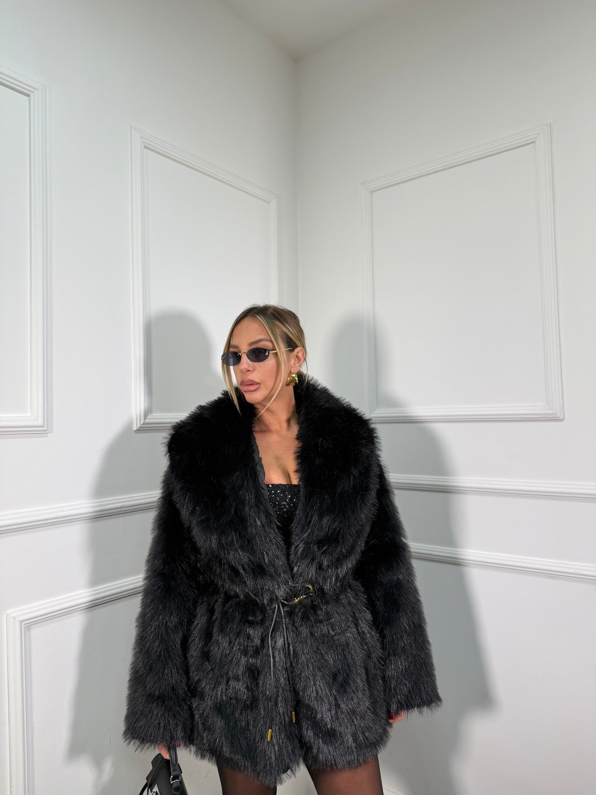 Ecofur midi con cintura Artic nera 5735
