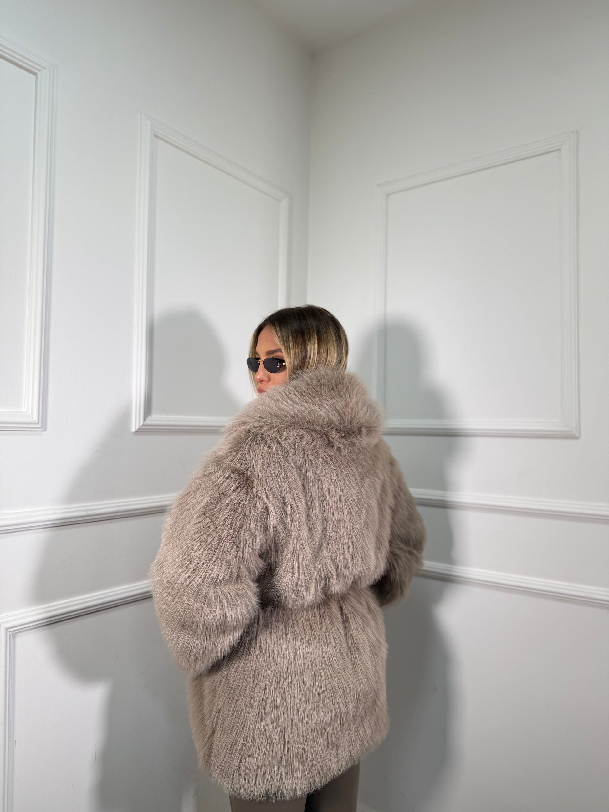 Ecofur midi con cintura Artic taupe 5735