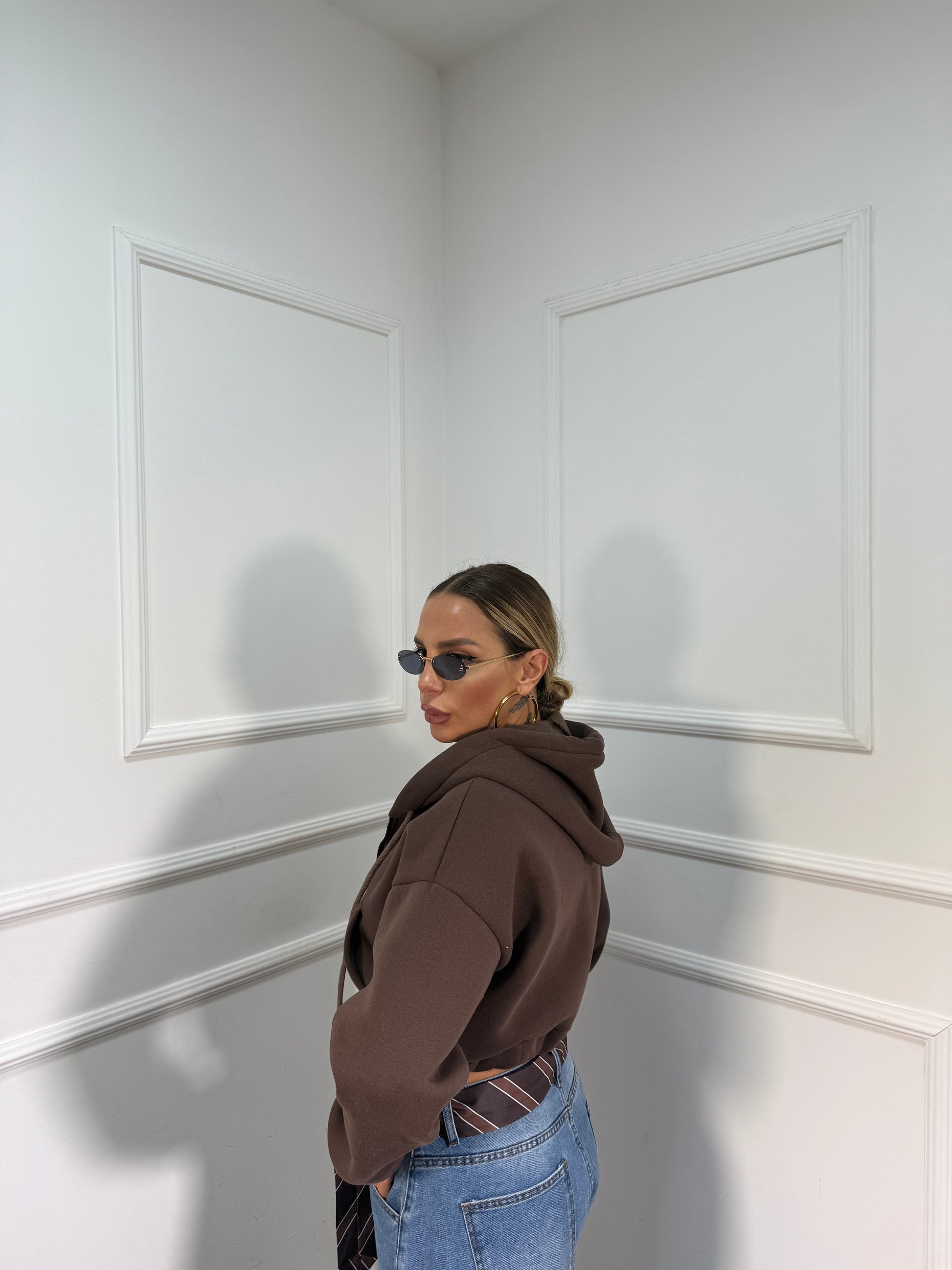Felpa crop in pile con cappuccio Essential marrone 43763
