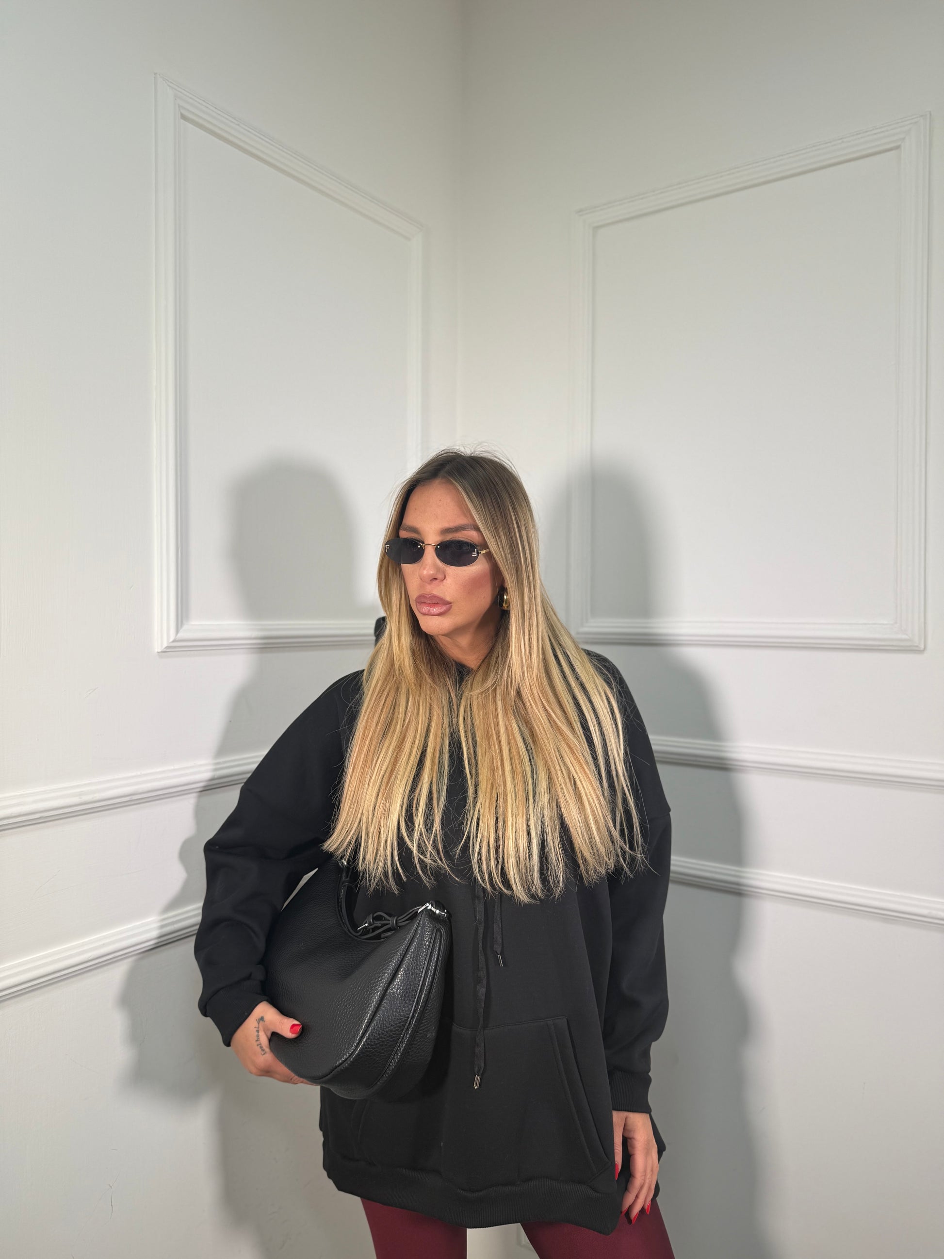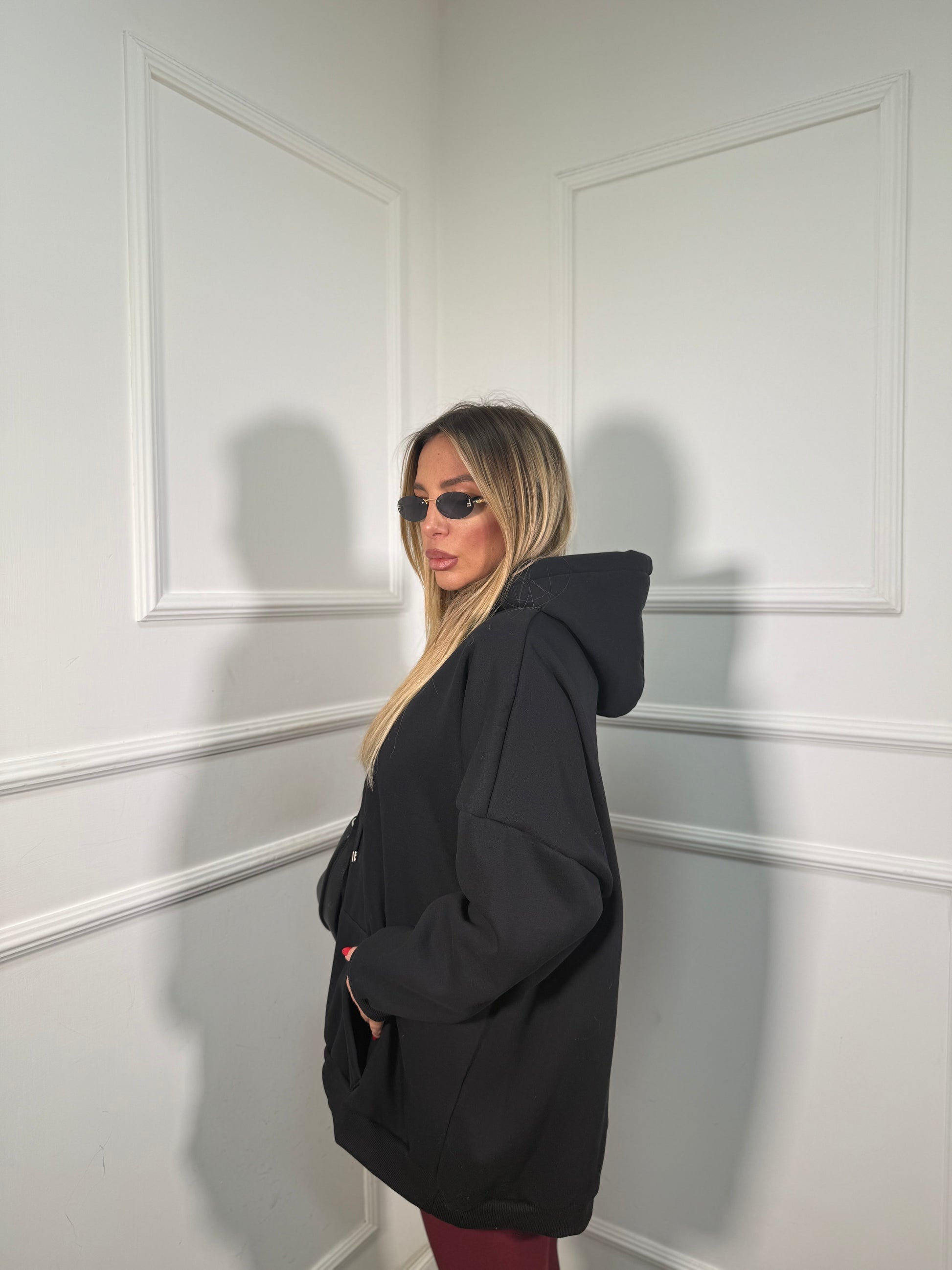 Felpa oversize con cappuccio in pile Freedom nera