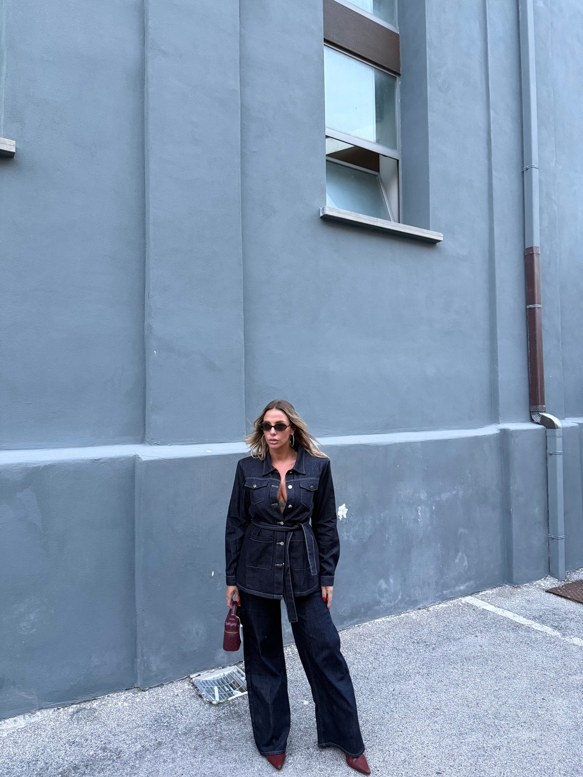 Giacca in denim con fusciacca Loving lavaggio zero mf2675