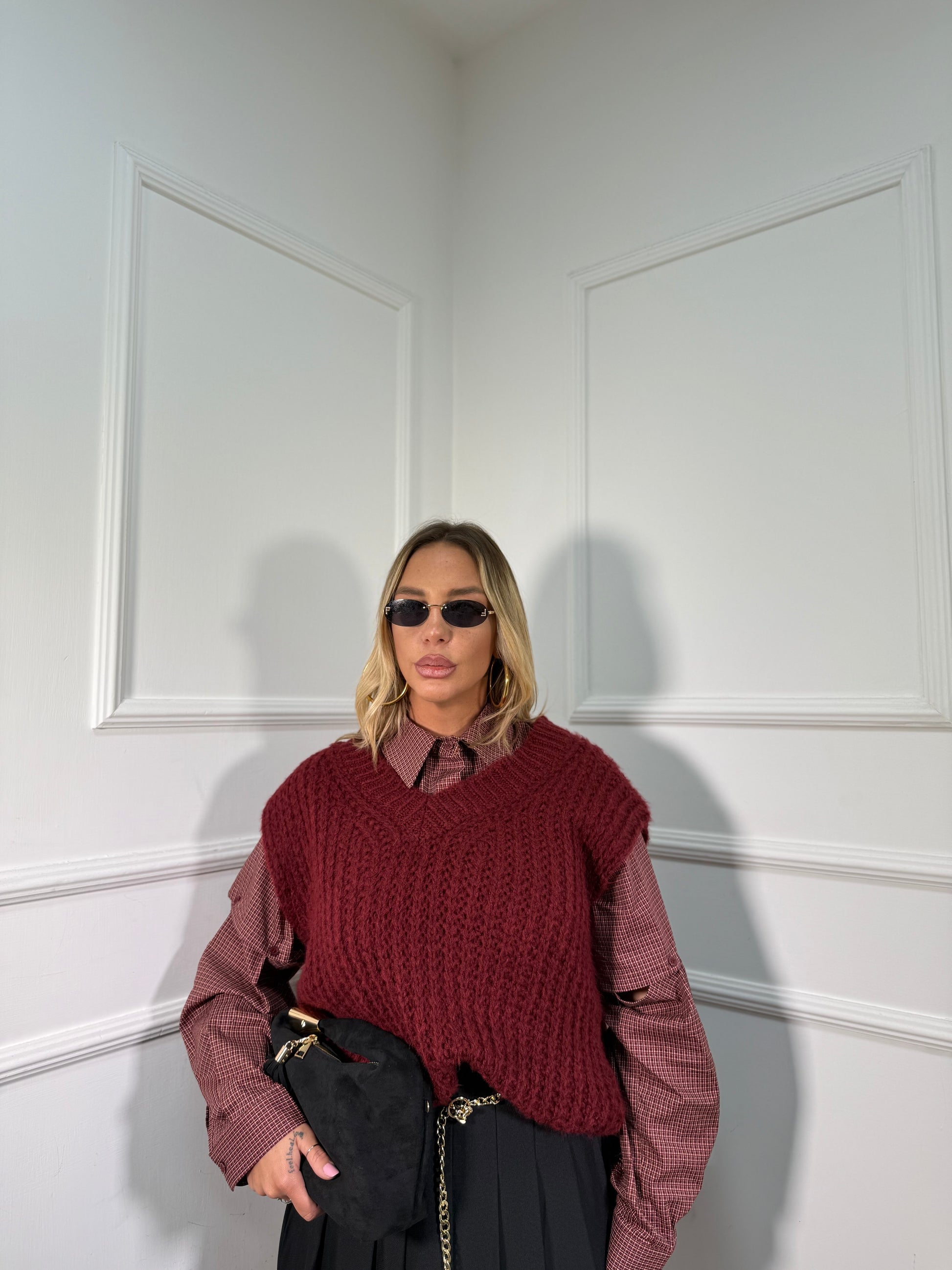 Gilet oversize scollo a V bordeaux 2020