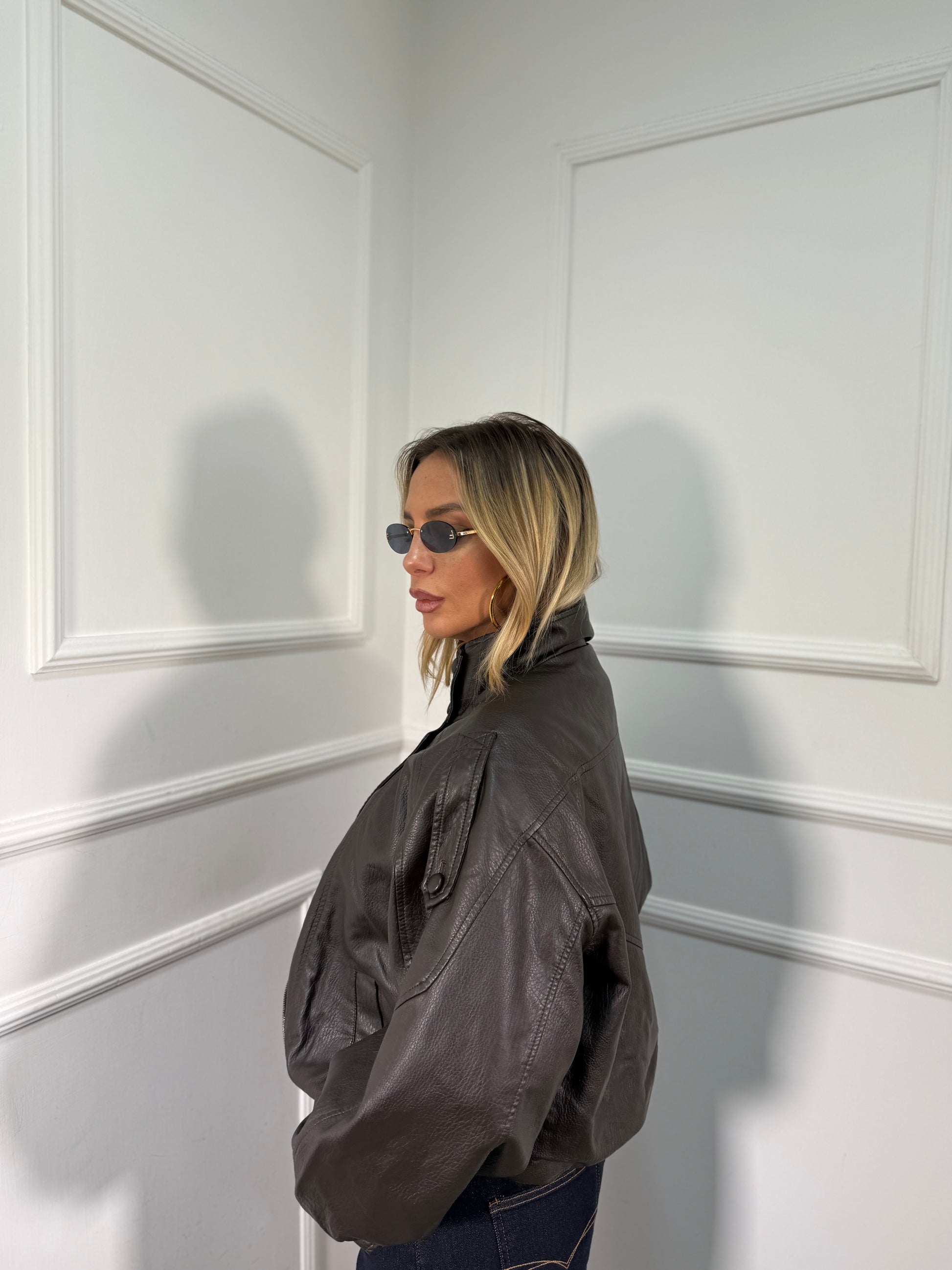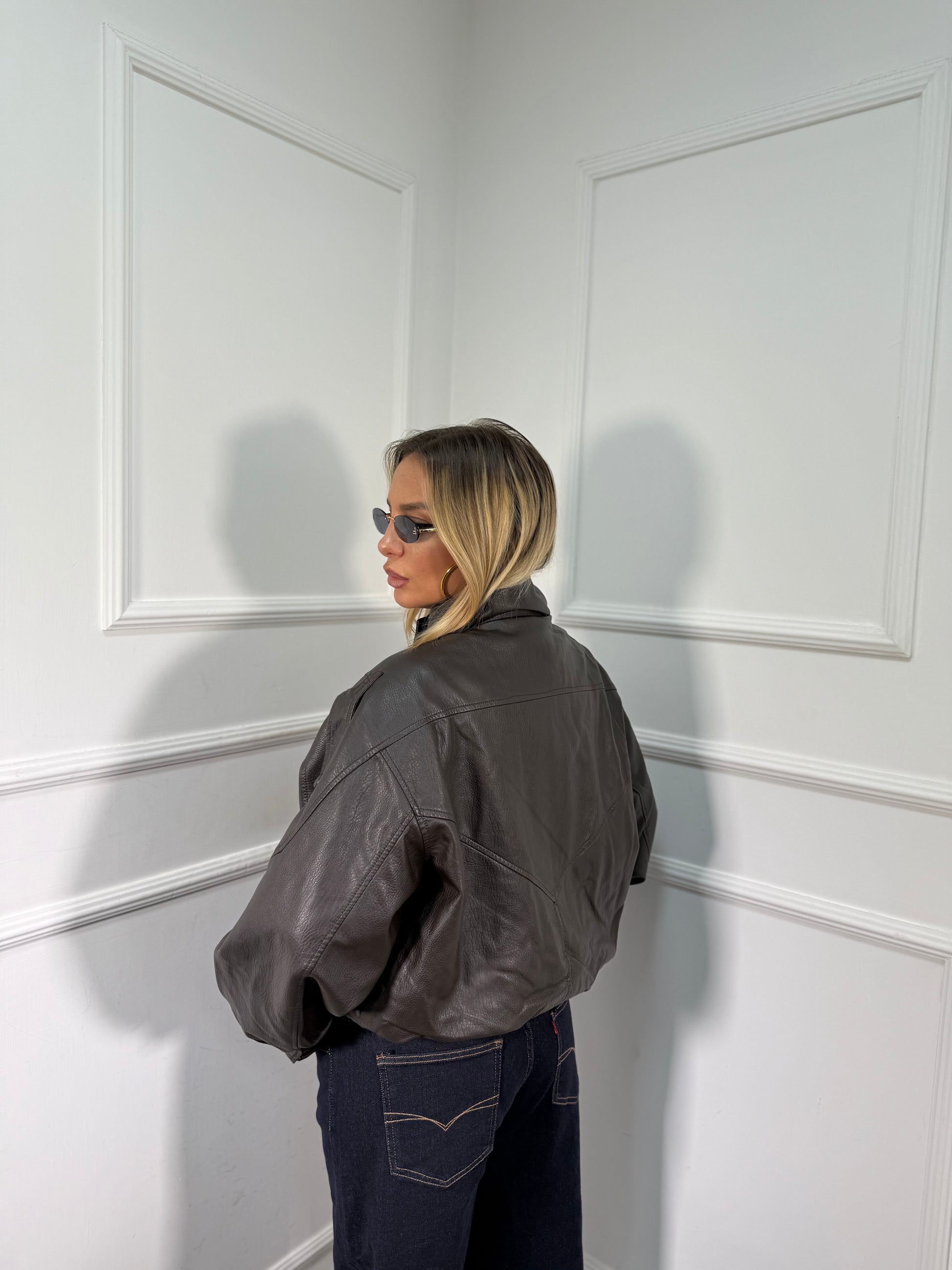 Giubbotto oversize ecopelle Carnaby testa di moro har006