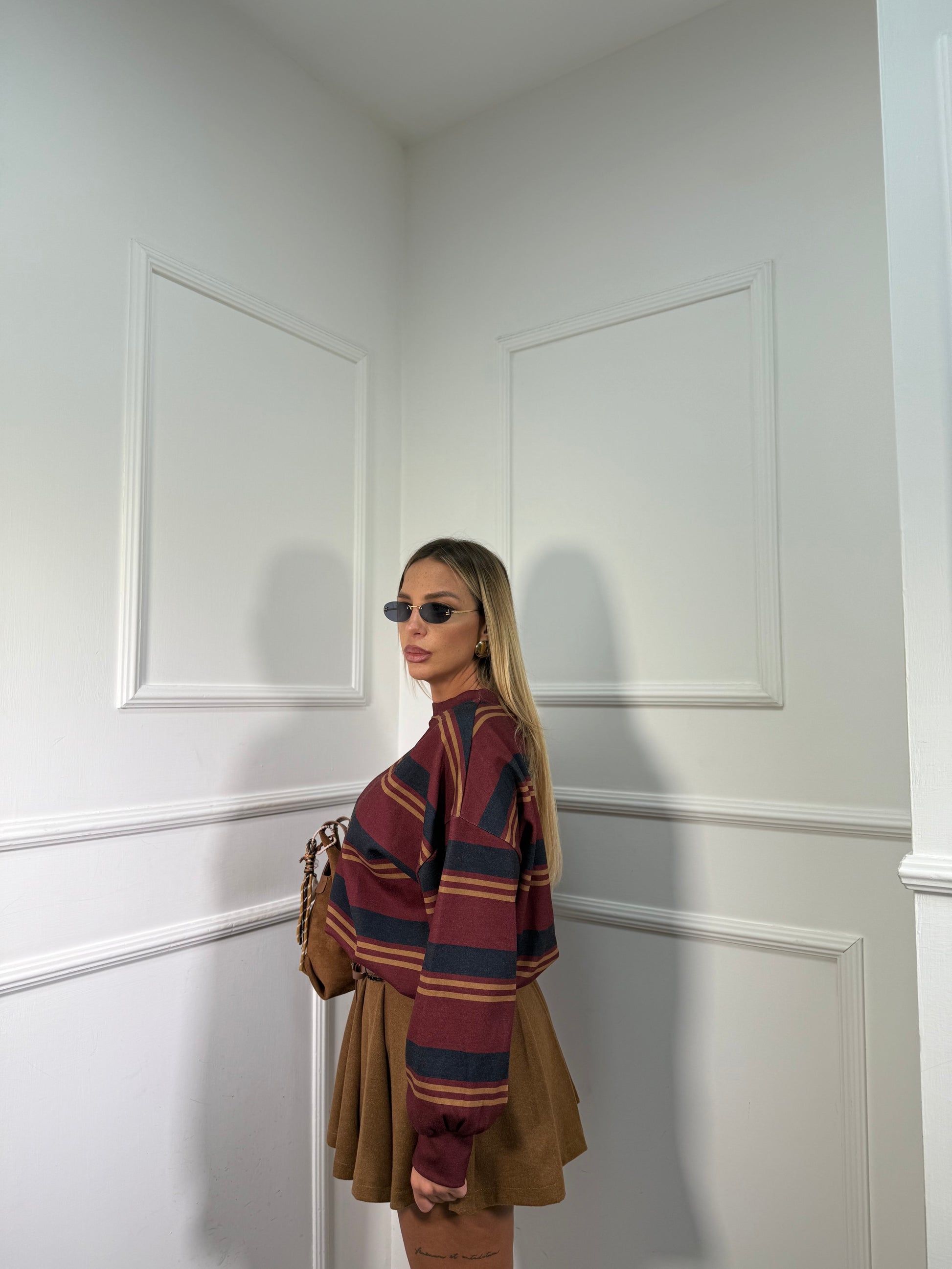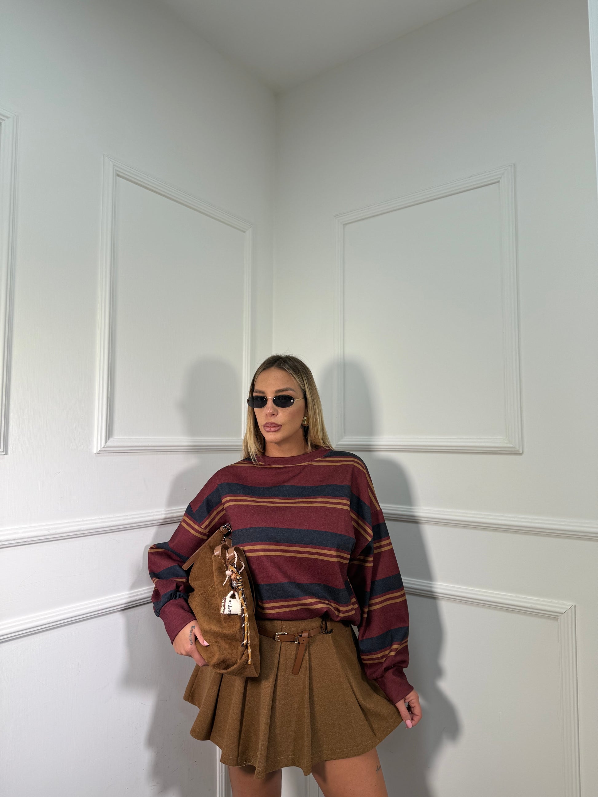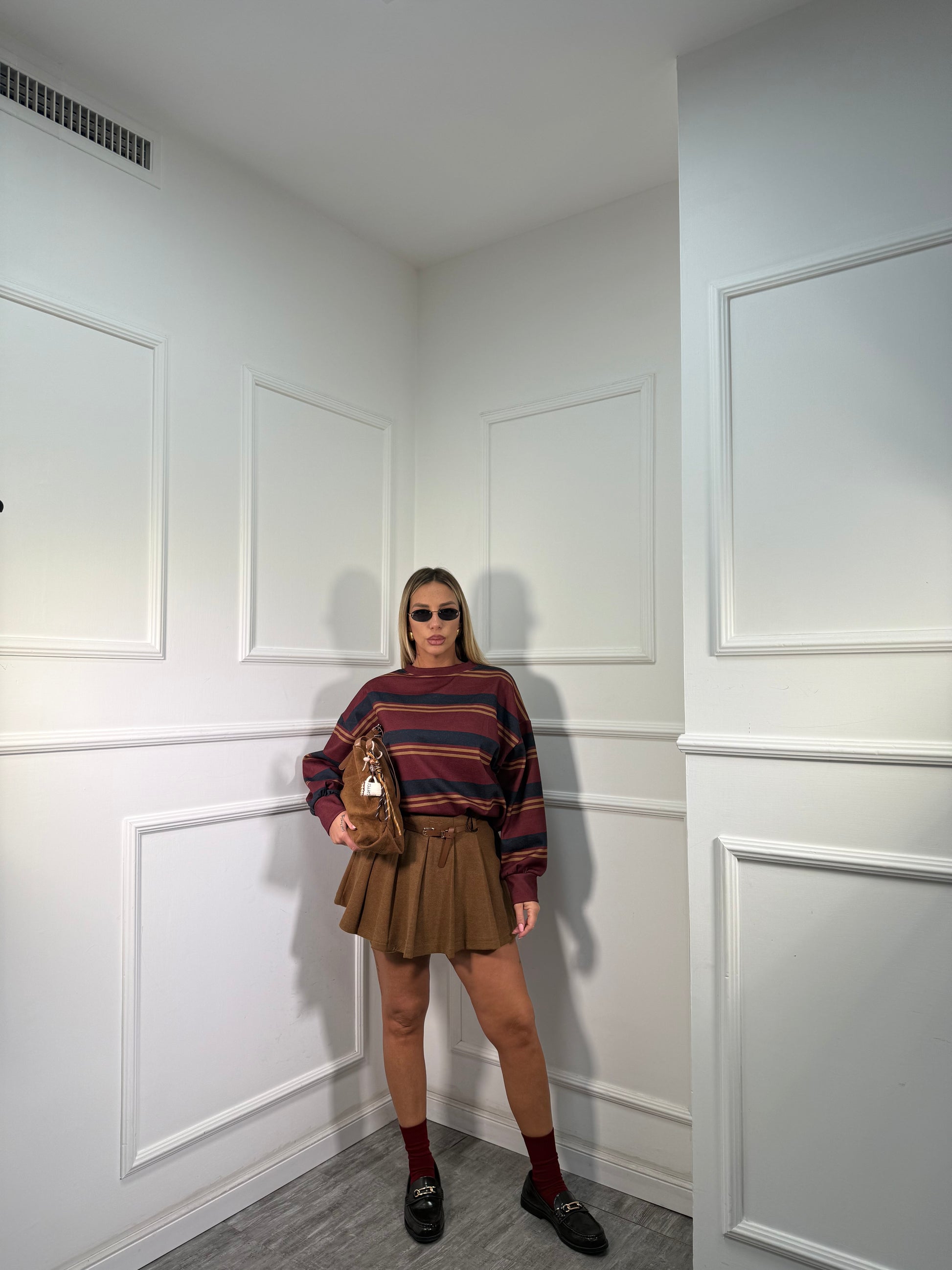 Gonna a pieghe in lana cotta con cinturino in ecopelle
