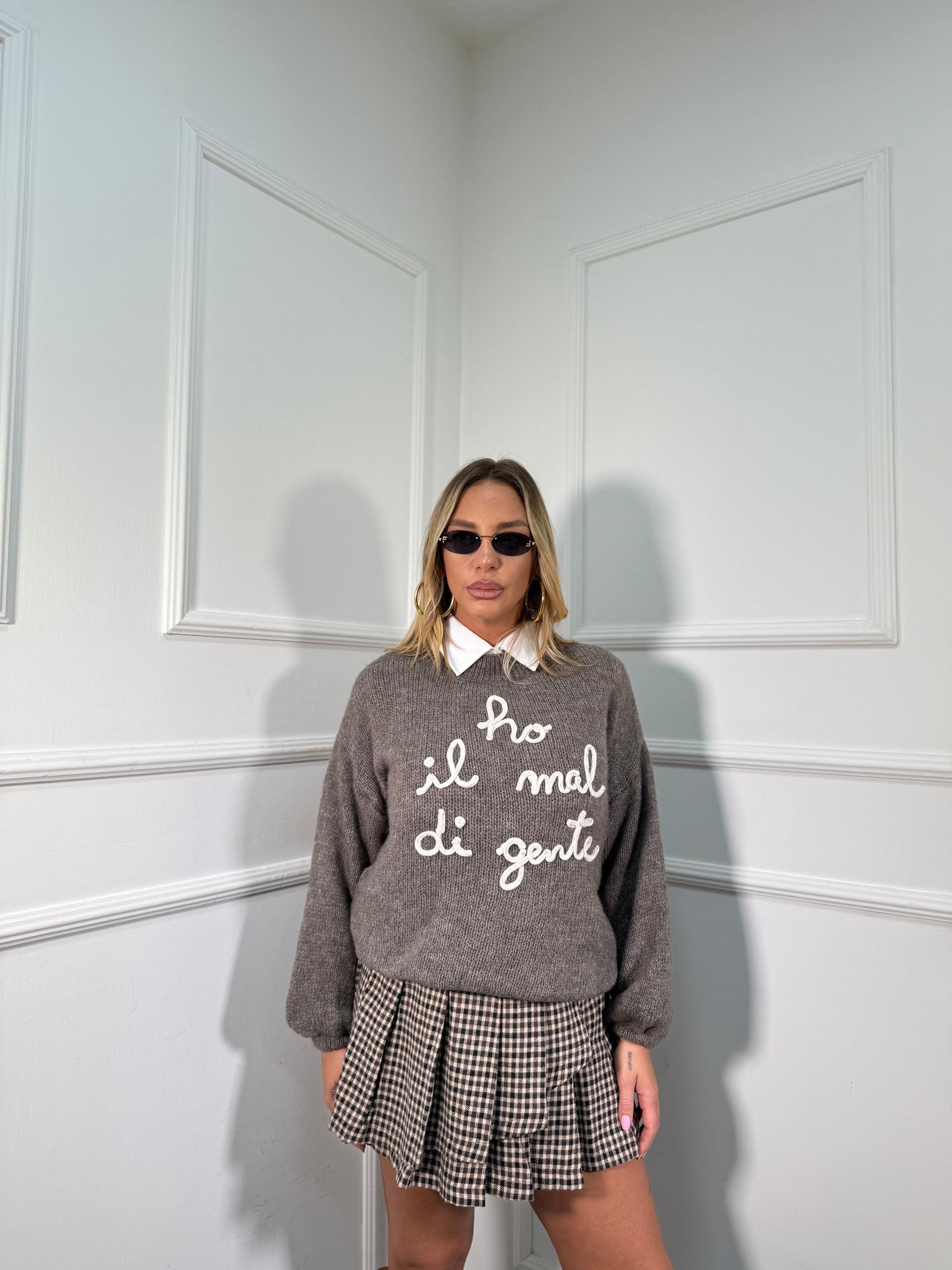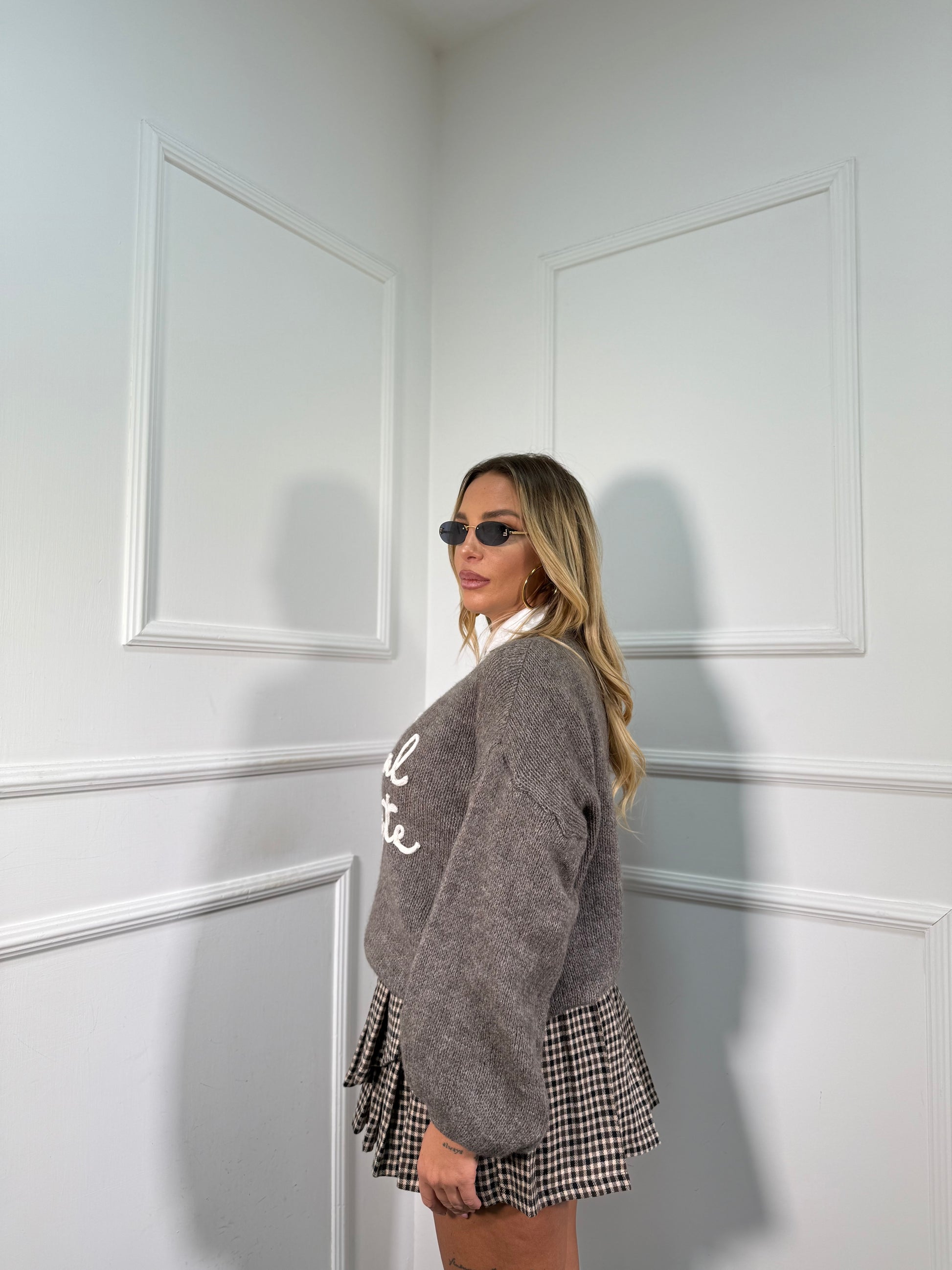 Gonna pieghe asimmetrica a quadretti marrone 25755